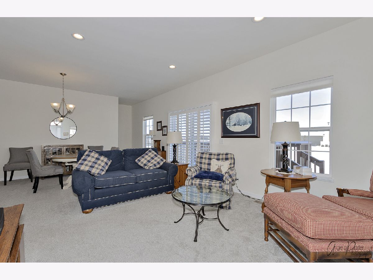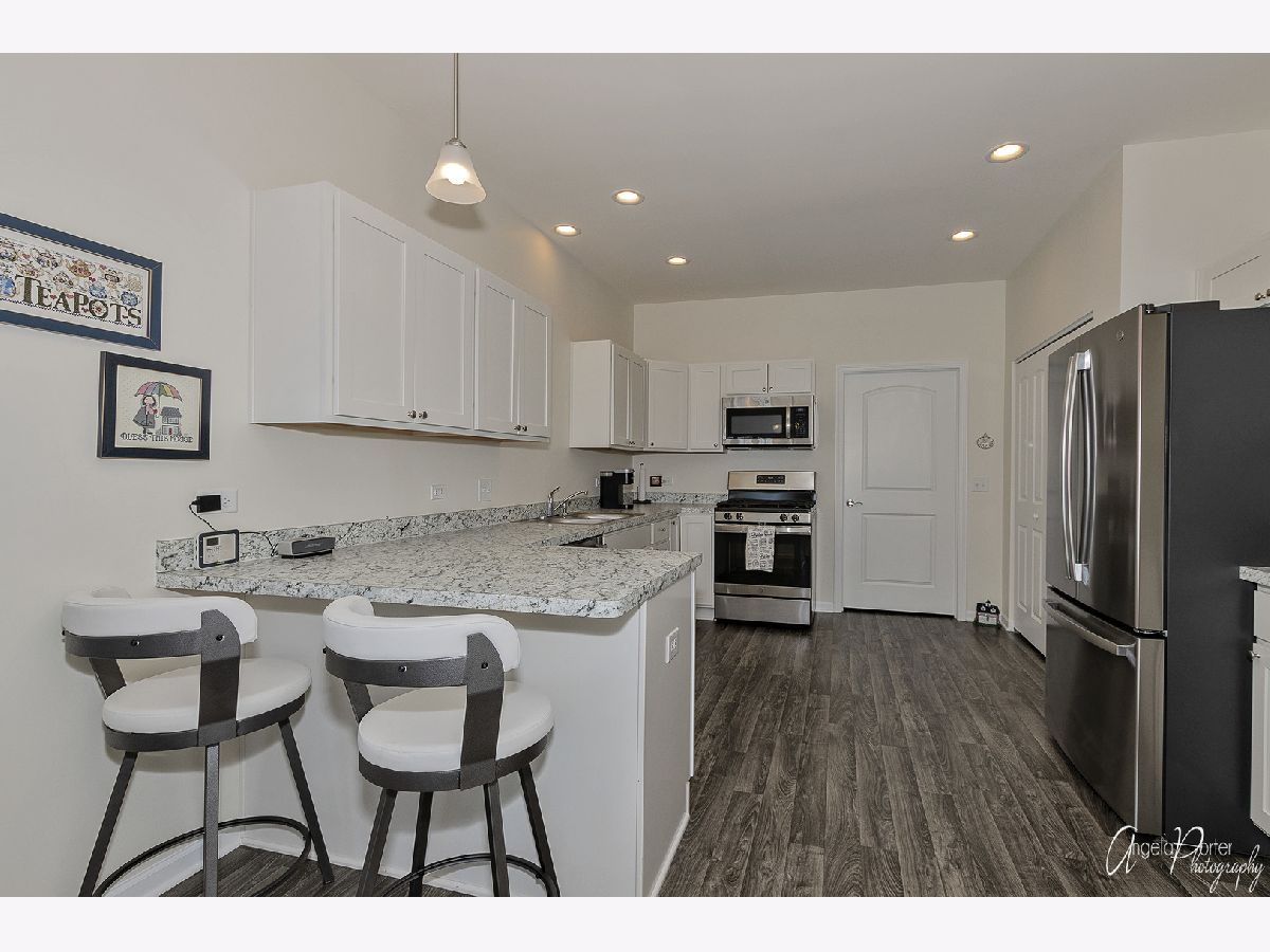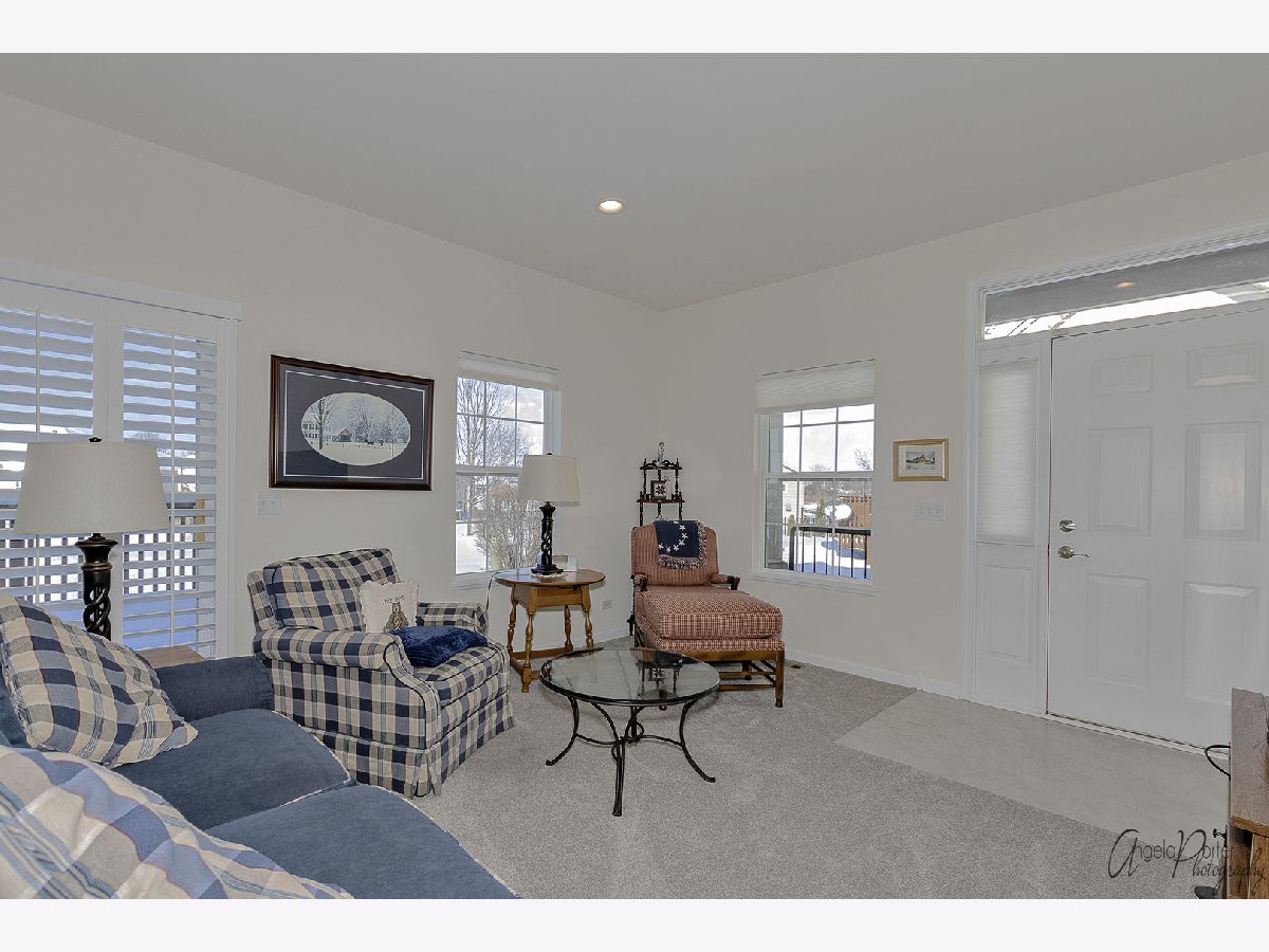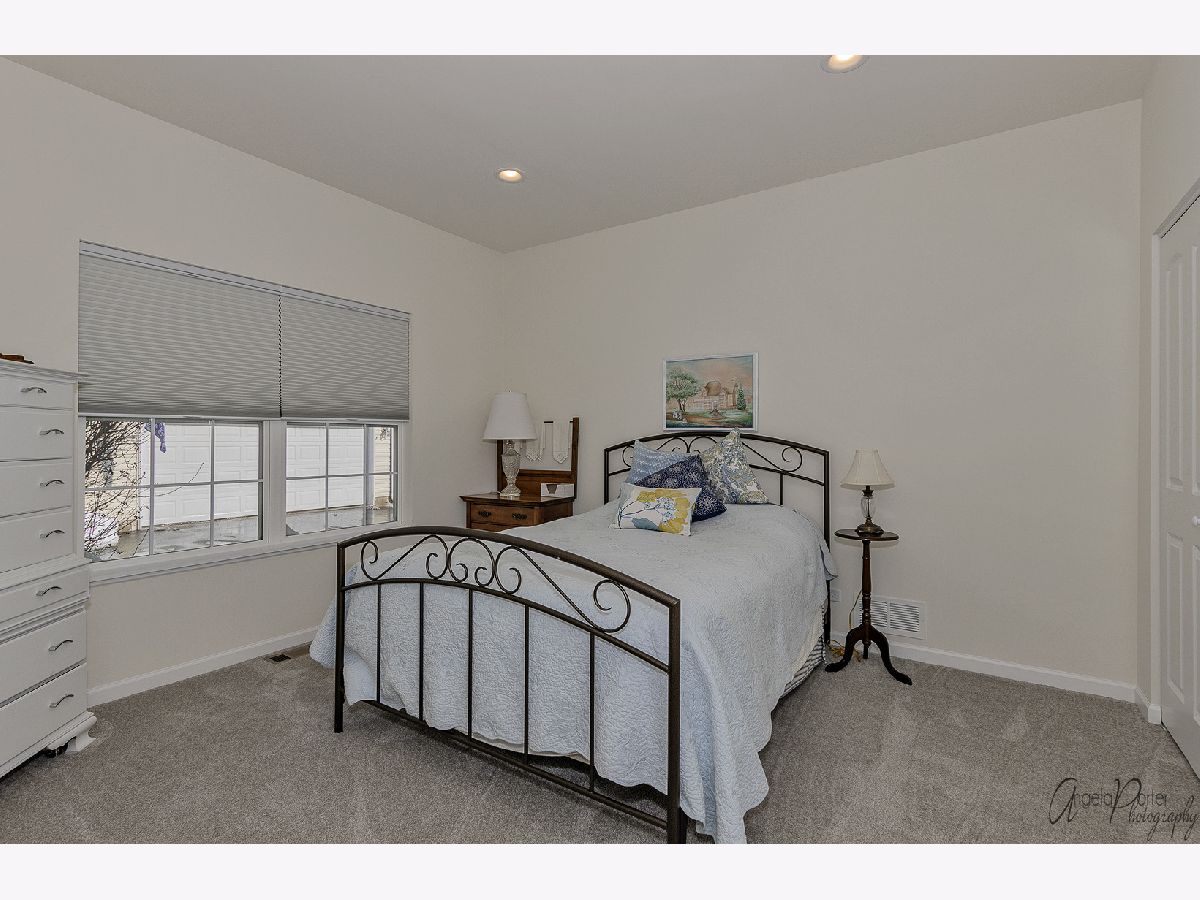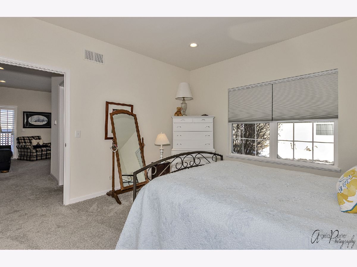 Absolutely beautiful and freshly remodeled ranch duplex features white Shaker style cabinetry, SS appliances, luxury vinyl plank flooring in kitchen and laundry, newer carpeting, full unfinished basement, 2+ car garage, 9' ceilings, white trim and doors, plantation shutters, new bath, freshly painted, light-filled open floor plan, sliders to the deck overlooking the pond and lovely views of nature, maintenance free living in a great over-55 resort like community. Use of the nearby Irish Prairie Health Club is included in the monthly assessment. This place looks like a model home, which is what it was!