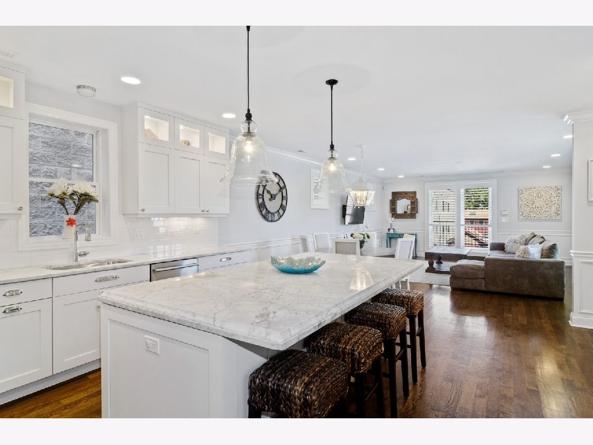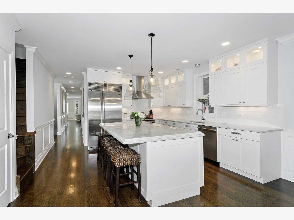 Stunning and impeccably maintained, this extra-wide, all-brick duplex-up penthouse is ideally located on an oversized lot in the heart of Lincoln Park. Don't let the address fool you, inside this home you do not hear a sound in this extremely quiet oasis, while enjoying a prime location steps to everything. Not a detail overlooked in this elegant and massive 4 bedroom, 3 bath home with 4 amazing outdoor spaces. This light-filled home features a thoughtful open floorplan, soaring ceilings, custom window treatments and intricate millwork throughout, including wainscoting, crown molding and hardwood floors, offering the finest in design and finishes. The main level features a spacious living/dining room, full bath, bedroom/office and oversized custom kitchen, which boasts custom white cabinetry, beautiful beveled edge stone countertops, an extra-large Island, top-of-the-line Wolf/SubZero appliances, wet bar and opens into a spacious great room with a private deck perfect for grilling. Second floor includes stately primary suite featuring a private terrace, expansive custom organized walk-in closet and spa-like bath with oversized steam shower, heated floors, jacuzzi soaking tub, and separate vanities. 2 large bedrooms, huge deck, tons of closet space, full bath, and a generous laundry room complete the floor. Up the stairs, a private outdoor oasis awaits you as the dry bar in the third-floor penthouse opens to an enormous, custom, private roof deck with spectacular veranda. Built-in grill, pavers, TV cable hookup, fire table, outdoor lighting and fabulous views. Garage space and appx 4 x 5 storage unit also included. Conveniently located in the heart of it all, near Fullerton L station, parks, the lakefront, Whole Foods and tons of dining and nightlife. Situated in Oscar Mayer school district. Experience the best of Lincoln Park.