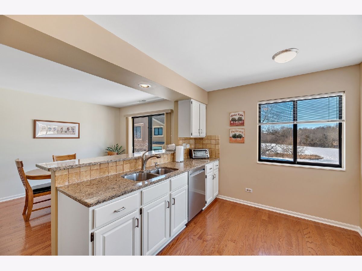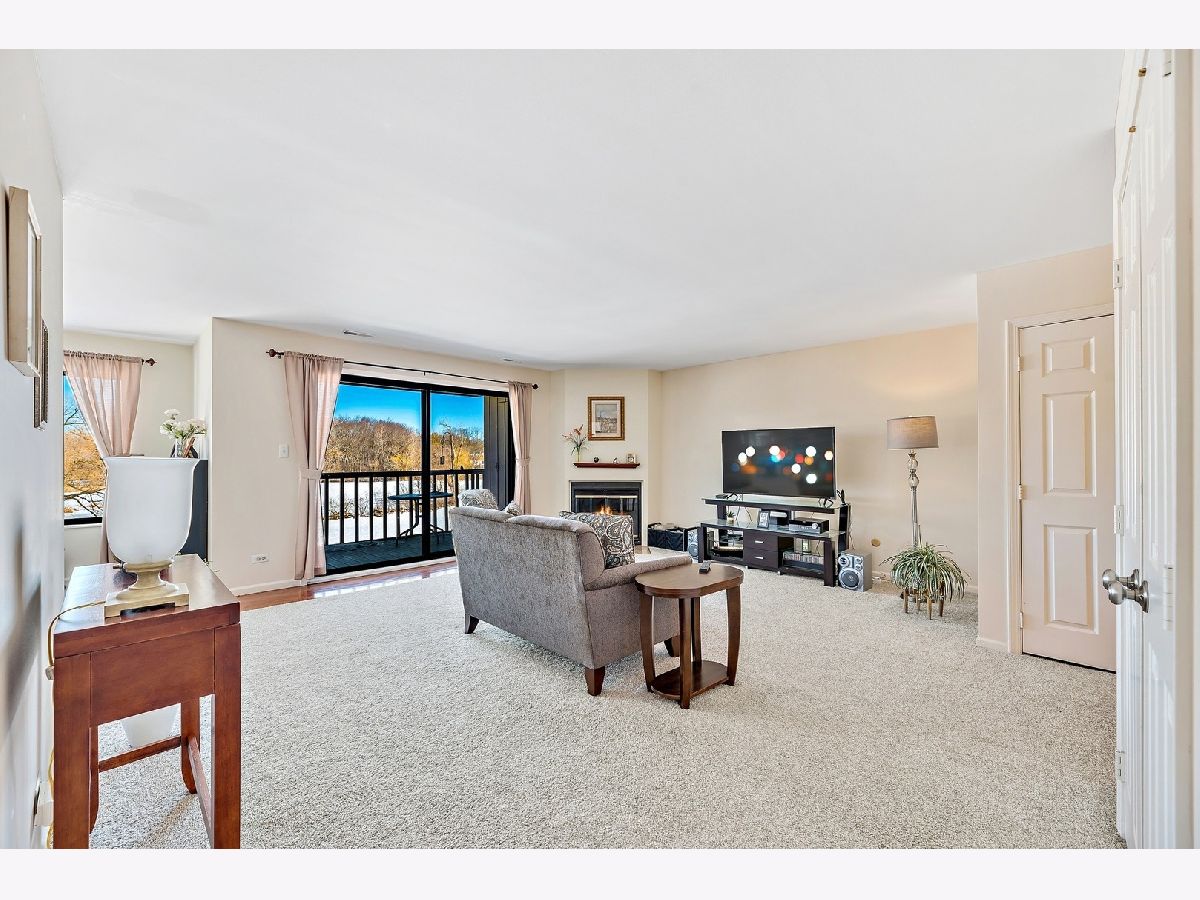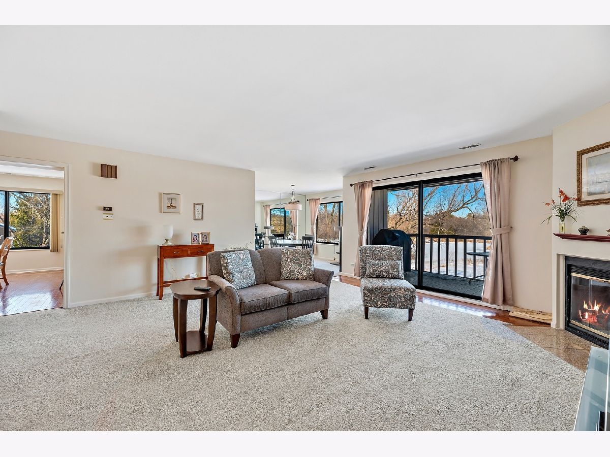Lake Barrington Shores at its finest. Fantastic 2 bedroom and 2 bathroom unit with phenomenal views. Living room with fireplace and sliding door to balcony. Formal dining room overlooking the landscape. Kitchen with white cabinetry, granite countertops, and new stainless steel appliances. The master suite is quite the retreat with large walk-in closet, and bath with soaking tub/shower. The secondary bedroom is well sized with ample closet space. In unit laundry room with additional cabinetry. Furnace and AC replaced in 2019. Attached 1 car garage. Great unit in a fabulous subdivision with activities, walking trails, clubhouse.