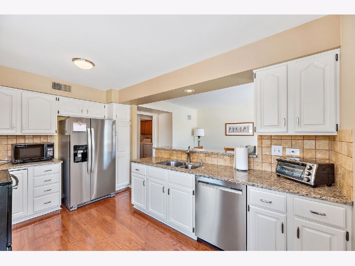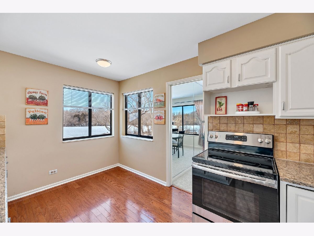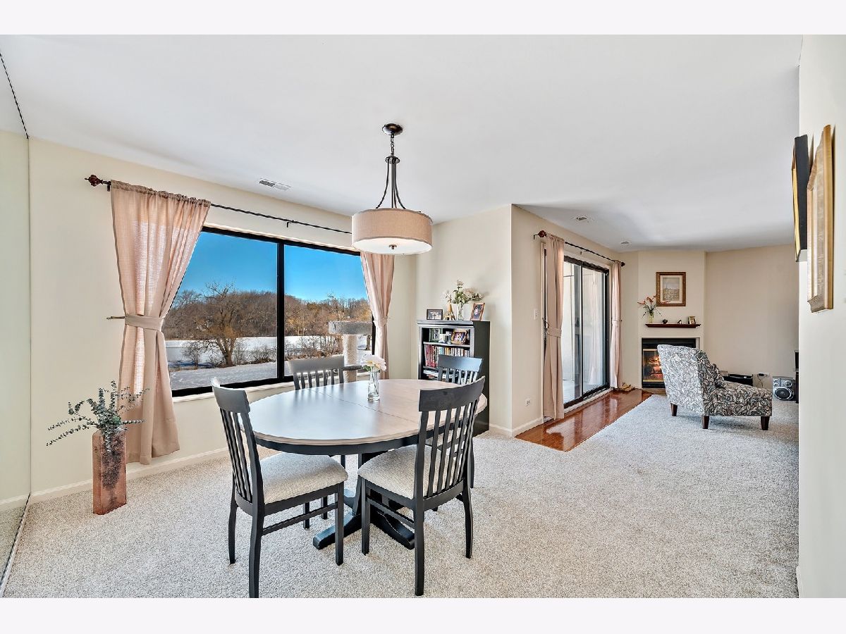 Lake Barrington Shores at its finest. Fantastic 2 bedroom and 2 bathroom unit with phenomenal views. Living room with fireplace and sliding door to balcony. Formal dining room overlooking the landscape. Kitchen with white cabinetry, granite countertops, and new stainless steel appliances. The master suite is quite the retreat with large walk-in closet, and bath with soaking tub/shower. The secondary bedroom is well sized with ample closet space. In unit laundry room with additional cabinetry. Furnace and AC replaced in 2019. Attached 1 car garage. Great unit in a fabulous subdivision with activities, walking trails, clubhouse.