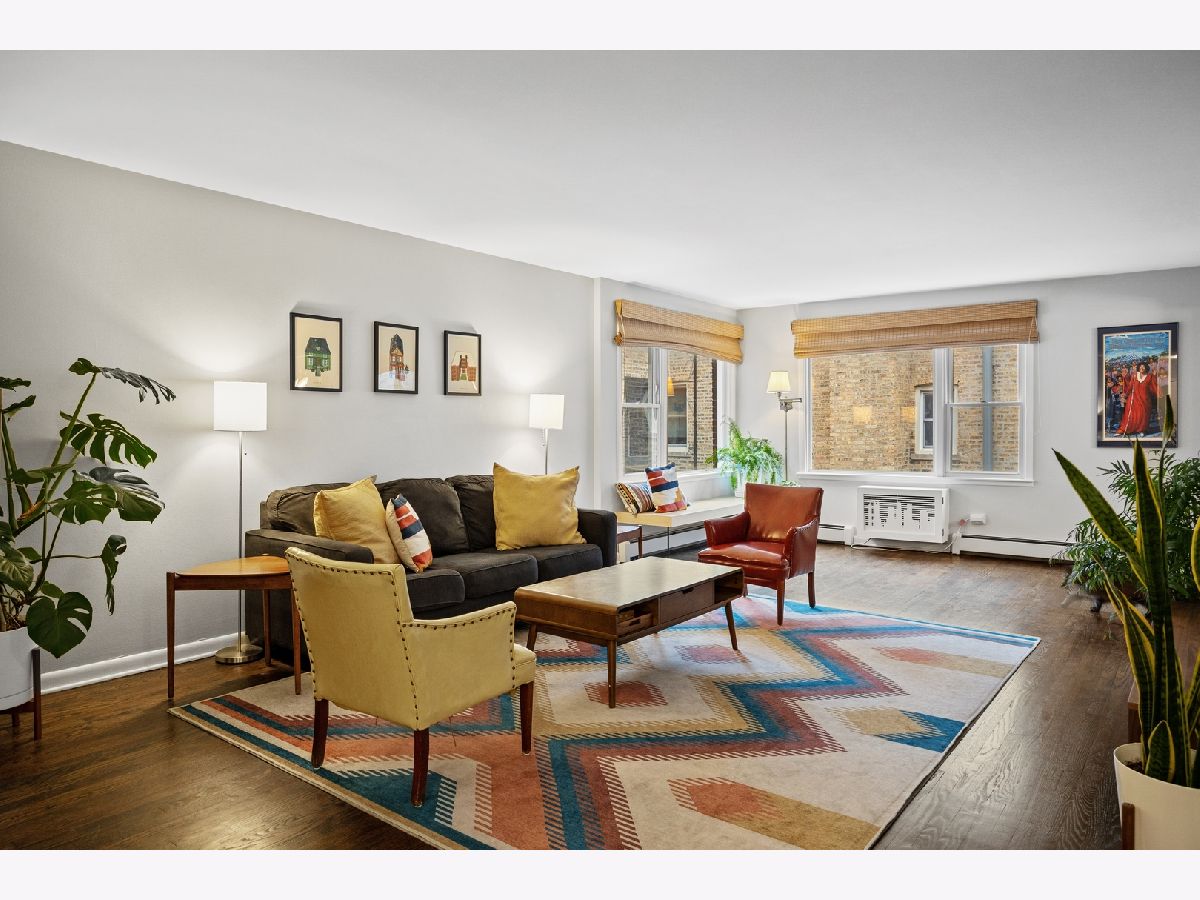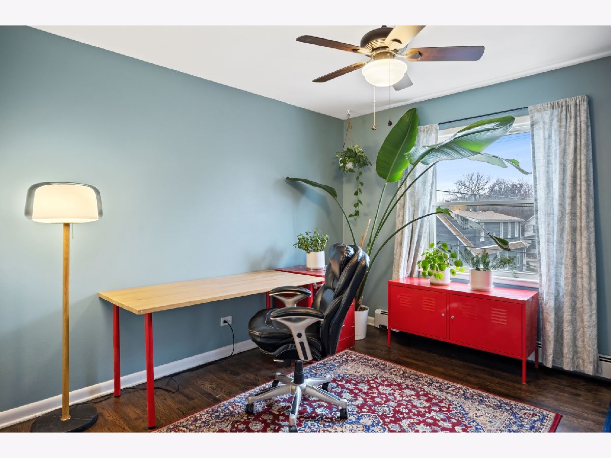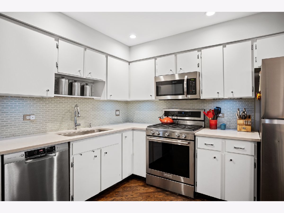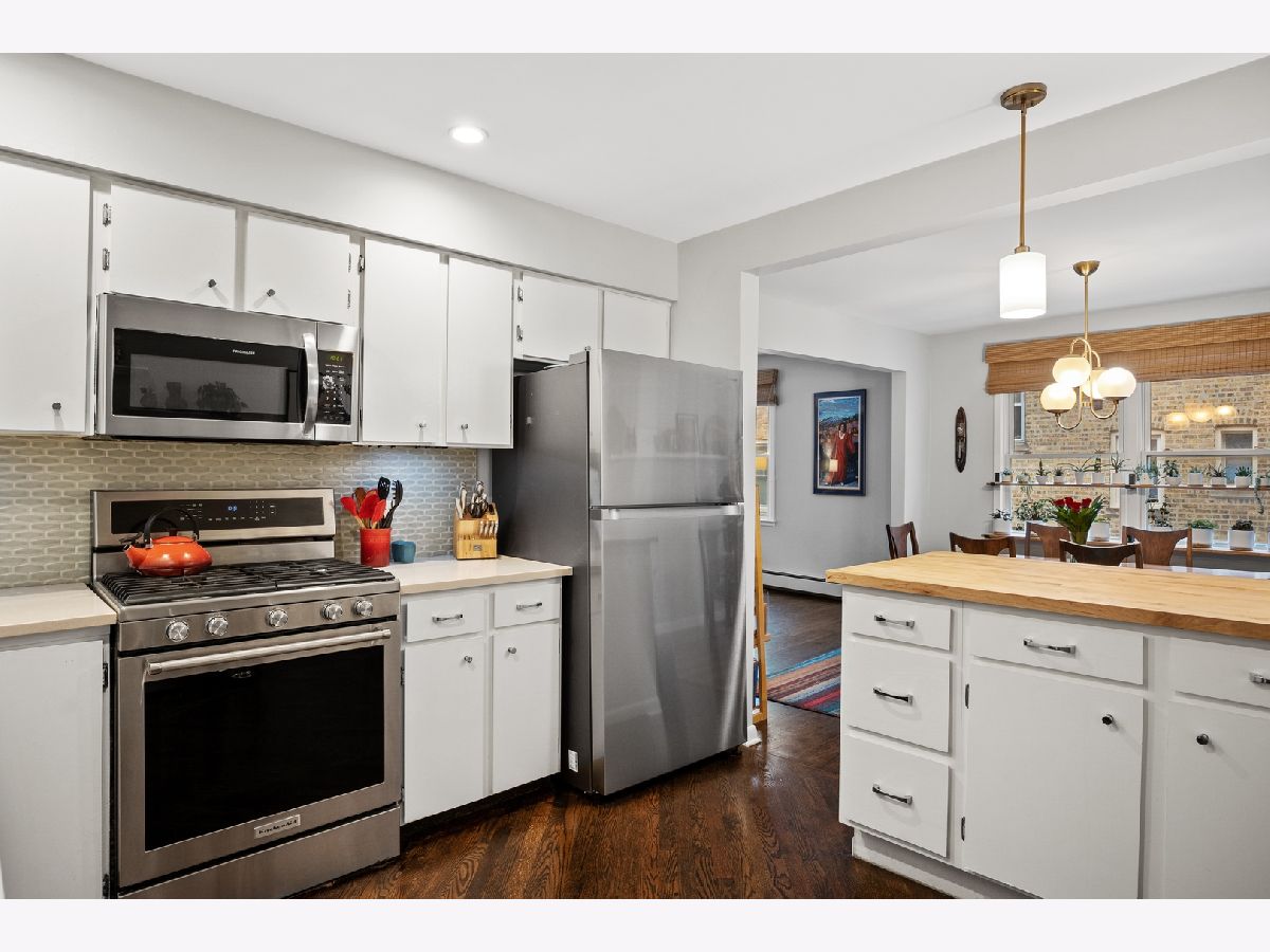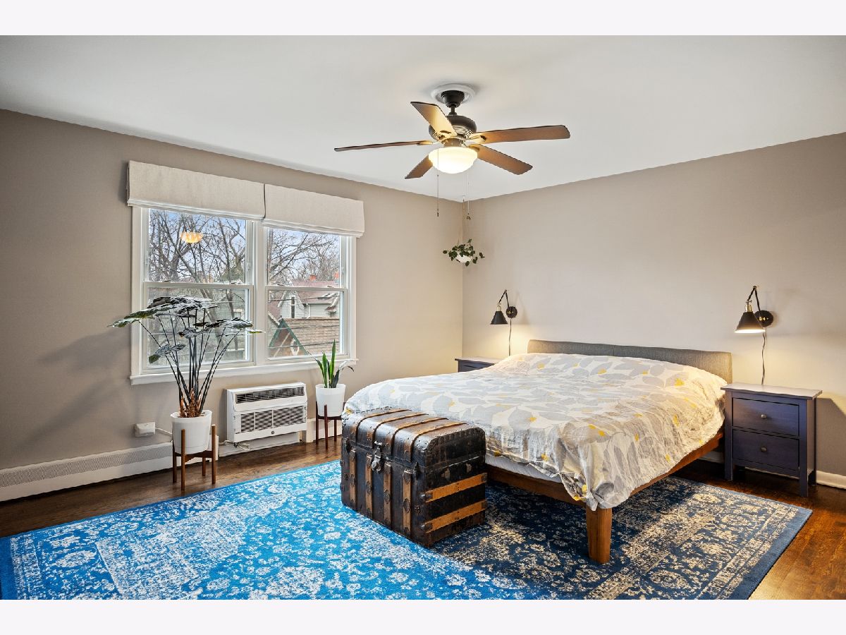 Welcome to this beautifully updated and spacious condo located just west of Chicago Ave. and close to all the Main Street shopping district has to offer! Spacious living room with hardwood floors and the quintessential picture window and window seat lets the light in and offers tree top views of the neighborhood. Large separate dining area is conveniently open to both the living room and kitchen. Amazing kitchen with abundance of cabinet space, breakfast counter, newer stainless steel appliances and beautiful blue tile backsplash. Quiet primary suite with ample double closets, hardwood floors and private full bath. Two additional bedrooms each with large closets, hardwood floors and Western exposure for lots of natural light. Several recent updates including refinished hardwood floors, fresh paint, and ceiling fans. Great building with elevator, laundry for each level and professionally managed. Storage space and assigned exterior parking included. Great Evanston location close to shopping, restaurants, Metra and the lakefront.