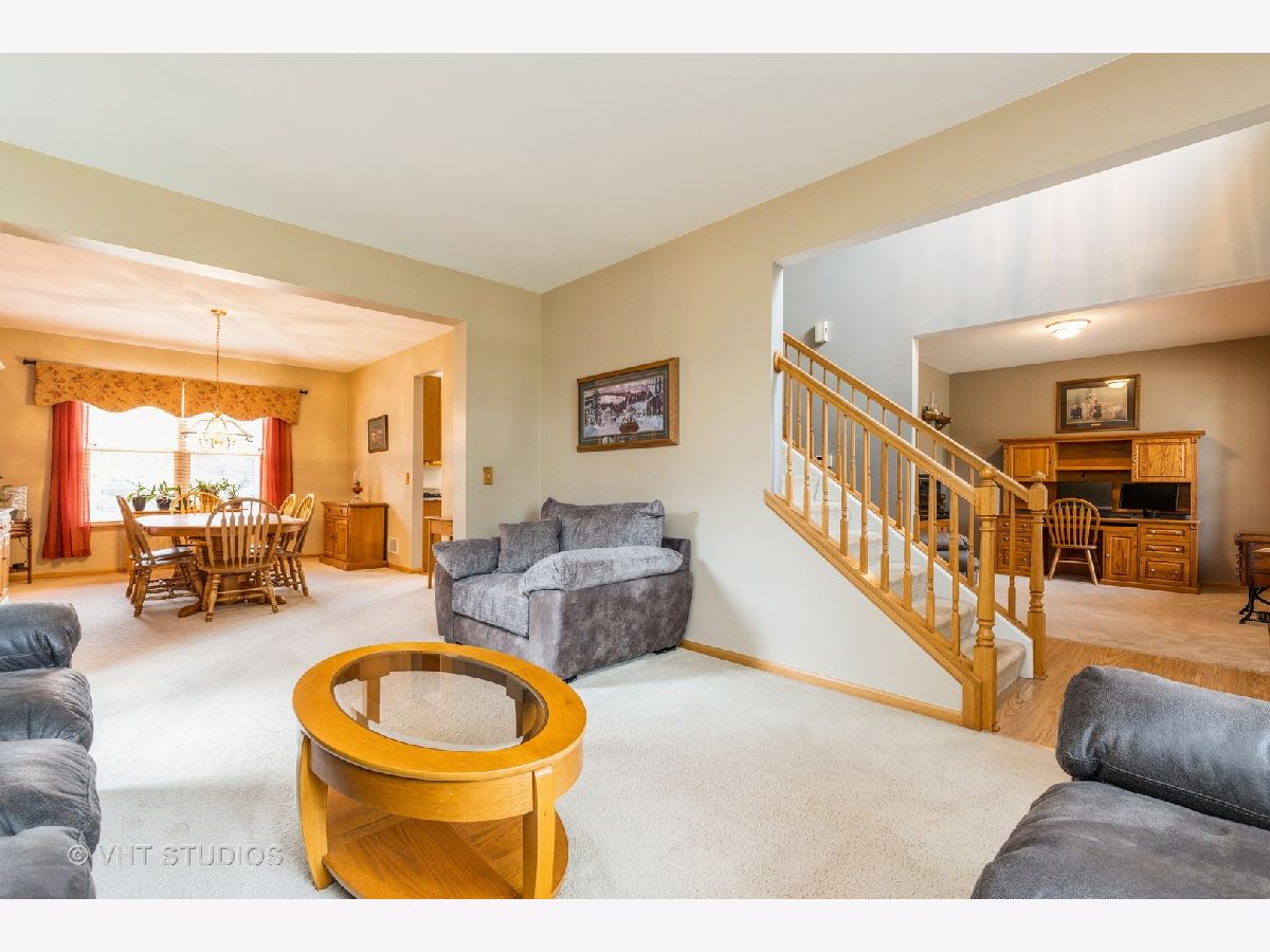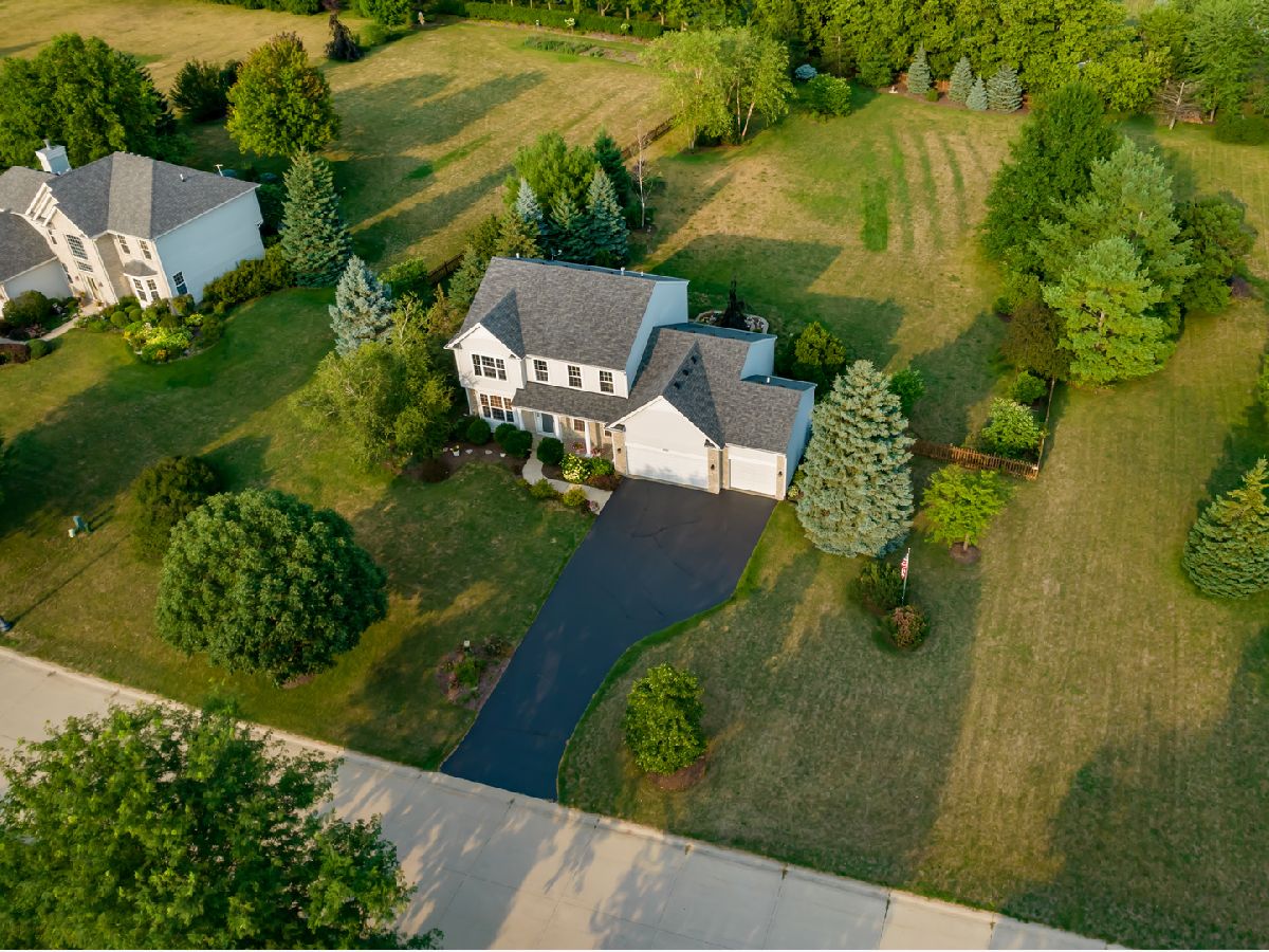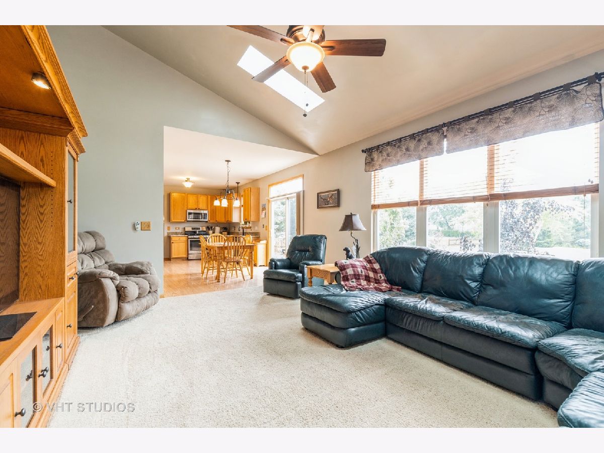 Beautiful semi-custom 'Summerhill Model' is located in Phase III of Wilmot Farms. This 4 bedroom, 2.5 bath home is situated on just over an acre with mature landscaping and many updates throughout. Upon entry, there is a bright two-story foyer. To the right, there is a Den which could also be made into an office or 5th bedroom. To the left, there is an inviting living room which opens to a separate formal dining room space for entertaining. The kitchen has stainless steel appliances, updated granite countertops, wood laminate flooring and an eating area. The family room features vaulted ceilings with two skylights for a nice and bright open space. The windows overlook the spacious fenced-in backyard with professional landscaping and a two-level patio to enjoy the warm summer weather. The main level also includes a powder room and a laundry room with utility sink and extra cabinets for storage. The attached three car garage is located next to the laundry room. Upstairs, there are three separate bedrooms, a newly updated full bathroom with quartz countertops and a primary suite. The primary suite features vaulted ceilings, a large walk-in closet, and a gorgeous newly remodeled bathroom. The primary bath features elegant tilework, dual vanity sinks with quartz countertops, a whirlpool tub and separate shower and newer windows and skylight (2018). This home has 9-foot ceilings, newer roof and skylights (2018), newer High Efficiency furnace (2018), 6 panel oak doors and a radon mitigation system. The full basement has a finished living room as well as a storage area, craft room and workshop. Envision yourself in the finished basement living room relaxing as though you are on a rustic vacation with the nicely finished tongue and groove pine wall plank and ceiling, newer carpeting, and stone fireplace (electric) with custom mantle and hearth. There is a park close by with child play structures, picnic table and soccer field. Conveniently located near parks, shopping, restaurants, and route 12 for an easy commute. Nothing to do but move in and enjoy!
