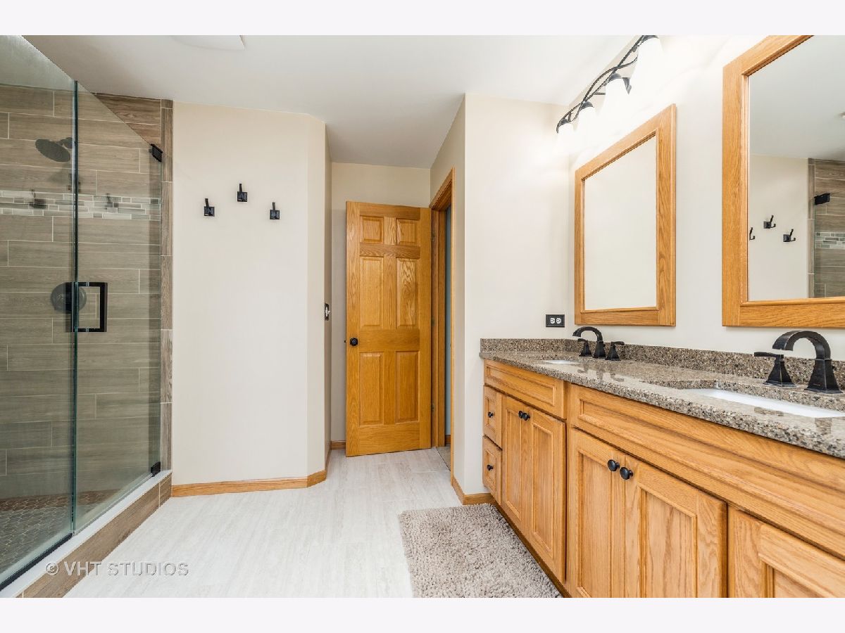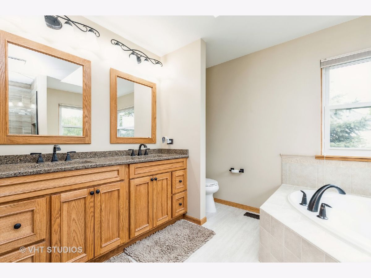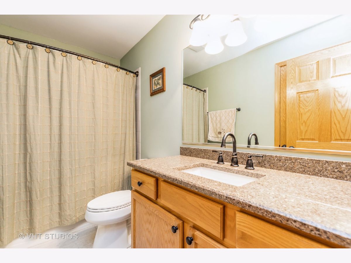 Beautiful semi-custom 'Summerhill Model' is located in Phase III of Wilmot Farms. This 4 bedroom, 2.5 bath home is situated on just over an acre with mature landscaping and many updates throughout. Upon entry, there is a bright two-story foyer. To the right, there is a Den which could also be made into an office or 5th bedroom. To the left, there is an inviting living room which opens to a separate formal dining room space for entertaining. The kitchen has stainless steel appliances, updated granite countertops, wood laminate flooring and an eating area. The family room features vaulted ceilings with two skylights for a nice and bright open space. The windows overlook the spacious fenced-in backyard with professional landscaping and a two-level patio to enjoy the warm summer weather. The main level also includes a powder room and a laundry room with utility sink and extra cabinets for storage. The attached three car garage is located next to the laundry room. Upstairs, there are three separate bedrooms, a newly updated full bathroom with quartz countertops and a primary suite. The primary suite features vaulted ceilings, a large walk-in closet, and a gorgeous newly remodeled bathroom. The primary bath features elegant tilework, dual vanity sinks with quartz countertops, a whirlpool tub and separate shower and newer windows and skylight (2018). This home has 9-foot ceilings, newer roof and skylights (2018), newer High Efficiency furnace (2018), 6 panel oak doors and a radon mitigation system. The full basement has a finished living room as well as a storage area, craft room and workshop. Envision yourself in the finished basement living room relaxing as though you are on a rustic vacation with the nicely finished tongue and groove pine wall plank and ceiling, newer carpeting, and stone fireplace (electric) with custom mantle and hearth. There is a park close by with child play structures, picnic table and soccer field. Conveniently located near parks, shopping, restaurants, and route 12 for an easy commute. Nothing to do but move in and enjoy!