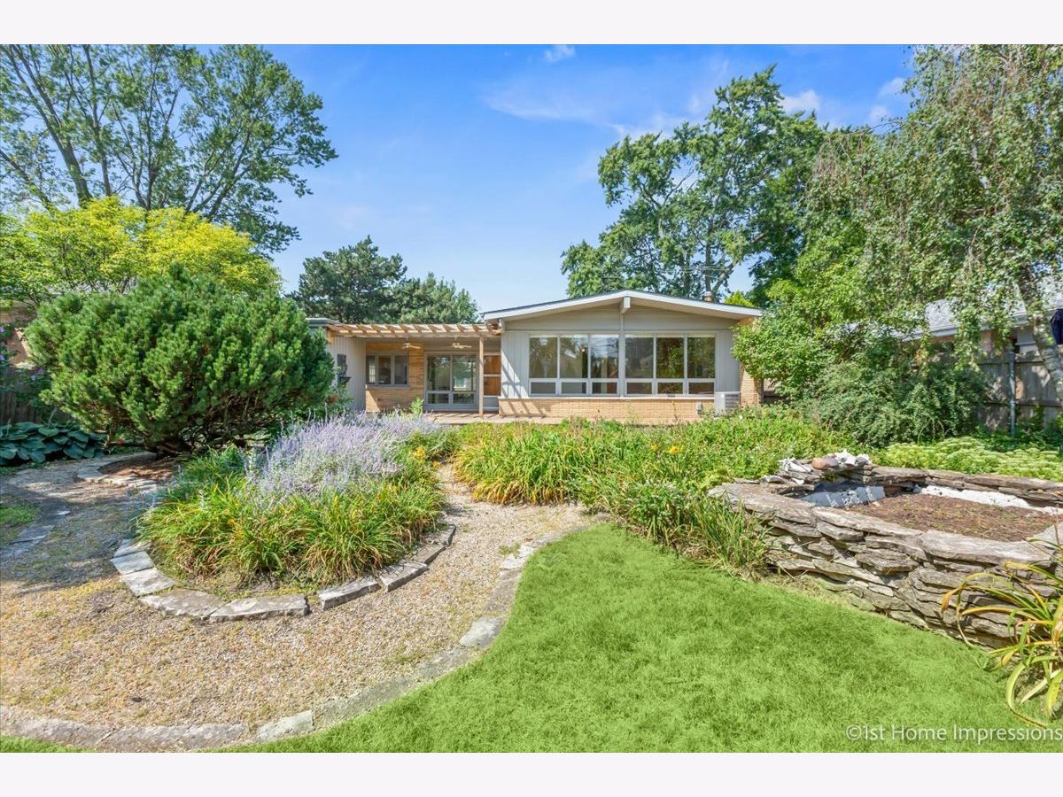 Calling all gardeners! Welcome home to this peaceful and private retreat boasting an exquisite garden and contemporary carpentry. Upon entering this home you will be greeted by picturesque floor to ceiling windows and sun kissed rooms overlooking your gorgeous yard. You can sip your coffee on your pergola covered porch or take a stroll through the winding pathways of your garden and admire it's beauty. The eat-in kitchen and spacious dining room overlook your beautiful outdoor entertainment area and feature wide plank hardwood floors, granite counters, custom storage and a unique architectural feature. The large living room has a gorgeous built-in cabinet and also boasts floor to ceiling windows. There are 3 bedrooms with spacious closets and 1 updated full bath with a double vanity and vitrolite glass tile. The basement has a wood burning stove, a 20 x 20 concrete crawl space providing tons of storage, as well as a partially finished 2nd bathroom. This home had professional drainage tile and overhead sewers installed in 2006. The age of the mechanicals is not known but appear to be like-new. This charming home has been well maintained and is an as-is sale.