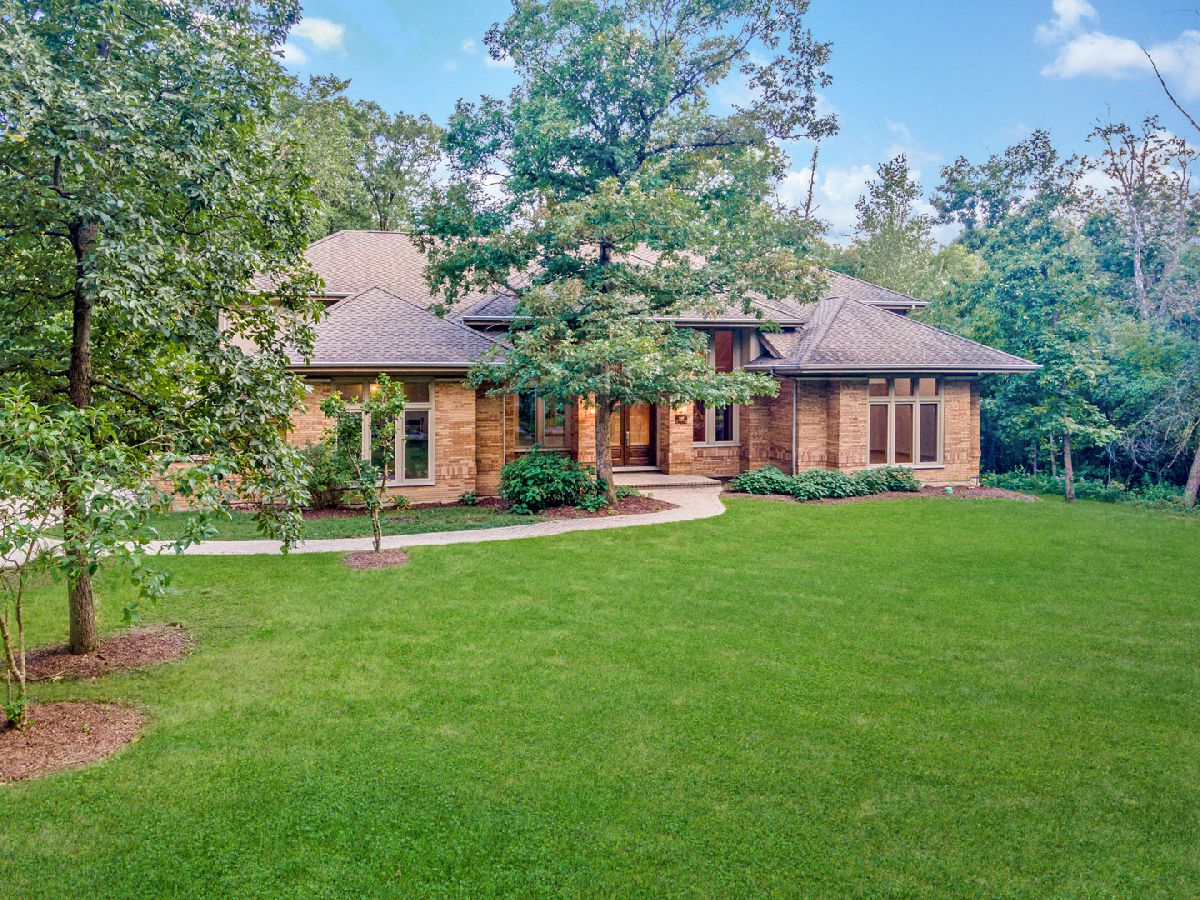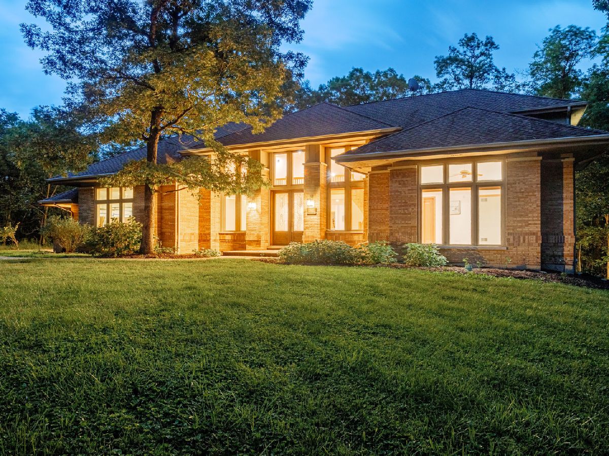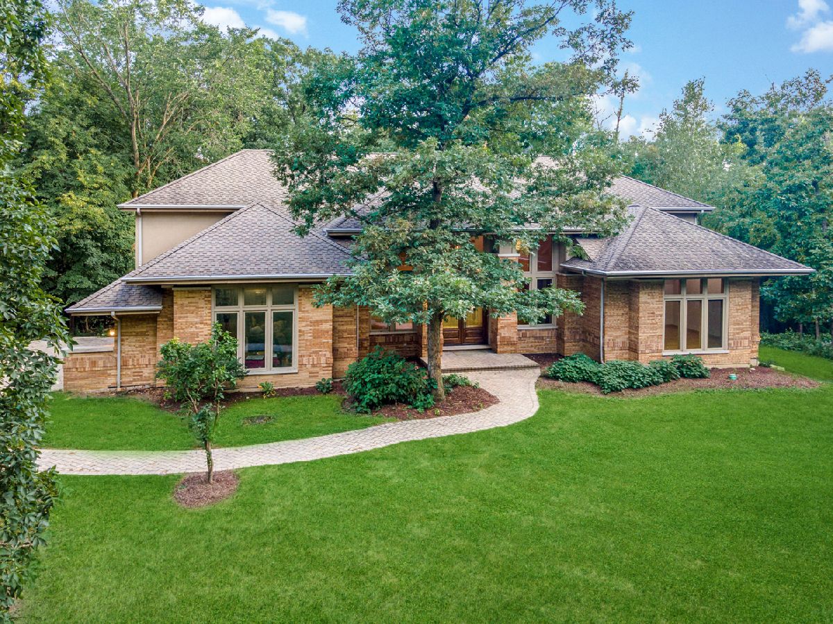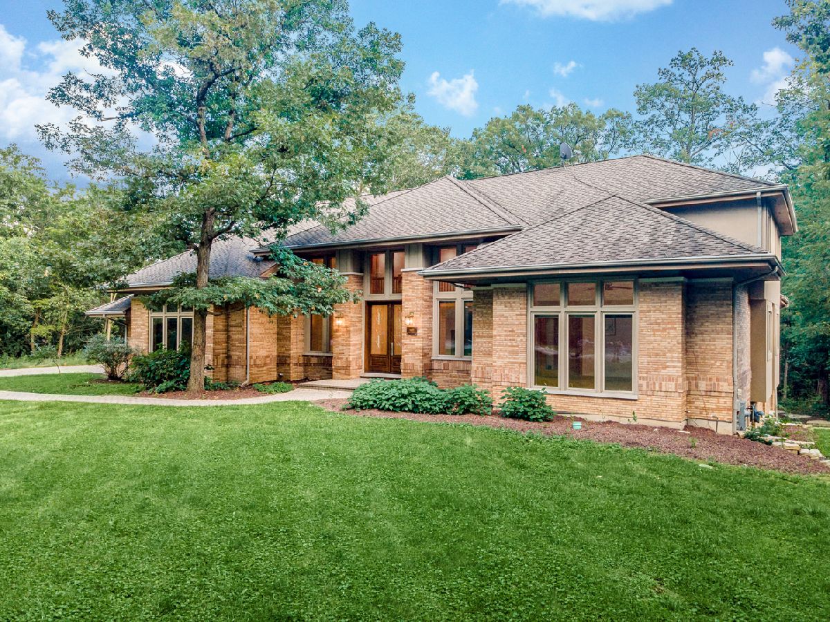 Towering, majestic trees create a setting of unbridled beauty and privacy for this Frank Lloyd Wright inspired CUSTOM masterpiece on approximately 2.5 acres. Impressive curb appeal with classic architectural design highlighted by brick construction. Open floor plan filled with natural light lends itself to effortless entertaining on a grand or casual scale. Inviting foyer with grand, curved staircase. Regal FIRST FLOOR MASTER SUITE with enormous walk in closet and private glamour bath room. Gourmet kitchen with custom cabinetry, granite counter tops and high end stainless steel appliances. Awe inspiring great room with fireplace and wall of windows overlooking grounds. Spacious bedrooms with ample closet space. Gleaming hardwood flooring throughout. Second floor bonus room set up to be 2 additional bedrooms. Enormous WALK OUT lower level offers perfect space for additional bedrooms, storage, recreation, gaming, and so much more! Breathtaking grounds with extremely private backyard with patio. Secluded location with limited traffic. Approximately 35 minutes from Midway Airport. Close to shopping, dining, Metra, thousands of acres of forest preserves and world renowned golf courses. Impeccably maintained property. ESTATE SALE