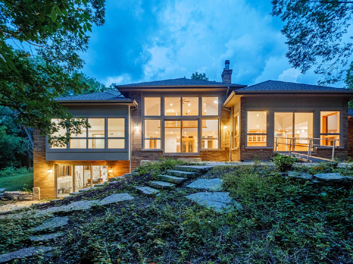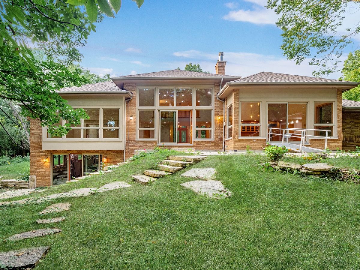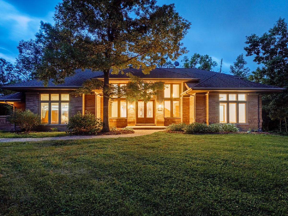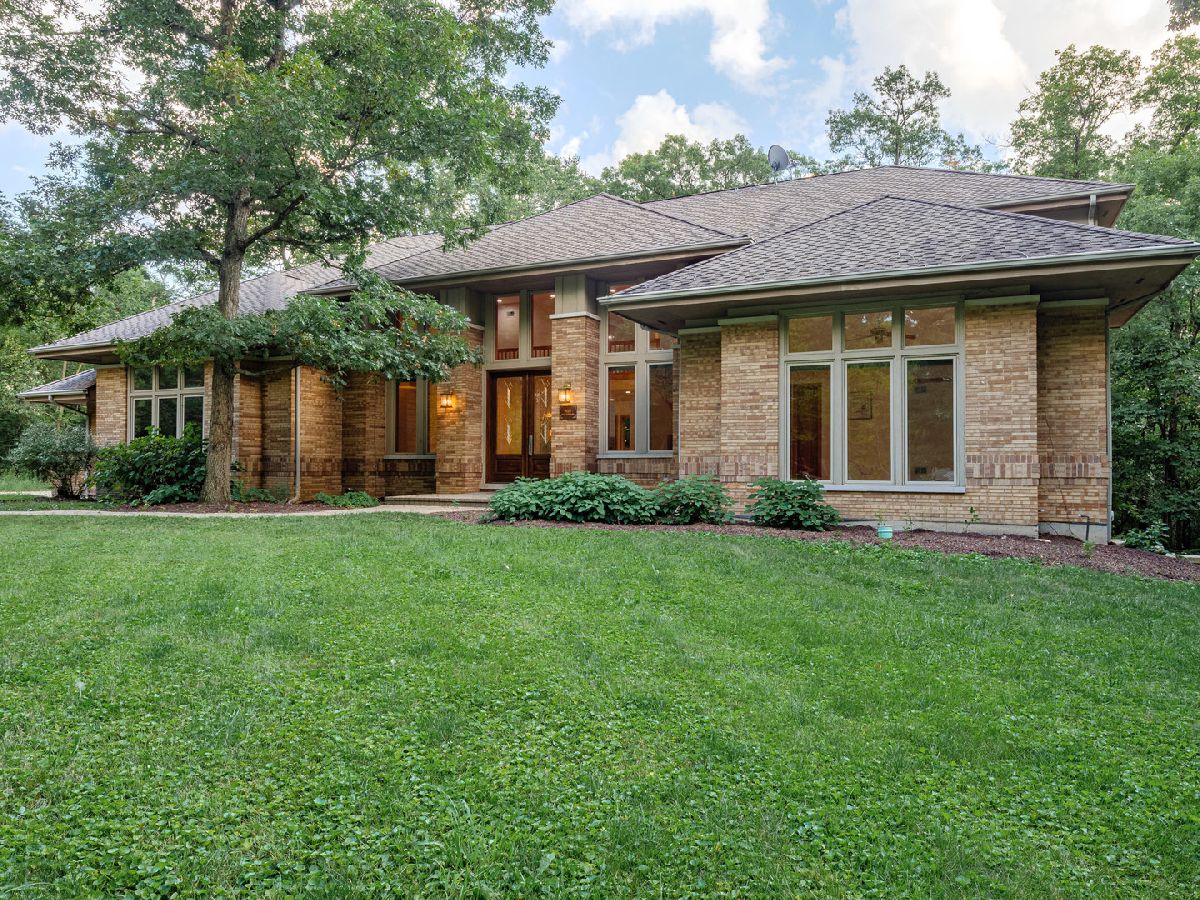 Towering, majestic trees create a setting of unbridled beauty and privacy for this Frank Lloyd Wright inspired CUSTOM masterpiece on approximately 2.5 acres. Impressive curb appeal with classic architectural design highlighted by brick construction. Open floor plan filled with natural light lends itself to effortless entertaining on a grand or casual scale. Inviting foyer with grand, curved staircase. Regal FIRST FLOOR MASTER SUITE with enormous walk in closet and private glamour bath room. Gourmet kitchen with custom cabinetry, granite counter tops and high end stainless steel appliances. Awe inspiring great room with fireplace and wall of windows overlooking grounds. Spacious bedrooms with ample closet space. Gleaming hardwood flooring throughout. Second floor bonus room set up to be 2 additional bedrooms. Enormous WALK OUT lower level offers perfect space for additional bedrooms, storage, recreation, gaming, and so much more! Breathtaking grounds with extremely private backyard with patio. Secluded location with limited traffic. Approximately 35 minutes from Midway Airport. Close to shopping, dining, Metra, thousands of acres of forest preserves and world renowned golf courses. Impeccably maintained property. ESTATE SALE