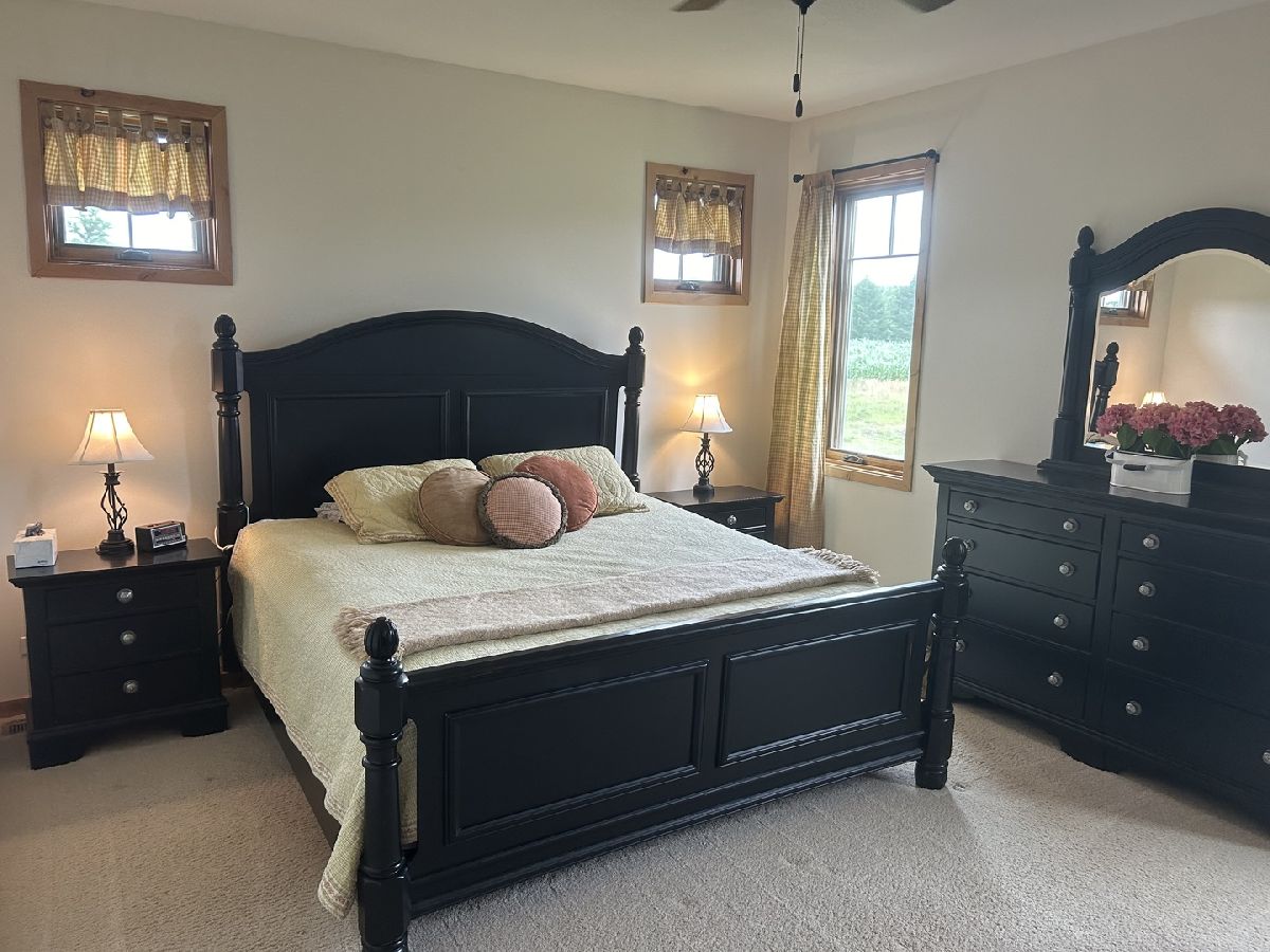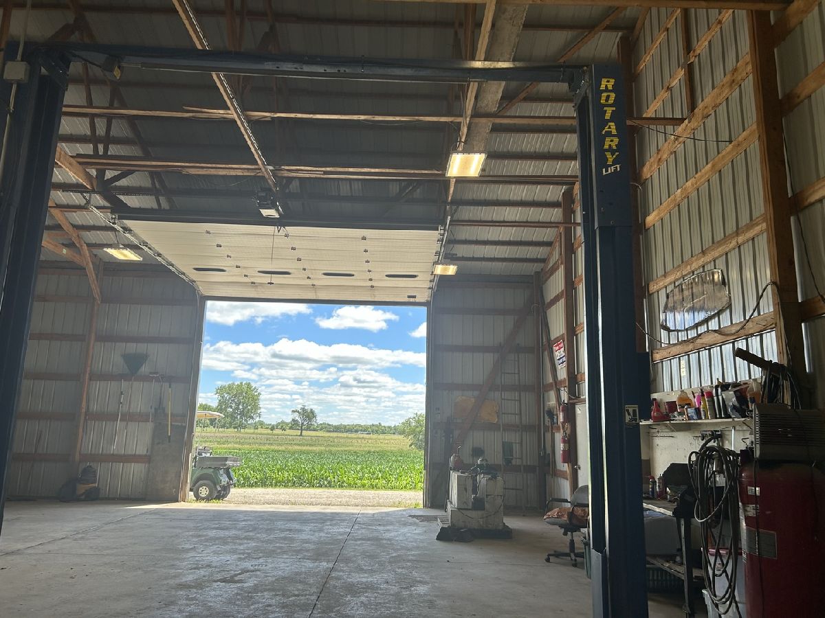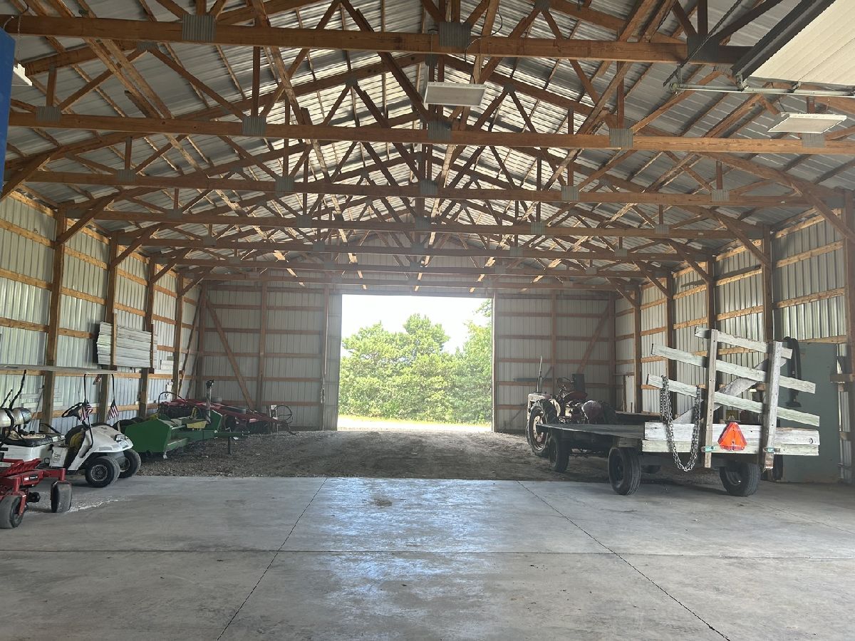 Stunning custom home on 21.42 Acres. Built with quality materials and amenities. Home sits on 11.21 Acres, there are two additional build-able parcels (5.57 Acres and 4.64 Acres) with E-5 zoning. There are 17 tillable acres, the farm is in corn and will be harvested by farm tenant in the fall. Every building and design choice was upgraded--no builder grade products here. Hardy Siding on exterior, screened-in back porch with tempered glass and summer screens. Home has 2'x'6' walls, 9' ceilings on main level and in walk-out basement. Two wood burning fireplace/stove, main level has the heatilator circulating system. Floors are Birdseye Maple, main BR has carpet, two full baths have Marble tile. The kitchen, bathrooms and laundry rooms all have Knotty Alder Cabinets. And, the interior doors and trim are Knotty Alder as well. In the main suite, there is a huge Jacuzzi air tub and the walk in shower has a steam bath feature. Main level has two bedrooms and an office/3rd bedroom. The basement has a walk-out entrance door, currently has a wood burning stove but is framed for a formal in-wall fireplace feature. The 3 car attached garage has oversized doors for larger trucks/vehicles, doors are 8'x18' and 8'x9'. The house sits up high and the sump pump never runs. The Zenz buillt custom machine shop is 48'x80' and has an overhead 16'x14' electric insulated door. There is also a sliding barn door on East end of building 20'x14 for easy access to large machinery. Approximately 1/3 of machine shop has concrete for the working area. There is an overhead lift system as well. Property has a 400 amp service, 200 amp service runs machine shop. The views overlooking the farm are panaramic! This is a great opportunity to live where you work and love where you live!