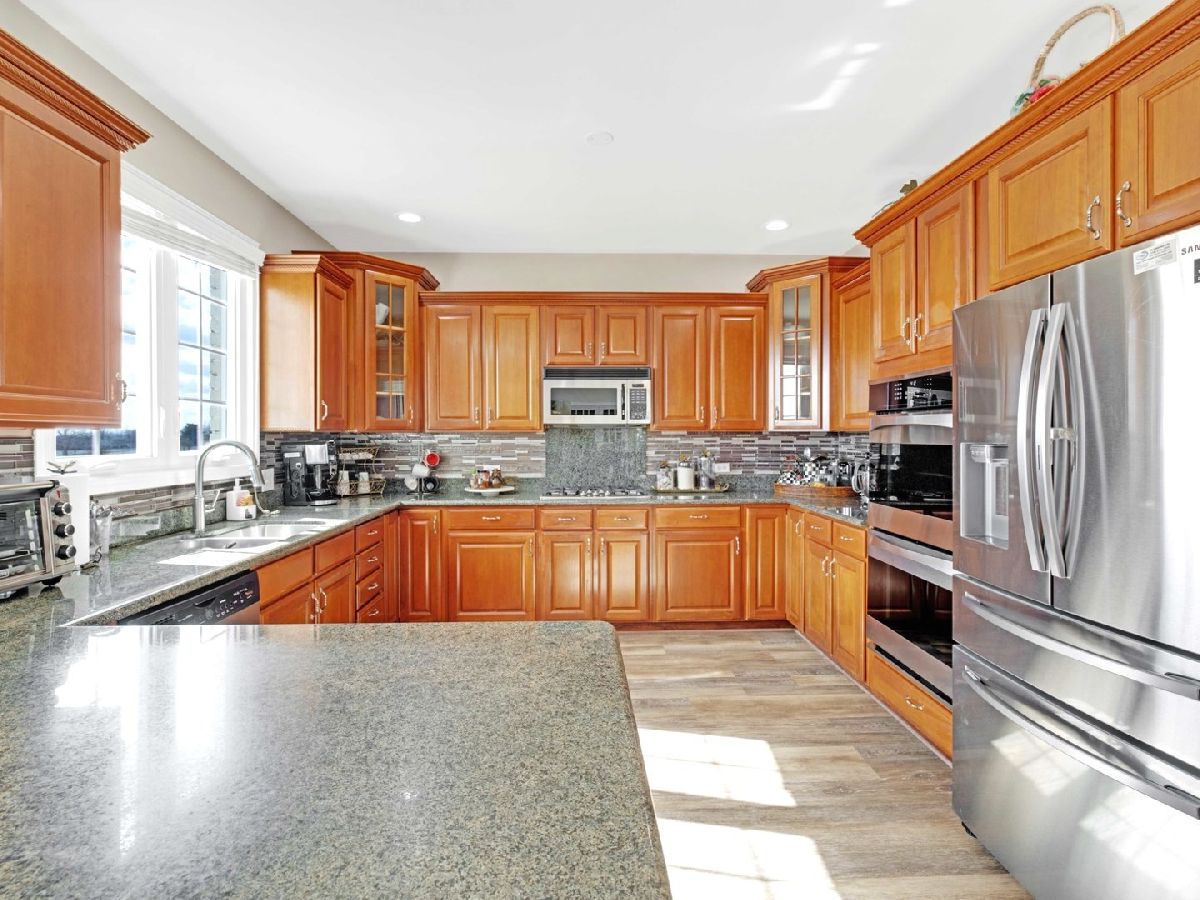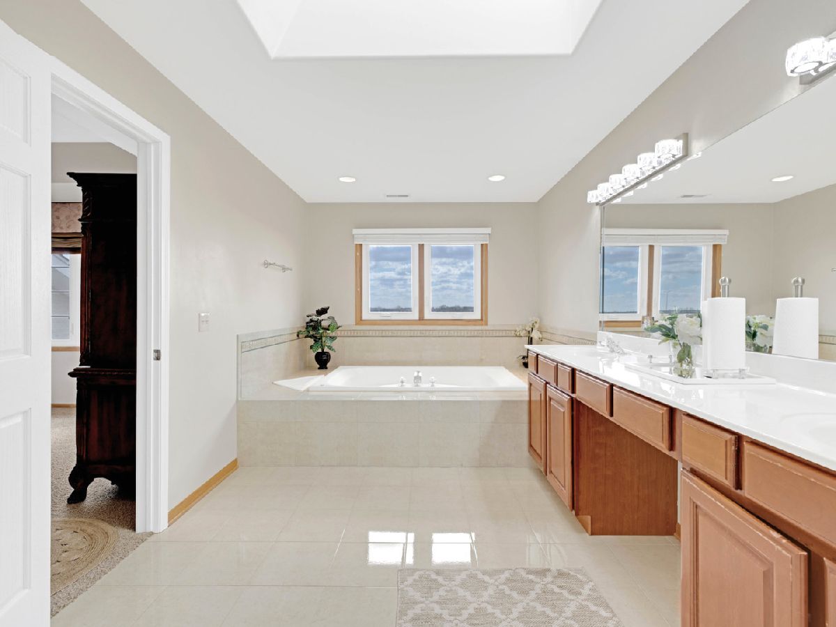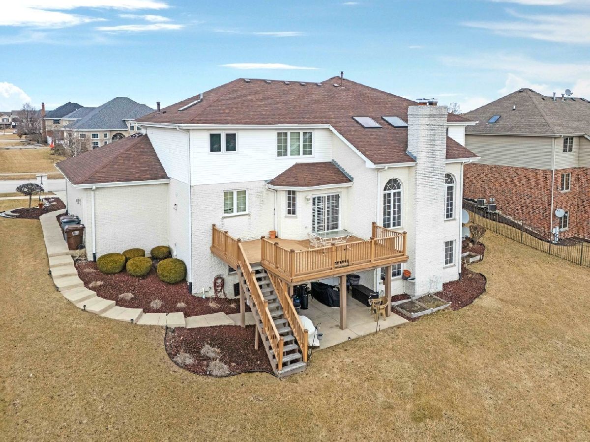 Experience nearly 6,000 square feet of luxurious living in the prestigious Timber Pointe Estates of Tinley Park. This meticulously maintained stunning home welcomes you with a grand two-story foyer, opening to an elegant, open-concept floor plan featuring formal living and dining rooms. The expansive kitchen is a chef's dream, boasting granite countertops, rich oak cabinetry, stainless steel appliances, a spacious dining area, and a butler's pantry - great for a beverage station. Step onto the large balcony, perfect for hosting grand gatherings or savoring a quiet morning coffee. The main floor offers a private bedroom with an adjacent tandem office, a half bath, and a convenient laundry room. The inviting family room, illuminated by a skylight, features a cozy fireplace and dramatic floor-to-ceiling windows. Upstairs, the second floor hosts four generously sized bedrooms and two full baths, including a luxurious master suite with a walk-in closet, a spa-like bath, and a relaxing jacuzzi tub. The walk-out basement is a home of its own, complete with a bedroom, full bath, second laundry room, an additional bedroom or workout room, a full kitchen, dinette, and an expansive recreation area - all leading out to a beautifully paved patio with serene views. Additional highlights include a three-car attached garage and professionally maintained landscaping. Conveniently located near I-80, La Grange Road, and Harlem Avenue. Recent updates include a fully finished basement, a new roof (2022), furnaces (2022 & 2023), AC (2024), and washer and dryer (2020). This exceptional home offers space, style, and sophistication - a true gem in Timber Pointe Estates.