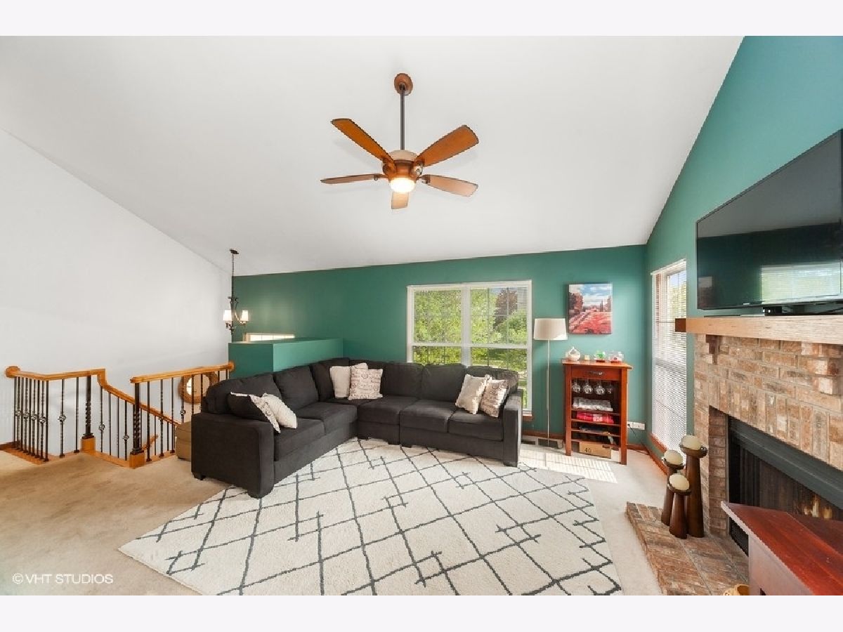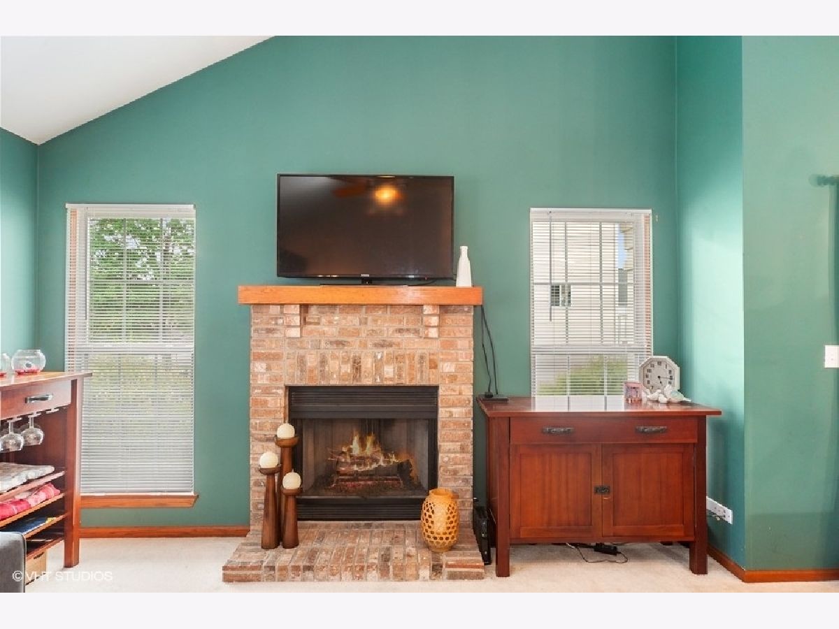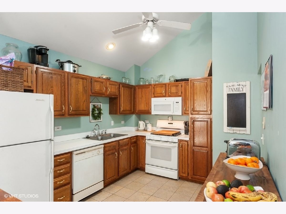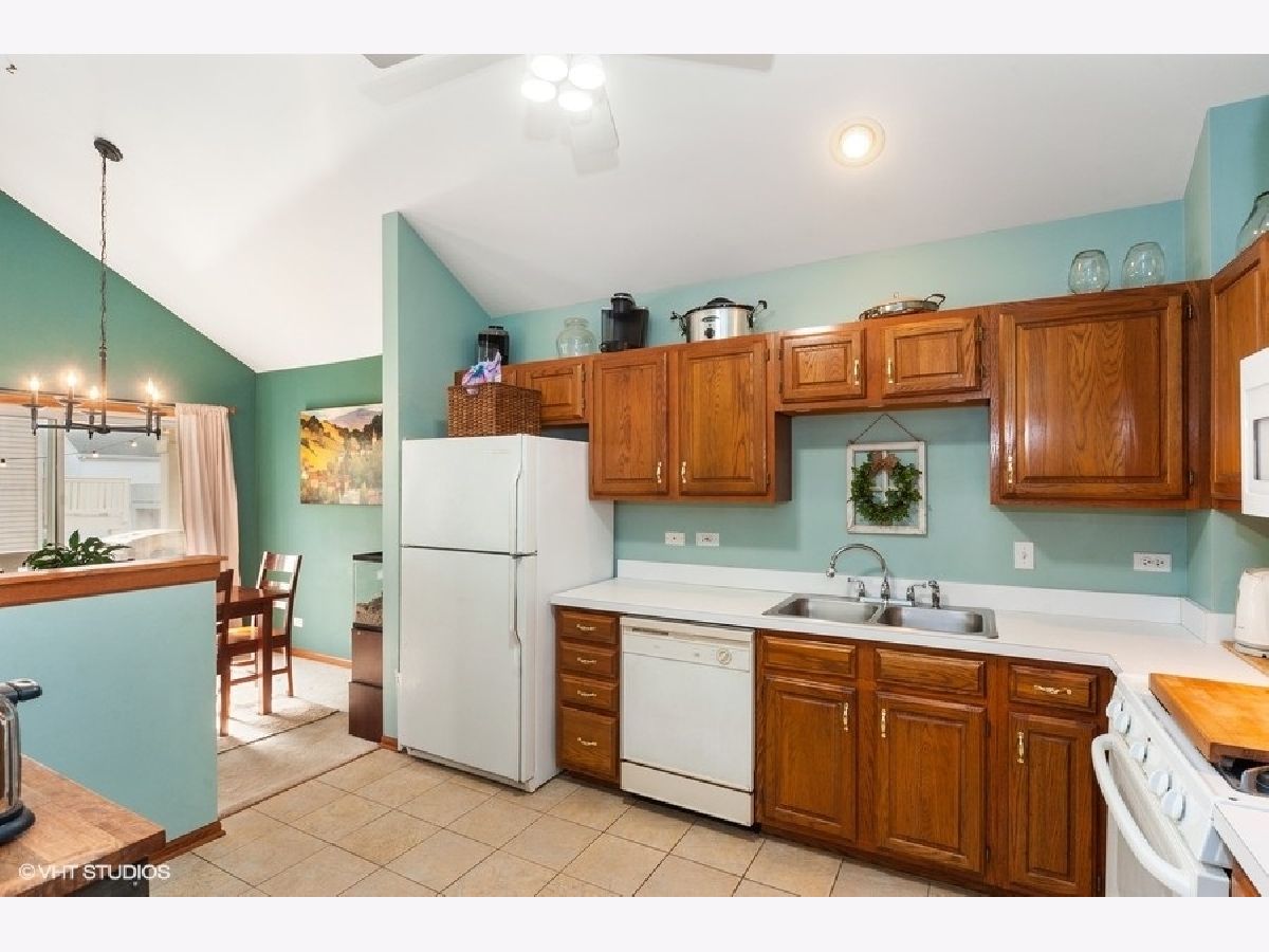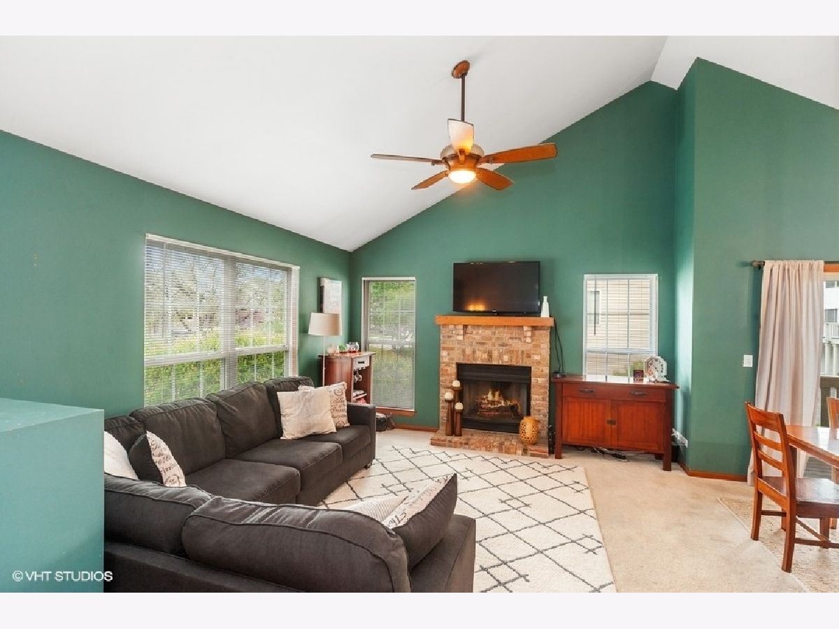3 bedroom End Unit in College Trail, Every room on 1st floor with a vaulted ceiling, Open Floor Plan, Kitchen with ceramic tile floor and all appliances included, living room, kitchen and 2 of the 3 bedrooms has a ceiling fan, Living Room and Family Room both have brick fireplaces, Master bedroom with walk-in closet, Bathroom with dual sinks, 2.5 car attached garage and Close to Rollins Savanna Forest Preserve and College of Lake County, Move in Ready.