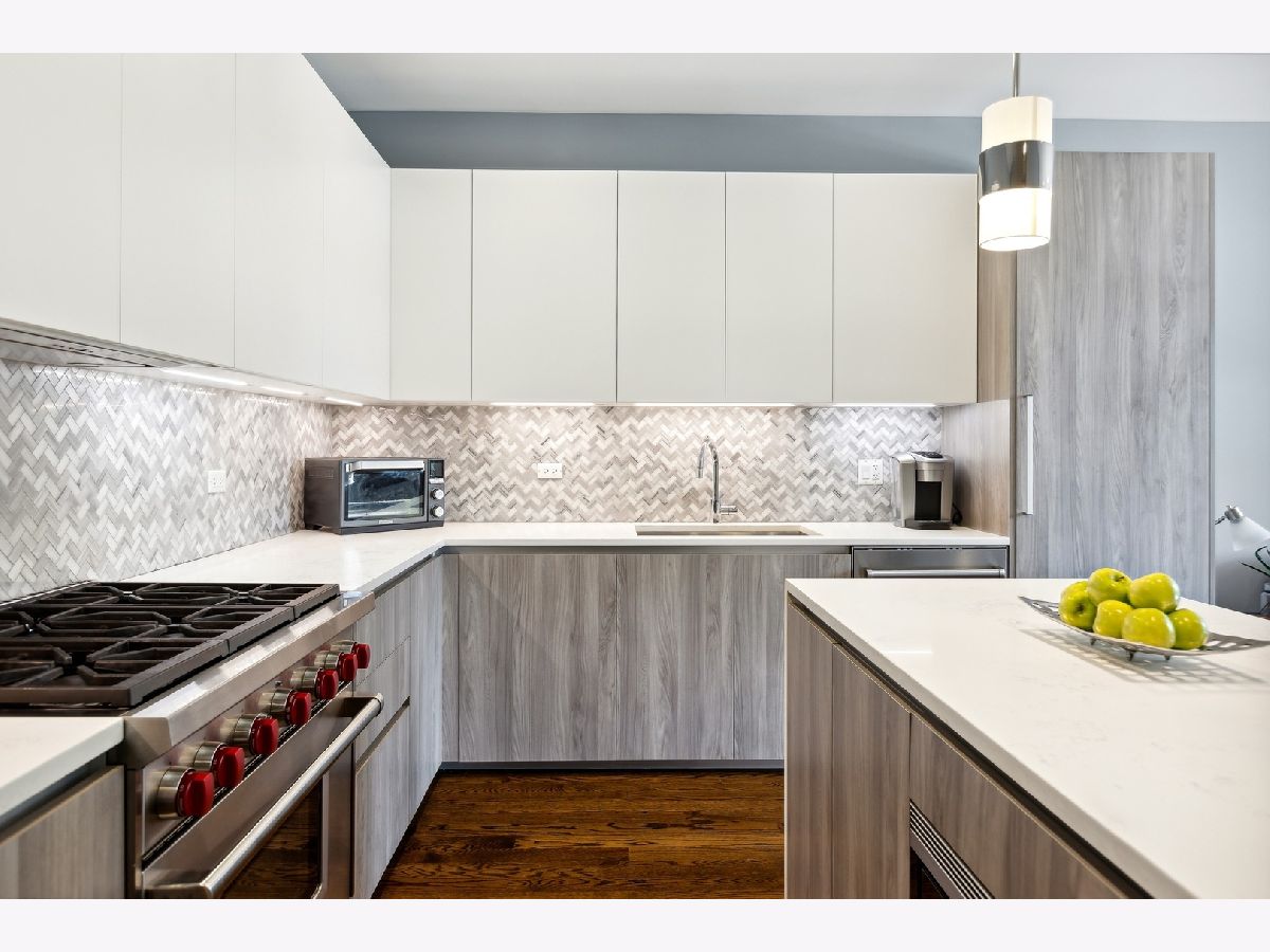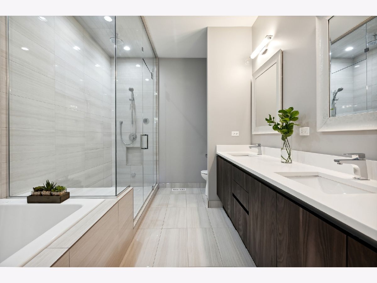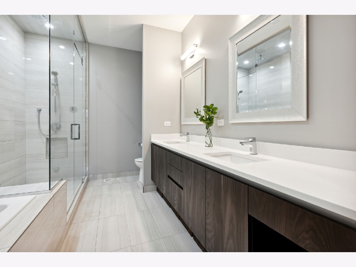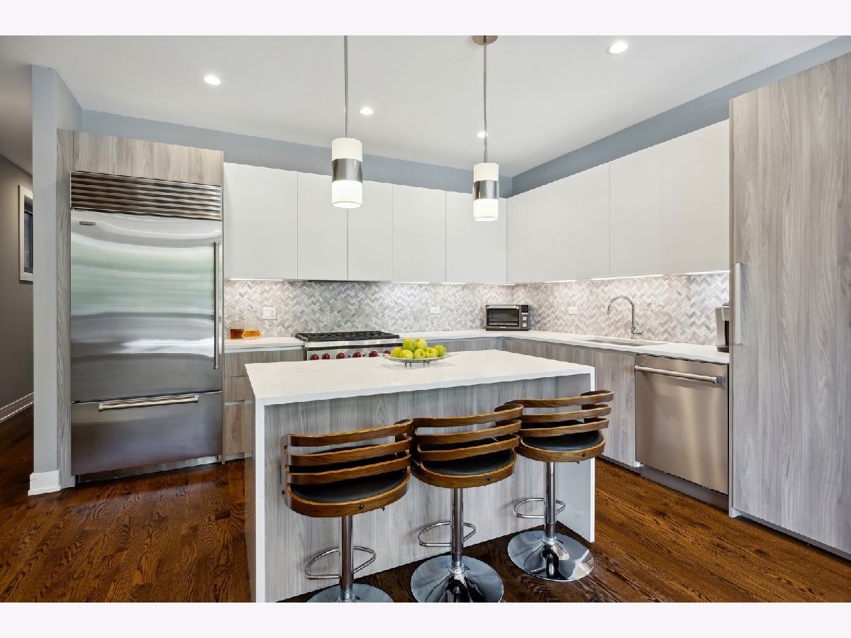 This Beautiful Newer Construction, 3 bed/ 3 Full bath duplex down is located on a tree lined street in East Ukrainian Village offering Sleek modern finishes, open floor plan, Bright natural light, tall ceiling height and plenty of space to entertain effortlessly on both floors. The kitchen features High End, Stainless Steal appliances Subzero/Wolf, Quartz countertops, White Italian cabinetry, large island opening up to your living space that can be used as pure dining or dining/living since you have a full spacious living space including heated floors, fireplace with full wet bar/ wine fridge downstairs. Hardwood flooring and custom closets throughout, ample storage. Laundry room with side by side washer/dryer. This unit offers 2 outdoor spaces, including a Large PRIVATE Garage Rooftop Deck with a Custom Pergola. Immaculate Condition, Garage parking and extra storage included..Welcome home!
