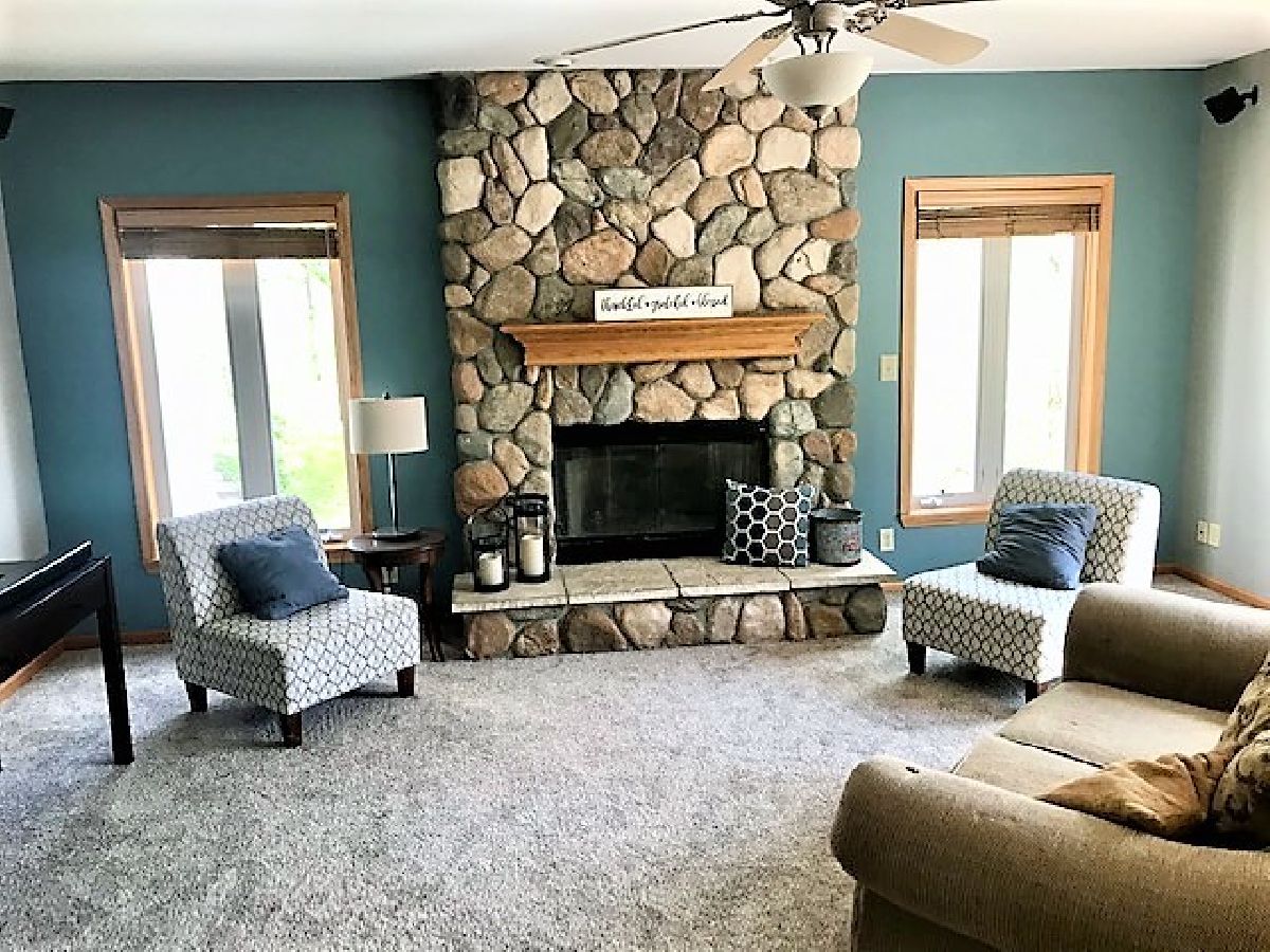 Nature lovers dream. Large 2-story home on 4.6 acres with over 300 feet of Center lake lakefront. Center lake is a full recreational lake with great boating, fishing, or just a relaxing cruise. 100 yard pier through the wetlands to the waters edge. End of the pier has a shed, electric outlets, and kayak/canoe storage section. Enjoy beautiful sunsets off of the second floor deck or one of the 2 concrete patio areas. New firepit area and landscaping for summer fun or cool nights. 4 bedroom home with full partially finished walkout basement. Large master bedroom with 2 closets and private bath with shower and whirlpool corner tub. 3 car attached garage with xtra large side driveway for boat, cars, or Rv storage. Beautiful wooded lakefront setting with plenty of privacy