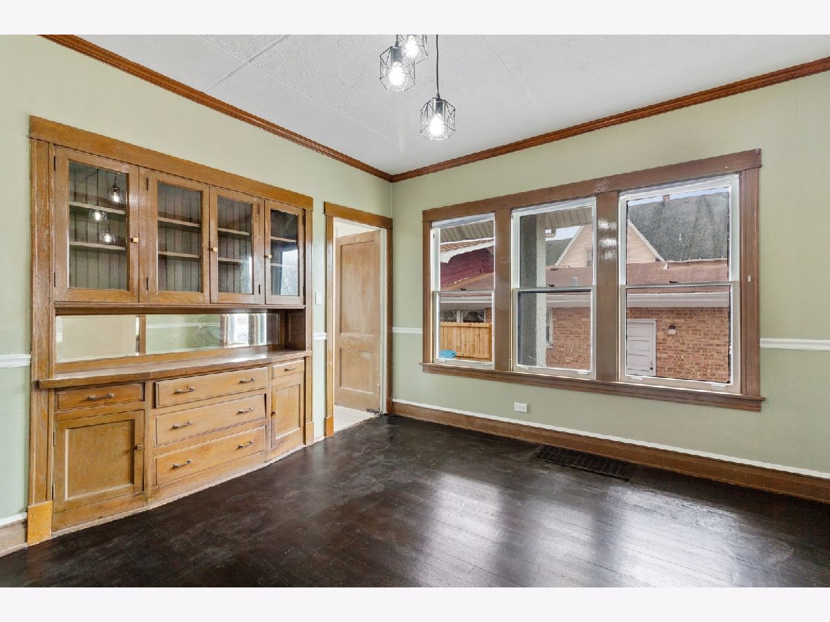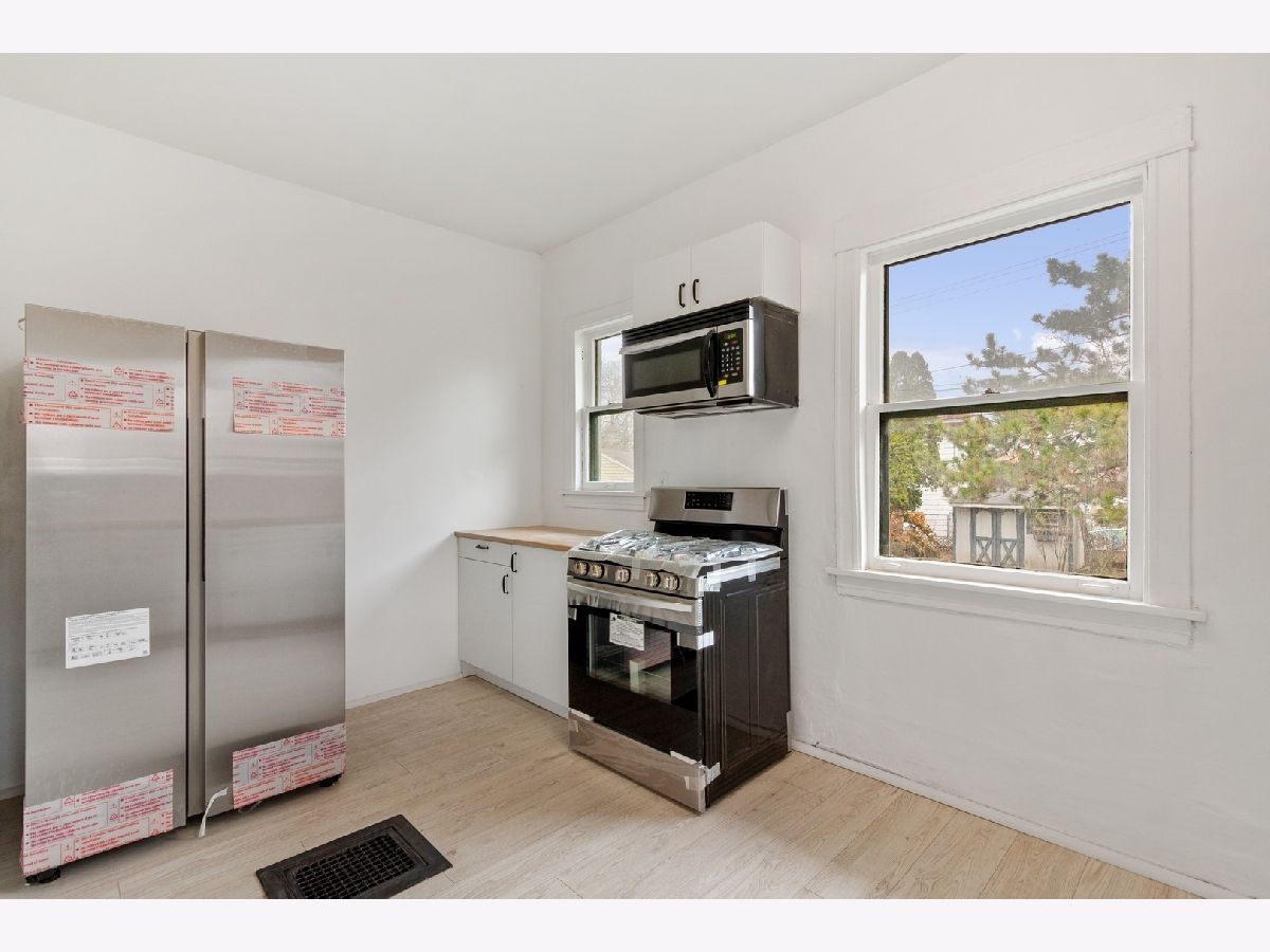You do not want to miss this gorgeously rehabbed Maywood home! Walking in the front door you are welcomed to an open floor plan with adjacent dining and living rooms, and the entire main floor boasting stunning newly refinished hardwood floors throughout. Just off the living room is a bonus room that would make a perfect office or den. An elegant built-in wooden cabinet in the dining room adds a little bit of extra character. The completely remodeled kitchen includes brand new stainless steel refrigerator, oven, microwave, and sink. Additionally, there are all new light and bright white cabinets, new countertops, and new waterproof laminate flooring. The kitchen looks out on to an expansive completely relandscaped back yard, which is fully fenced, and also has a shed for extra storage. Two generously sized bedrooms with new lighting in both rooms and closets both getting plenty of natural light. The entire interior of the home has been freshly painted, with extensive electric done to add extra lighting in all rooms. All new light fixtures throughout gives the home a modern feel without losing any charm. Completely remodeled full bath with new vanity, light fixtures, porcelain tile flooring, and subway tile shower. The spacious walk-out basement has been freshly painted, with new washer and dryer hookups, new expansion tank for the water heater, water meter valve, and piping. The attic has been framed and has all new electrical lighting and outlets, and could easily be finished for additional bedrooms and living space. Other news include an updated front roof, plumbing, and driveway repair. This home is on a quiet street, and in a fabulous location just minutes from local restaurants, forest preserves, several hospitals, schools, and easy access to highways, bus, CTA, and Metra lines. There is ample parking in the driveway, and a huge front porch to enjoy a quiet evening outside. Do not miss the opportunity to make this home yours!!