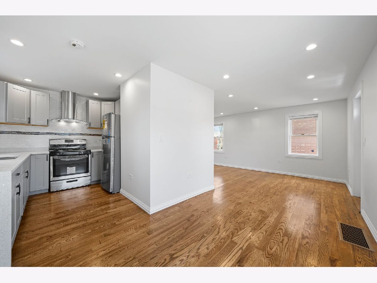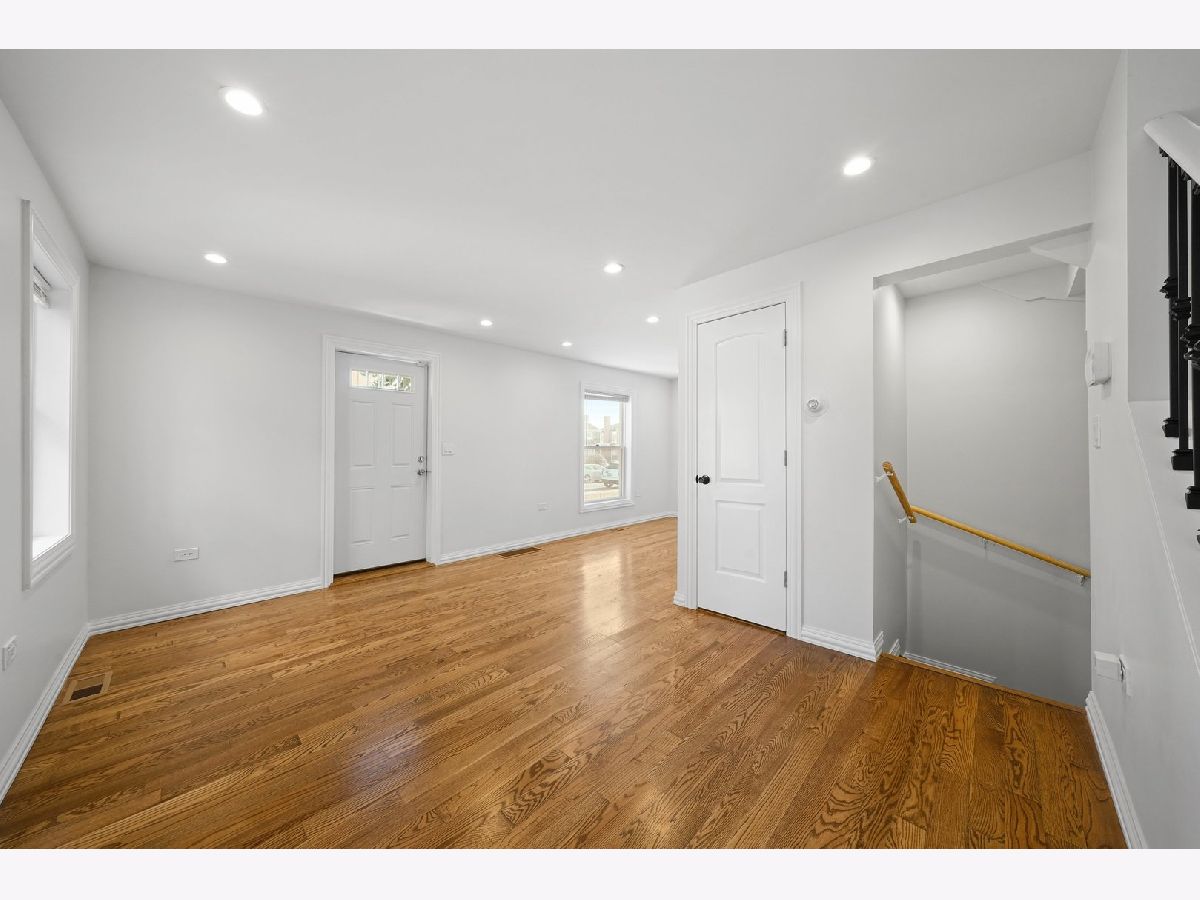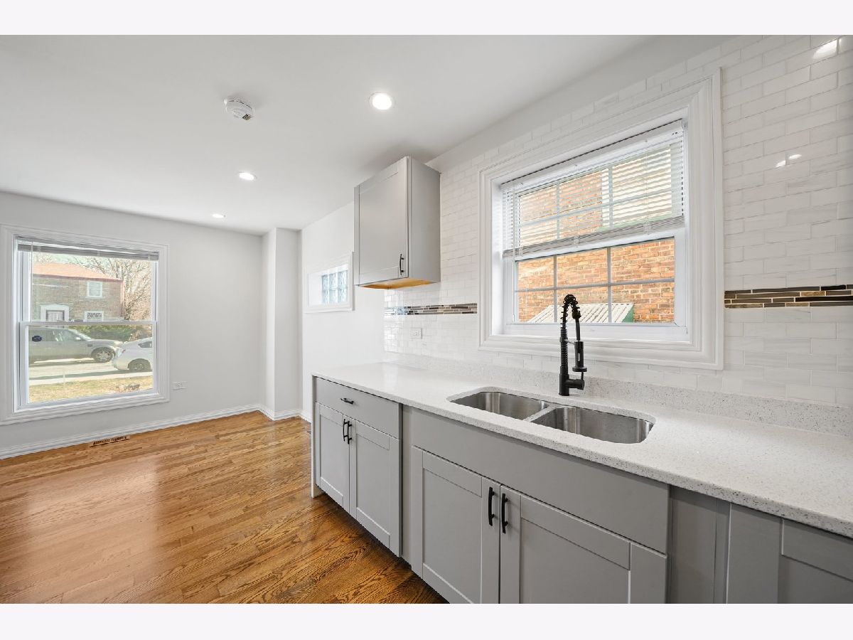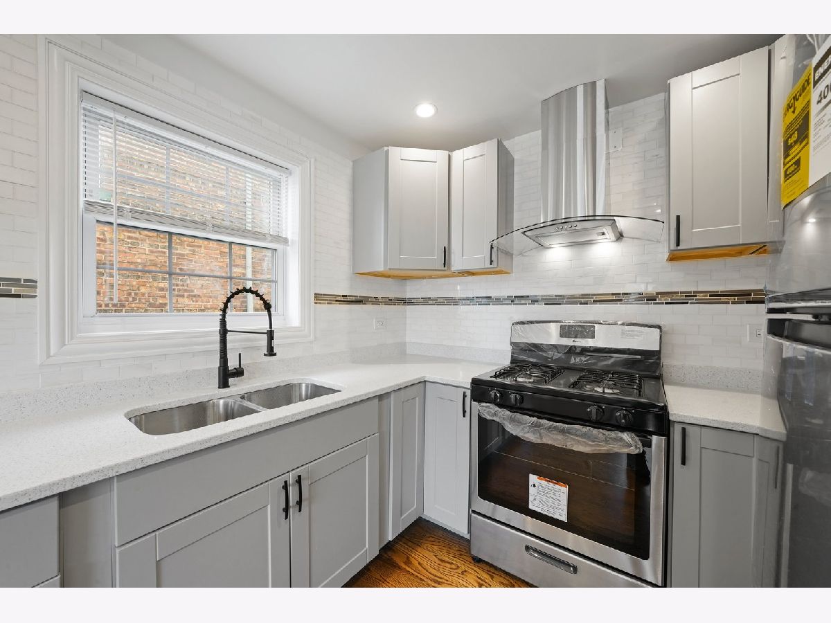 This Georgian has meticulously rehabbed (ALL NEW) with all the permits, architectural drawings and beautiful finishes. As you walk in the natural sunlight welcomes you to the living room that opens to the dining room and kitchen with gleaming hardwood floors. The kitchen is a dream with beautiful cabinets, white granite countertops that waterfalls to the side of the end cabinet, a backsplash, all new light fixtures, appliances, and much more! The 2nd floor features 2 spacious bedrooms with hardwood floors and a full bathroom that was also completely remodeled. The basement is all open with plenty of space for a family room or maybe the main bedroom suite plus plenty of storage and the laundry room. The mechanical room has the furnace and the water heater. The backyard has privacy fence and ready for your ideas. The AC condenser will be installed before closing. No corners were cut her and this is practically a new home since EVERYTHING was completely redone except for the brick but some tuckpointing was done and all the steel lentels above all new windows were installed. Please see the document until additional information for all the work that was done. Make your appointment today! Truly the perfect starter home.