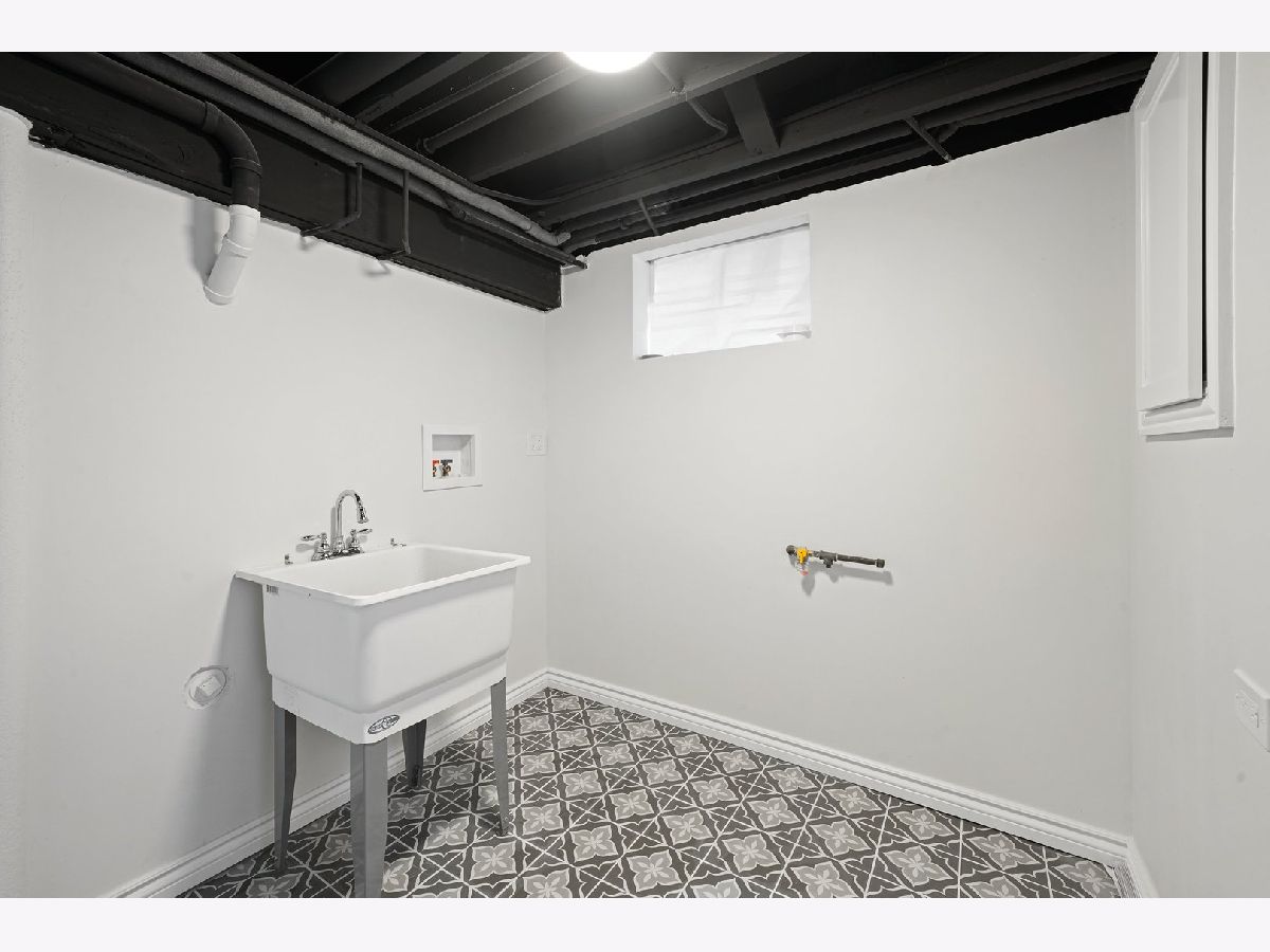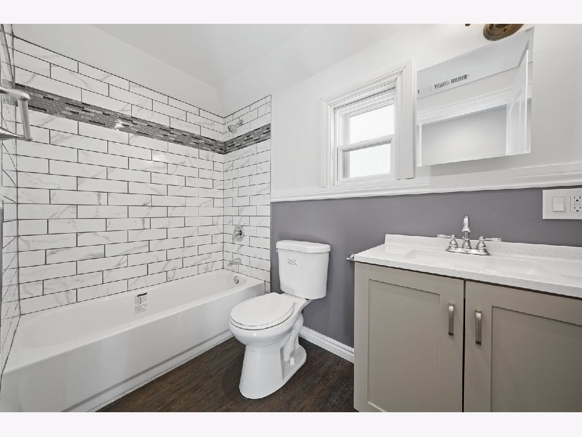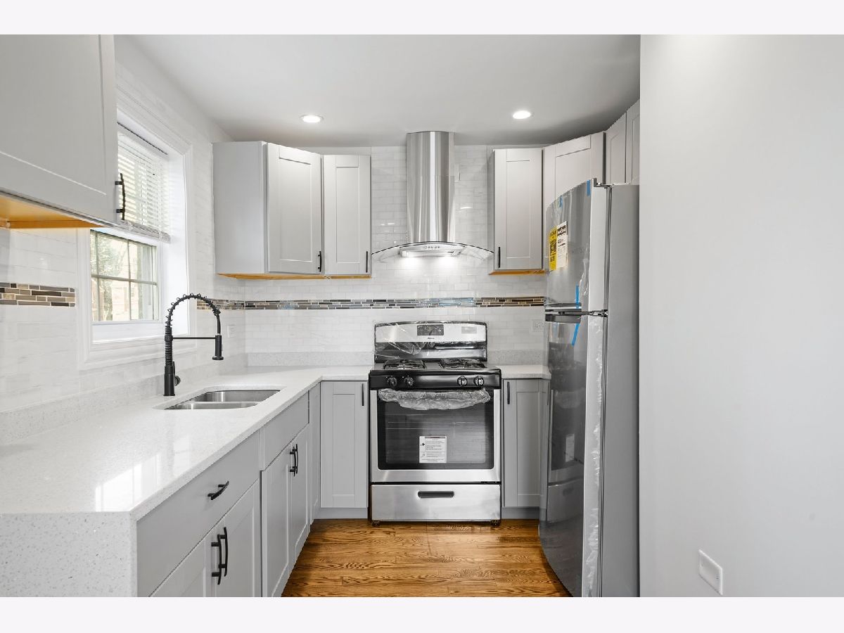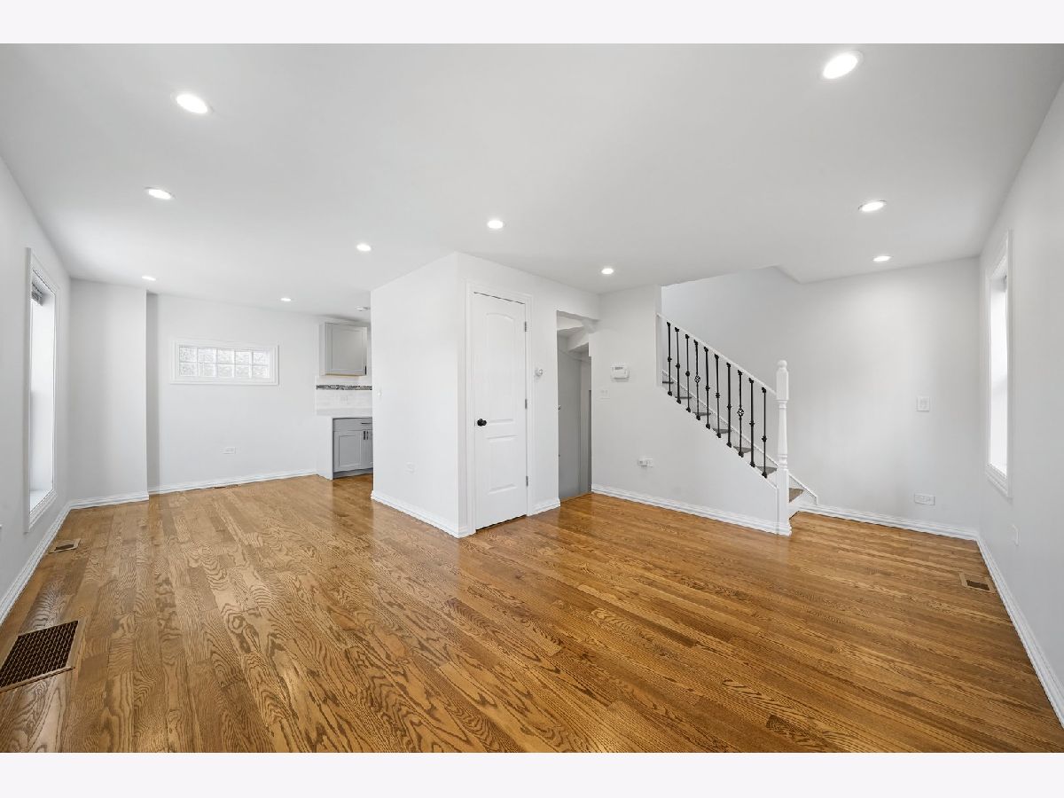 This Georgian has meticulously rehabbed (ALL NEW) with all the permits, architectural drawings and beautiful finishes. As you walk in the natural sunlight welcomes you to the living room that opens to the dining room and kitchen with gleaming hardwood floors. The kitchen is a dream with beautiful cabinets, white granite countertops that waterfalls to the side of the end cabinet, a backsplash, all new light fixtures, appliances, and much more! The 2nd floor features 2 spacious bedrooms with hardwood floors and a full bathroom that was also completely remodeled. The basement is all open with plenty of space for a family room or maybe the main bedroom suite plus plenty of storage and the laundry room. The mechanical room has the furnace and the water heater. The backyard has privacy fence and ready for your ideas. The AC condenser will be installed before closing. No corners were cut her and this is practically a new home since EVERYTHING was completely redone except for the brick but some tuckpointing was done and all the steel lentels above all new windows were installed. Please see the document until additional information for all the work that was done. Make your appointment today! Truly the perfect starter home.
