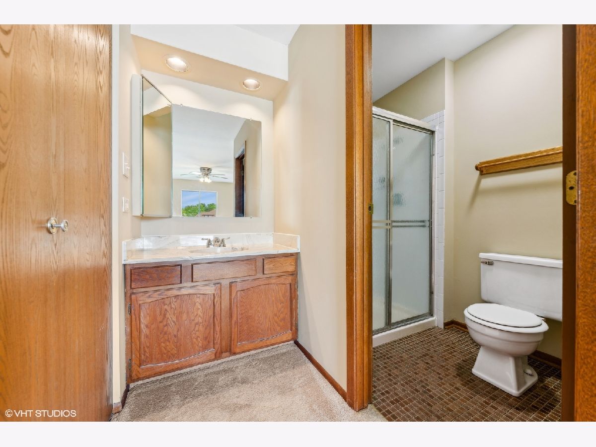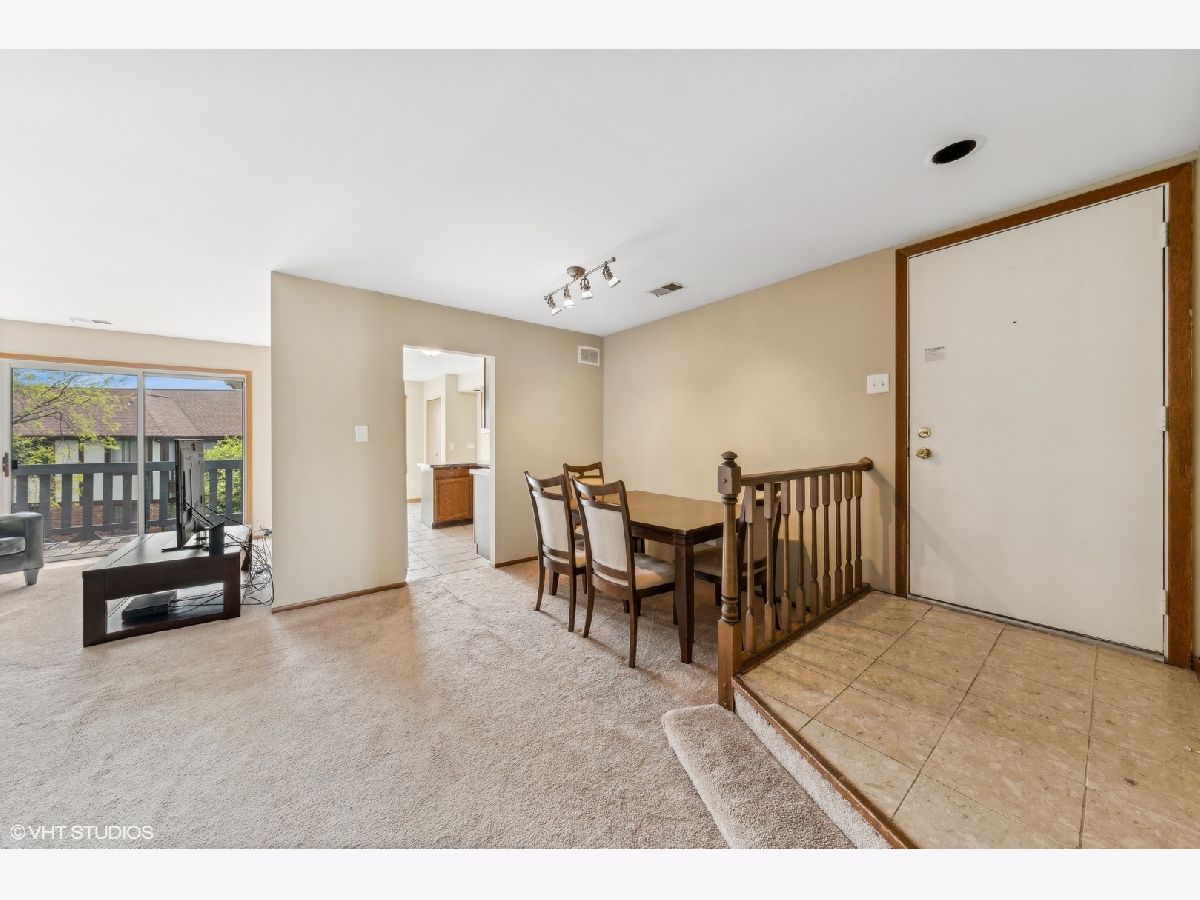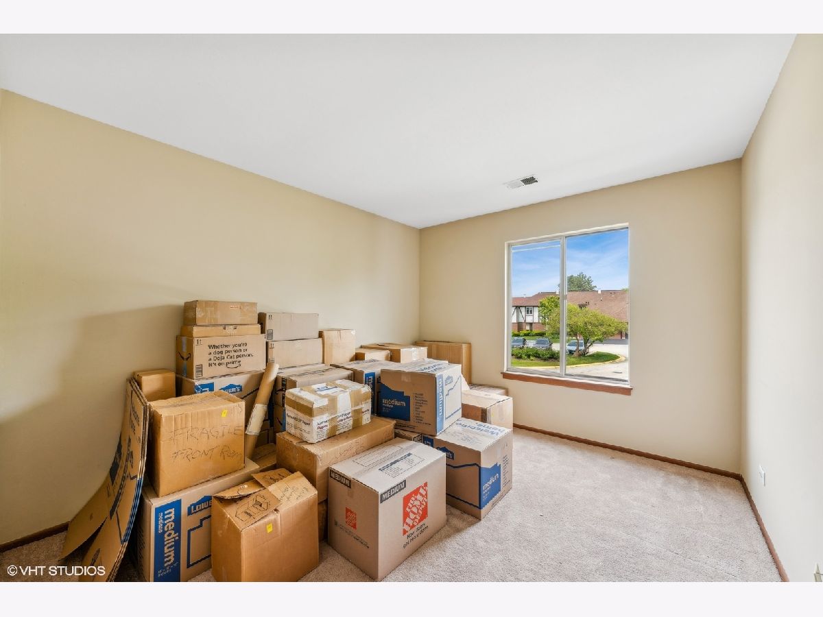 If affordability, security, and fun had a baby, this condo would be it. Located in the heart of Orland Park but tucked into a residential neighborhood, this two-bedroom, two-bath, second-floor, walk-up condo is just the right fit for you. Charming Manor Homes of Somerset is a residential condo association featuring country club amenities with an affordable price tag. A gated private pool and tennis courts are included in the monthly assessments. The condo is located in a four-unit building with a security door and vestibule for deliveries of any kind, ensuring your safety and peace of mind. Pull into your private 1-car garage and enter the secured building without ever being outside locked doors. Extra parking outside the garage and in the cul-de-sac, making it perfect for guests. Upstairs, enter into a well-appointed unit with neutral decor and abundant light. It features open dining and living room space with a corner gas fireplace, sliding patio doors from the living room and kitchen to a deck overlooking green space below. The galley kitchen has plenty of room for an eat-in area, updated ceramic tile, and a pantry for extra storage. Other perks include an in-unit laundry with a stacked washer and dryer but has room for full-size side-by-side W/D. It is pet-friendly and does not allow rentals.