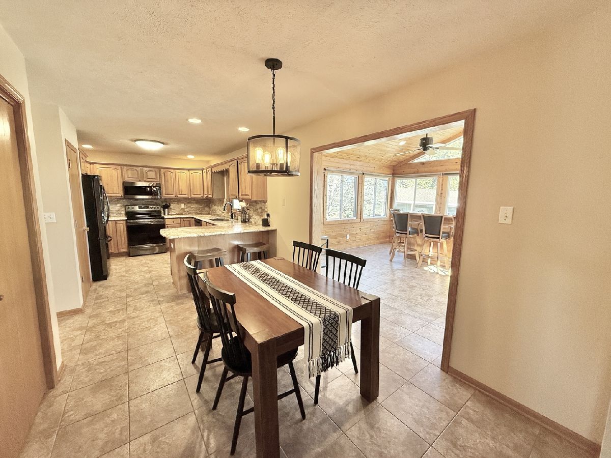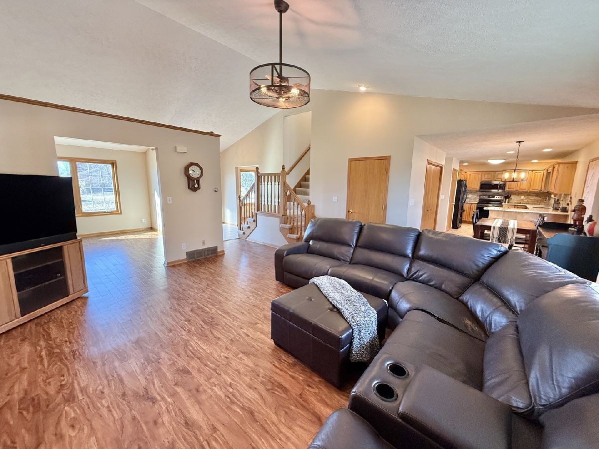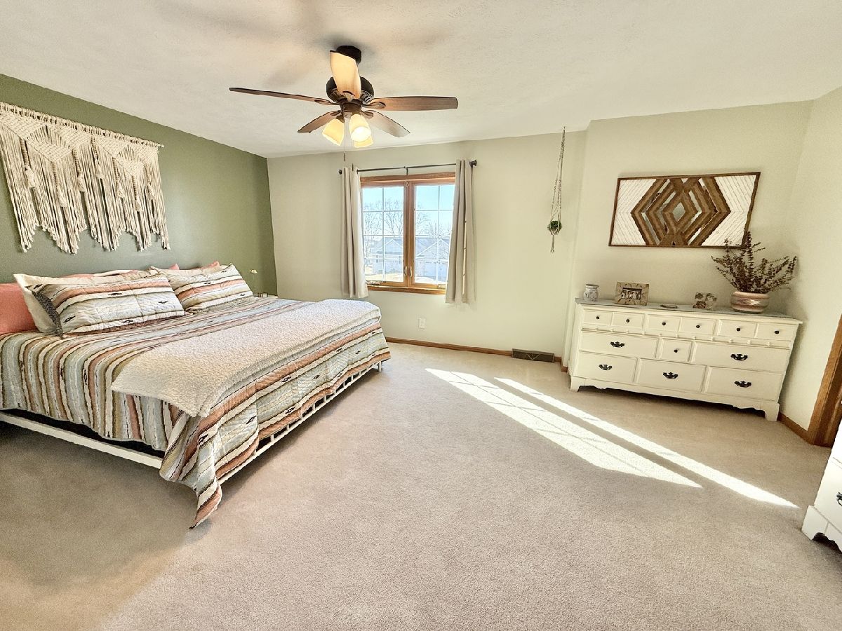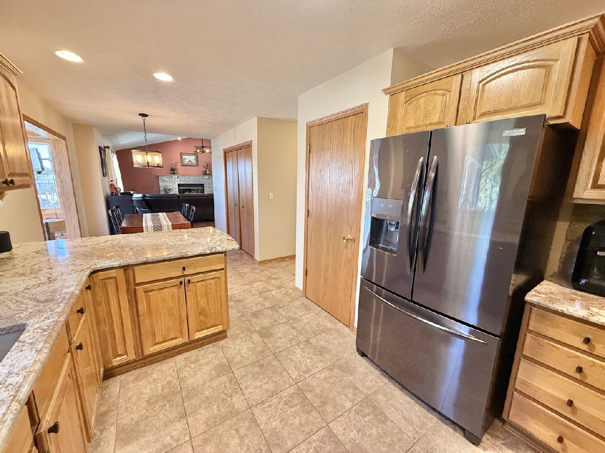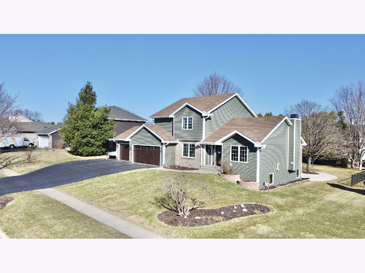 Welcome to this stunning two-story, 4-bedroom, 2.5 bath home nestled in Winnebago's highly desirable Greenlee Estates neighborhood! This beautifully maintained residence boasts more than 3,000 sq ft with an inviting open-concept layout with modern finishes throughout. Large foyer with dining room on one side and formal living room on the other with opening that leads into family room with vaulted ceiling & a gas fireplace. The updated eat-in kitchen is a chef's dream, featuring ample cabinetry, granite countertops, stacked stone backsplash, sleek black stainless-steel appliances, breakfast bar & 2 pantries. Unwind in the charming knotty pine sunroom with vaulted ceiling, recessed lighting with patio doors on both sides; one leading out to a concrete patio & small, fenced area & the other out to a deck w/ natural gas hook-up for a grill & stairs down to a stamped patio area & a 16' x 20' storage shed in the backyard for all your outdoor needs. Upstairs there are 3 bedrooms including the primary with walk-in closet & brand-new bathroom in 2023 with blk vanity, Quartz top & Onyx shower system with dual showerheads. The other 2 bedrooms share the 2nd full bath. The finished lower level with partial exposure offers a huge game room with stylish bar & plank flooring, brand new carpet in living room area with surround sound & the 4th bedroom + additional space for home gym or office. 3.5 car insulated & drywalled garage with TSR concrete coating in 2019. Other updates include Roof 2020, siding, gutters, insulated garage doors with windows, AC, furnace & windows 2021, all light fixtures/fans 2019, Commerical grade vinyl plank flooring throughout the main floor. 1st floor laundry & Winnebago schools!!