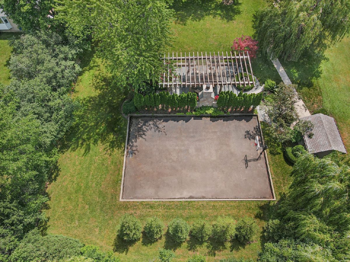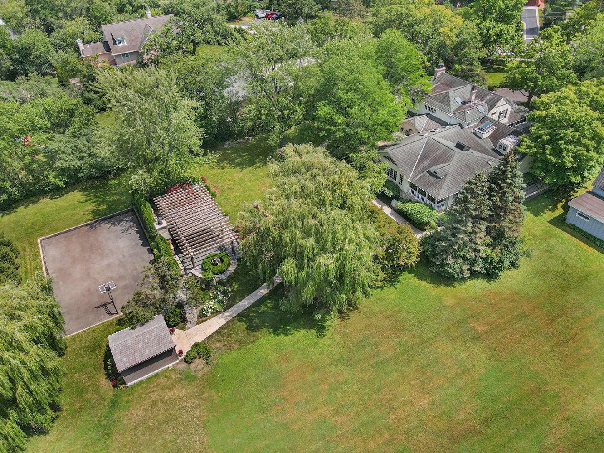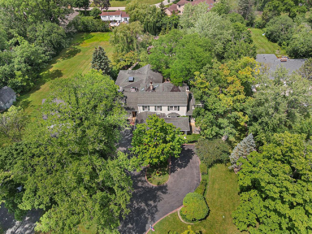 This rare all-American gem which has been featured many times in design magazines is situated on a spectacular setting and oozes with immense curb appeal and charm like no other. Spend warm summer evenings on the front porch rocking chair with an iced tea whilst reading your favorite book in the shade. The home itself is a blend of pure Midwest colonial architecture with modern sensibilities. Elegant Parlor Room with arched alcove bookshelves, elegant fireplace and bay window overlooks the front garden. Stately Dining Room fit to receive the Queen with detailed ceiling moldings, timeless decor and built-ins. Channel your inner Julia Child in the Kitchen and put your culinary skills at work! Loads of cabinetry, Thermador 6 burner range with griddle and vent hood, three ovens, warming drawer, SubZero refrigerator, island with prep sink and seating, Asko dishwasher, spacious counters, pantry closet, desk planning area, huge Breakfast Room and opens conveniently to the every day hang out - the Family Room. Grand Great Room with cathedral beamed ceilings, gas fireplace, arched windows, Game table area and access to the backyard. Main floor bedroom en suite perfect for in-law, nanny or even optional Primary Bedroom and complete with fireplace, walk-in closet access to balcony and bathroom with dual vanity sinks, shower and jetted tub. The Office is cleverly tucked away from the activities of everyday life and is adorned with custom built-ins and triple-wide crown molding. Dedicated Laundry Room, Butlers Pantry, Powder Room & Mud Room complete the main level. Secondary Owners Suite on the 2nd floor with exposed aged wood, reading nook with skylights and built-ins and en suite with double vanity sinks and separate water closet. Jr Suite with walk-in closet. Two additional bedrooms with generous closet space share the Hall Bath. Vast Lower Level awaits your design ideas and is ripe for just about anything you would want to create. Nestled on over an acre the exterior living spaces are truly unique and amazing featuring huge terrace, basketball court, massive stone patio with pergola & outdoor fireplace, walkways, professionally landscaped throughout, shed and outdoor lighting. Other highlights include: detailed trim work and built-ins throughout, leaded glass front door, skylights, two car garage, zoned HVAC, irrigation system, back up generator, beautiful circular driveway and more! Check out 3D tour & video!