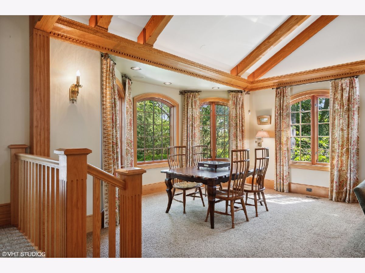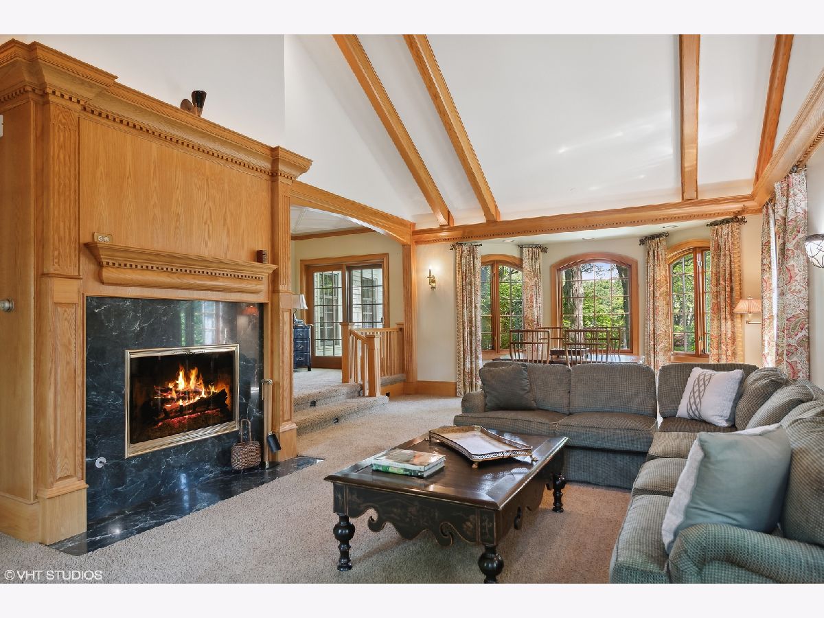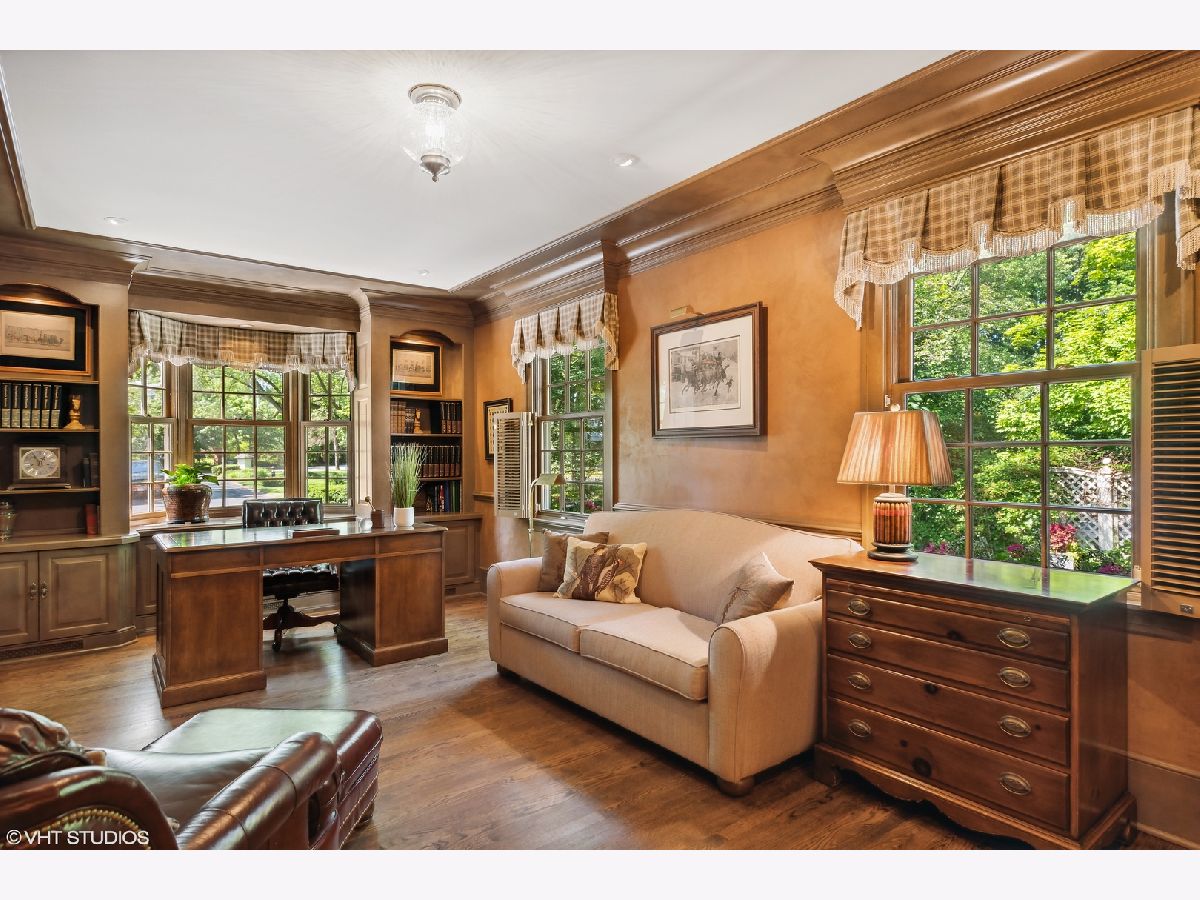 This rare all-American gem which has been featured many times in design magazines is situated on a spectacular setting and oozes with immense curb appeal and charm like no other. Spend warm summer evenings on the front porch rocking chair with an iced tea whilst reading your favorite book in the shade. The home itself is a blend of pure Midwest colonial architecture with modern sensibilities. Elegant Parlor Room with arched alcove bookshelves, elegant fireplace and bay window overlooks the front garden. Stately Dining Room fit to receive the Queen with detailed ceiling moldings, timeless decor and built-ins. Channel your inner Julia Child in the Kitchen and put your culinary skills at work! Loads of cabinetry, Thermador 6 burner range with griddle and vent hood, three ovens, warming drawer, SubZero refrigerator, island with prep sink and seating, Asko dishwasher, spacious counters, pantry closet, desk planning area, huge Breakfast Room and opens conveniently to the every day hang out - the Family Room. Grand Great Room with cathedral beamed ceilings, gas fireplace, arched windows, Game table area and access to the backyard. Main floor bedroom en suite perfect for in-law, nanny or even optional Primary Bedroom and complete with fireplace, walk-in closet access to balcony and bathroom with dual vanity sinks, shower and jetted tub. The Office is cleverly tucked away from the activities of everyday life and is adorned with custom built-ins and triple-wide crown molding. Dedicated Laundry Room, Butlers Pantry, Powder Room & Mud Room complete the main level. Secondary Owners Suite on the 2nd floor with exposed aged wood, reading nook with skylights and built-ins and en suite with double vanity sinks and separate water closet. Jr Suite with walk-in closet. Two additional bedrooms with generous closet space share the Hall Bath. Vast Lower Level awaits your design ideas and is ripe for just about anything you would want to create. Nestled on over an acre the exterior living spaces are truly unique and amazing featuring huge terrace, basketball court, massive stone patio with pergola & outdoor fireplace, walkways, professionally landscaped throughout, shed and outdoor lighting. Other highlights include: detailed trim work and built-ins throughout, leaded glass front door, skylights, two car garage, zoned HVAC, irrigation system, back up generator, beautiful circular driveway and more! Check out 3D tour & video!
