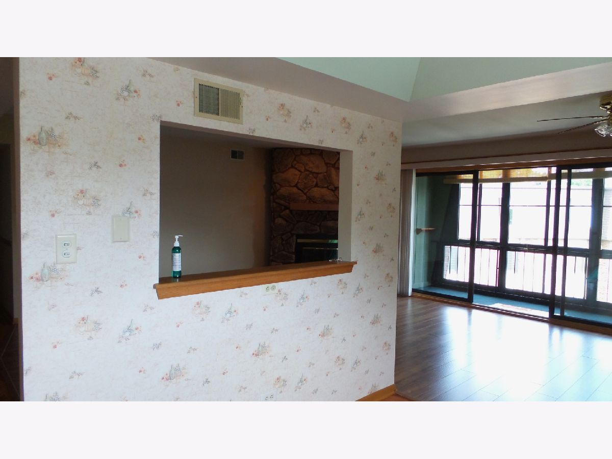 Beautiful Woods Edge third floor condo with fantastic views out every window. The main bedroom features an attached bath and walk-in closet. The enclosed balcony features a pond view, storm windows, fully screened, with two storage rooms. The living room and dining room feature a wood-burning corner fireplace with vinyl wood flooring installed in 2017. The kitchen features hardwood floors and new cabinetry installed in 2006. New furnace in 2011, new water heater installed in 2018. Laundry in unit. One car garage and additional parking in the parking lot. All appliances stay.