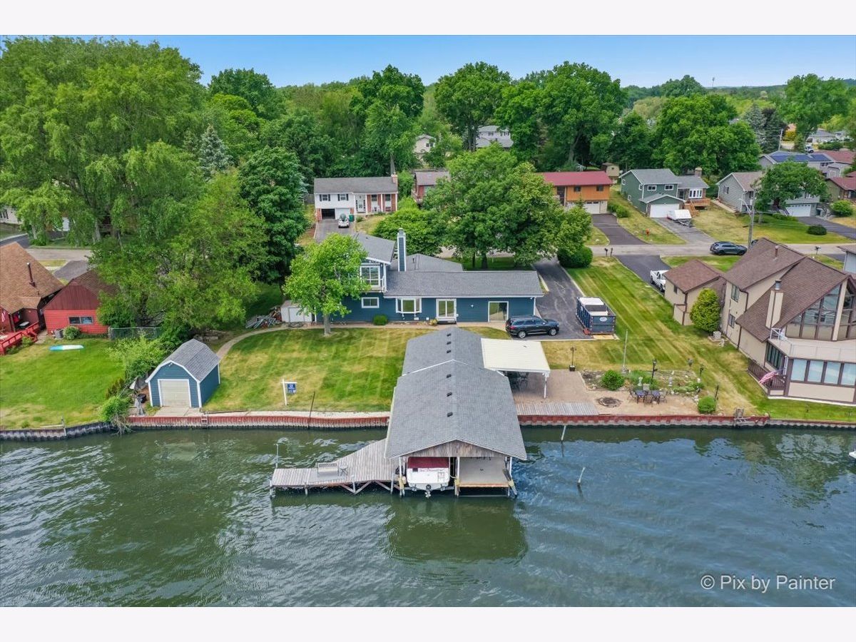 GORGEOUS WATERFRONT PROPERTY AVAILABLE! Located in a No Wake Zone on the channel between Pistakee and Nippersink Lake (Chain O'Lakes) and less than 50 feet away from your back door, this spacious 4 Bed, 2.5 Bath home sits on a half-acre property with mature trees and views of the lake that will take your breath away! The main floor showcases a warm and welcoming living room, recreation room, family room, dining room, kitchen with all stainless-steel appliances, and 3 bedrooms with all hardwood floors and incredible views of the water. The second floor features a huge master bedroom and En-Suite with stunning views from the sliding doors that lead you to your own private balcony. The second floor also includes an additional room that could be used as an office space or walk in closet. The desirable boat house has an inviting Florida Sunroom, Sauna, Shower Room, Workshop, and Boat Dock with a large concrete pier leading out to the lake. The backyard also offers a brick paver patio with a built-in firepit that is perfect for entertaining. This home also includes an attached 3-car garage with added parking spaces, 2 driveways, water irrigation system, and 2 sheds (1 off the lake with a lift for jet-skis). Recent updates to home include siding and roof (2017), and tinted windows on lake side of house. This home has over 2500sf home of living space and is waiting for you to make it your home! Come see this beautiful property!