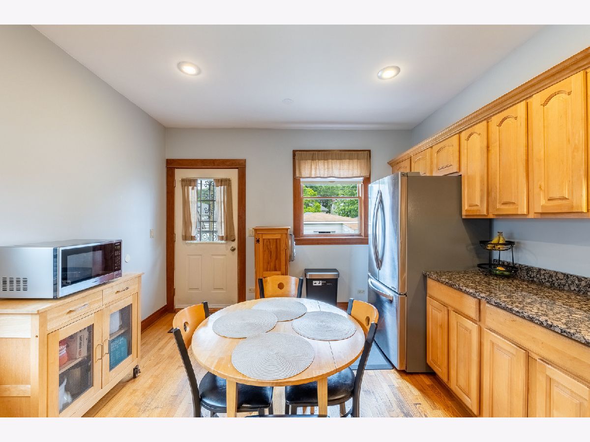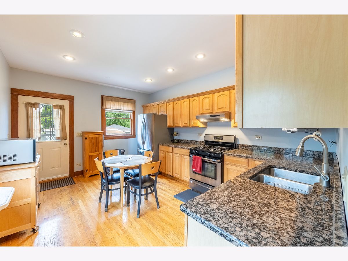 3BD + den/office or possible 4th BD; 2BA; unfinished basement; beautiful natural wood in LR & DR; built-in buffet in DR; true eat-in kitchen with light oak cabinets, granite countertops and stainless steel appliances; flooded with light from Southern exposure; 2-car garage, plus tandem parking; nice size yard for gatherings or entertaining. Great South Oak Park location, walk to everything; close to schools; Blue line "L"; restaurants; grocery store; bakery; custard shop, recreational parks and pool.