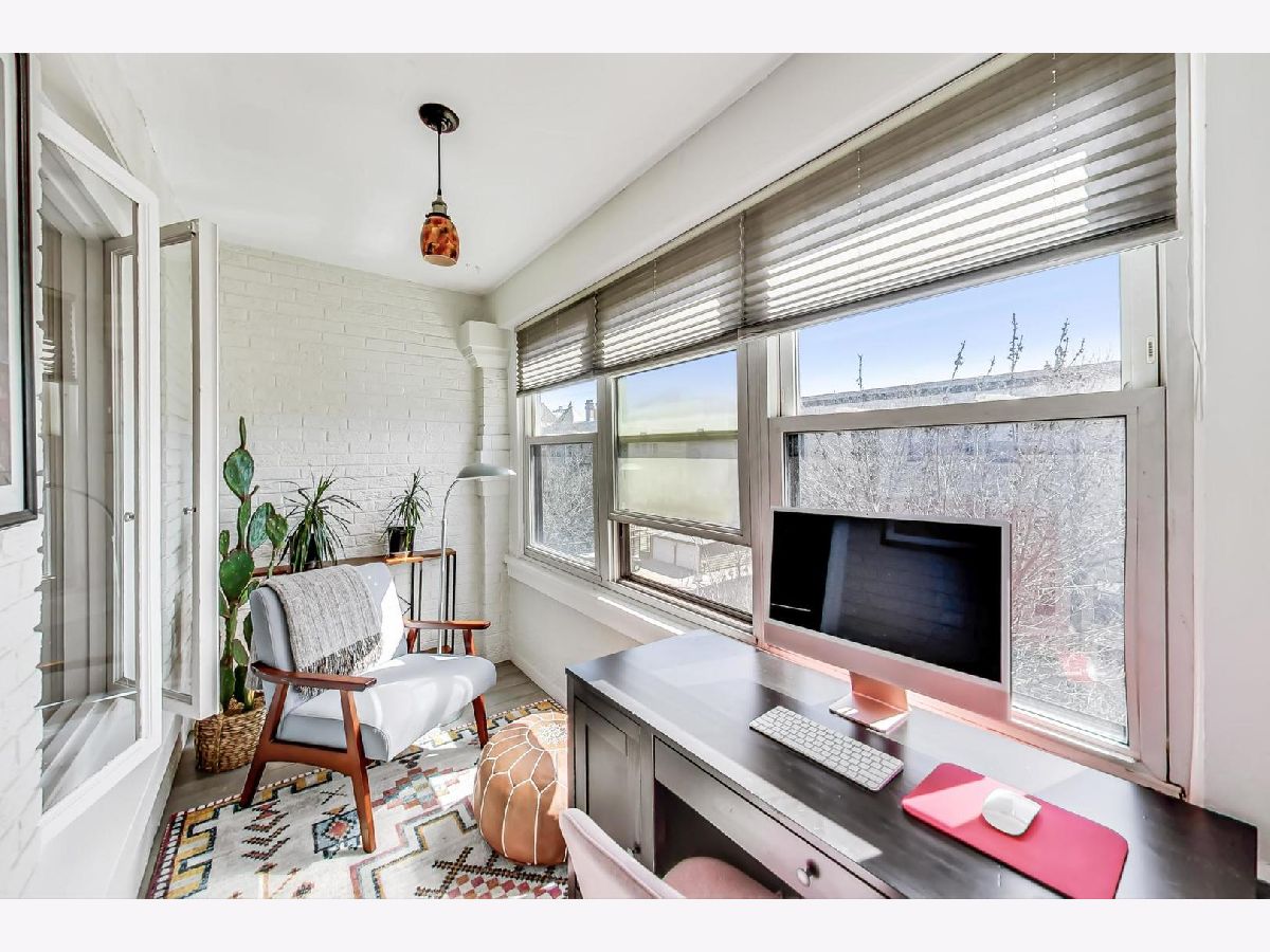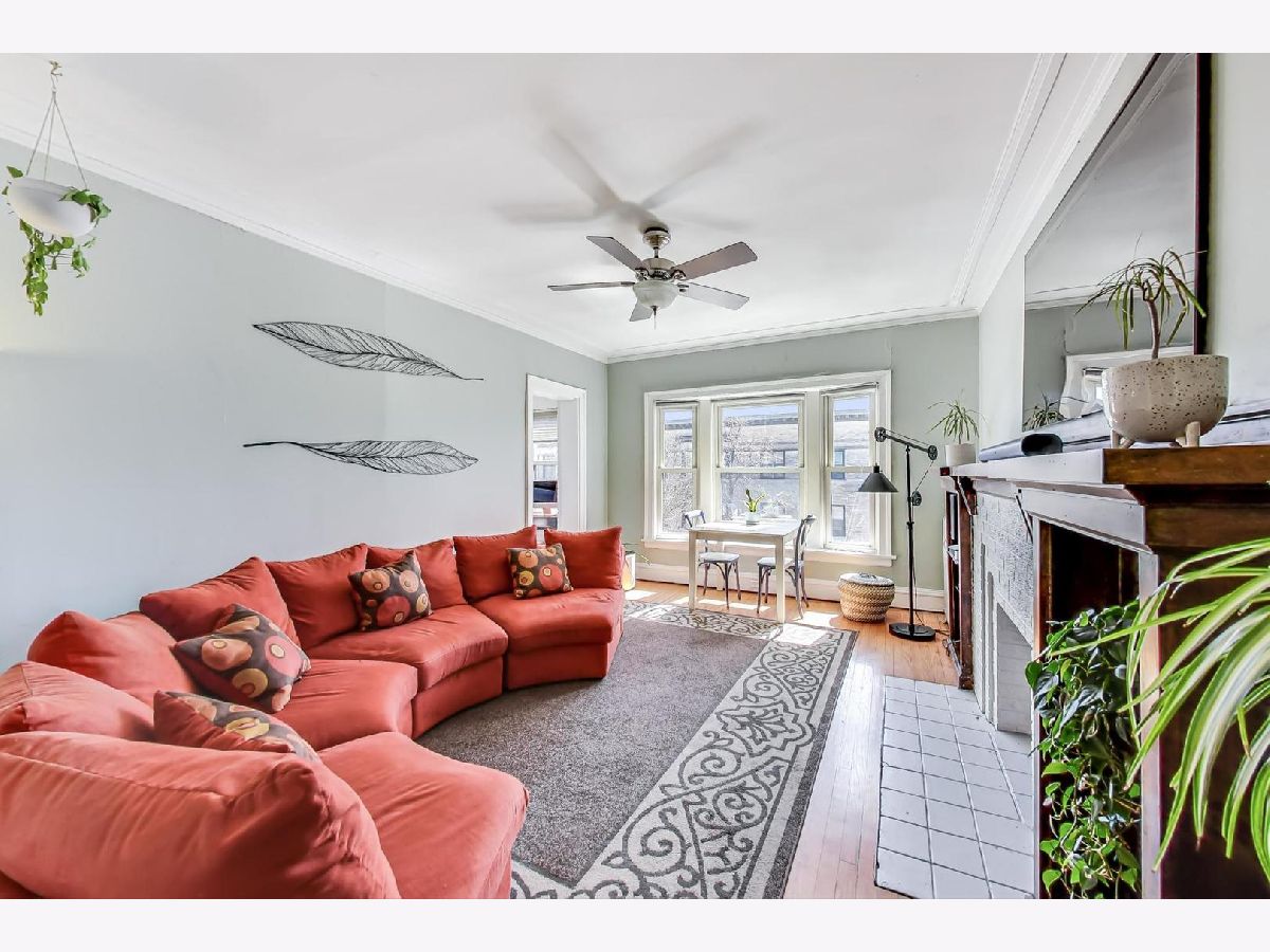 Welcome home to your charming, 2 bedroom + den in the highly desirable Lake View community! Gorgeous original moldings, hardwood floors throughout, high ceilings, original fireplace, and built-in cabinet and bookcases are just a few of the remarkable features. Located off the front living area, the sunroom is a perfect place to enjoy a book or work from home! With both south and north sun exposure, you are sure to have plenty of natural light throughout the day! The back terrace looks out over a wide, manicured common area perfect for relaxing with friends or neighbors. Pet friendly, no In Unit W/D restrictions, laundry on site, a private 6x10 storage unit, and off-site parking available for rent! Both Wrigley field and CTA Addison stop are quick 5 minute walk. Lakefront trail, parks, and Lake View's impressive restaurant scene are all within walking distance. Unit is rental friendly with a short waitlist.