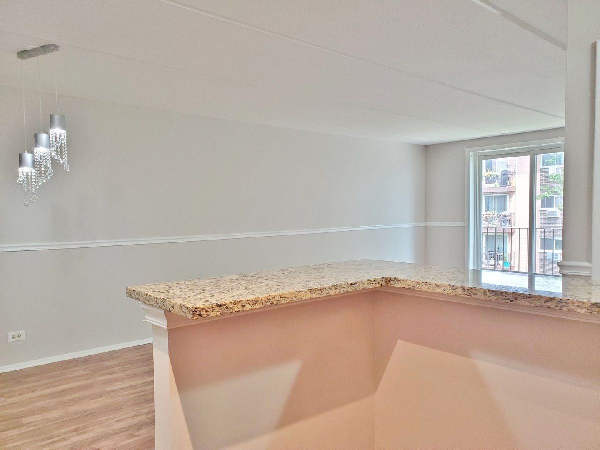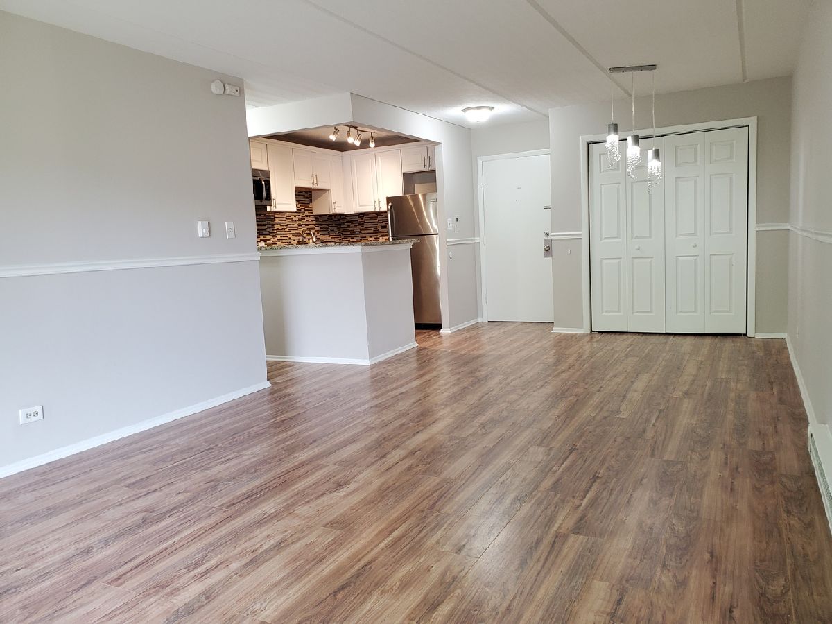 COMPLETELY REMODELED OPEN FLOOR PLAN * 1 Bedroom and 1 Bath Condo within WALKING DISTANCE to Randhurst Shopping Mall, Movie Theater, Restaurants, Schools, Park Districts and Pool * Rob Roy Golf Course JUST Down the Street * Elevator Building * Entire Condo was Redone in 2017 * Completely Painted in All Grey Colors * Wood Laminate Flooring Throughout * ALL Newer Light Fixtures * ALL White Doors, Chair Railings & Trim Throughout * Large Combo Living & Dining Rooms with Dining Room Crystal Light Fixture * Step Out to a Large Balcony from the Living Room * OPEN CONCEPT KITCHEN with Half Wall Removed to View Living & Dining Rooms * UPDATED Kitchen with TALL White Cabinets, Brushed Nickel Hardware, Granite Countertops with Breakfast Bar, Glass Tile Backsplash, Undermount Sink with Pull Out Faucet & Stainless Steel Appliances * Bedroom Off Hallway with Double Door Closet * Bathroom with Large Ceramic Tile Floors & Tub Surround, White Vanity with Granite Top, Newer Faucet, Light Fixture & Mirror * Coin Laundry & Storage Room in Basement * Why Rent When Buying Seems So Much Better & Less Costly Especially in this Area?? *