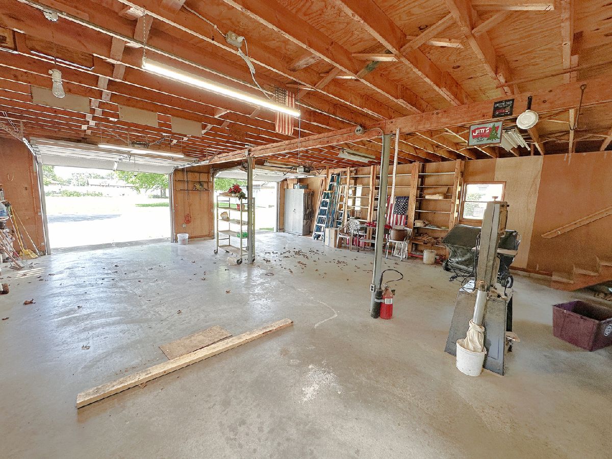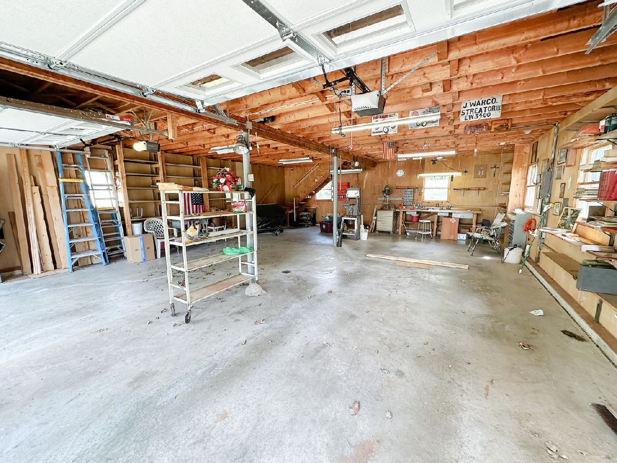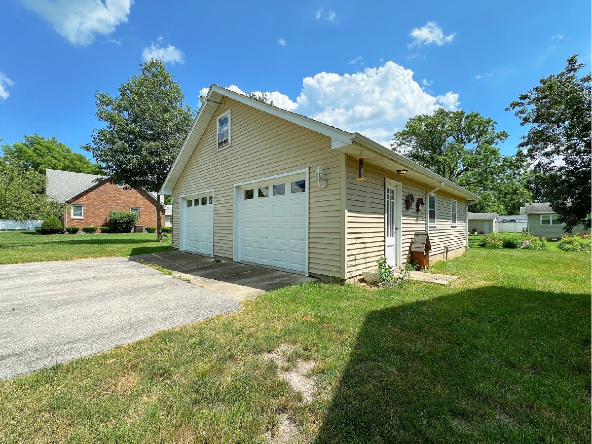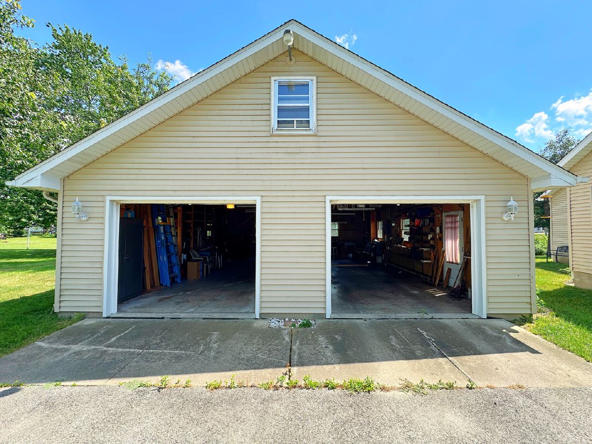 Well-maintained 2 bedroom, 2 bathroom home nestled on a generous 0.37-acre lot and featuring a standout 4 car garage. A charming covered front porch with composite decking welcomes you in, while a covered side porch offers an additional space to relax and unwind. Inside, you'll find a bright and spacious living room highlighted by a large picture window. The updated kitchen is both functional and inviting, offering abundant oak cabinetry, generous counter space, dedicated dining space, and included appliances. Both bedrooms are generously sized with ample closet space, and the main-level bathroom offers cabinet storage and an updated tub/shower combo. Additional main-level highlights include vinyl windows and practical storage space. The full basement extends the amenities with a second bathroom, laundry area, plentiful storage, and a workbench. The impressive deep 2 bay, 4 car garage is equipped with electricity, shelving, a workbench, newer garage doors, and a floored attic with a full staircase and ready to be finished to your liking. The expansive yard and dual covered porches provide ideal settings for outdoor living and entertaining. Blending comfort, convenience, and versatility, this property is truly a must-see!