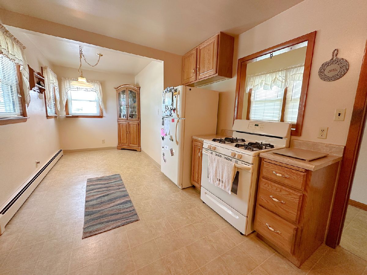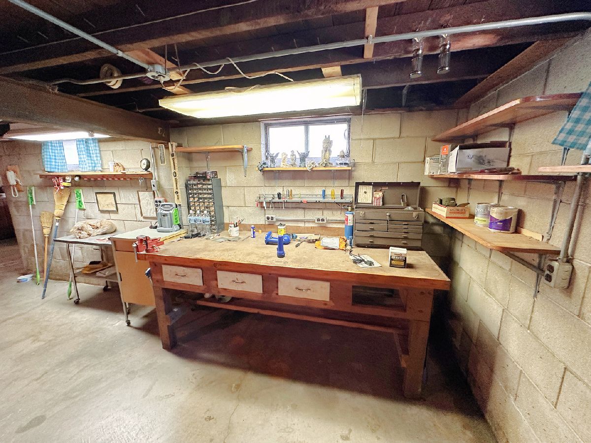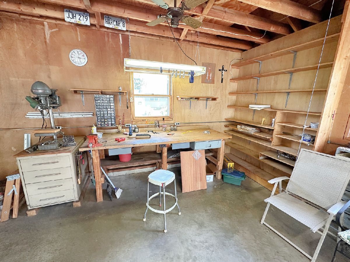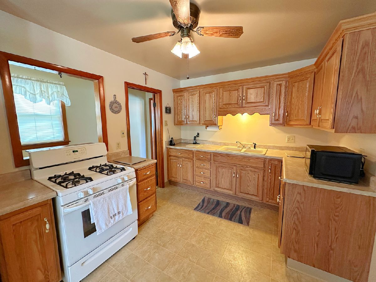 Well-maintained 2 bedroom, 2 bathroom home nestled on a generous 0.37-acre lot and featuring a standout 4 car garage. A charming covered front porch with composite decking welcomes you in, while a covered side porch offers an additional space to relax and unwind. Inside, you'll find a bright and spacious living room highlighted by a large picture window. The updated kitchen is both functional and inviting, offering abundant oak cabinetry, generous counter space, dedicated dining space, and included appliances. Both bedrooms are generously sized with ample closet space, and the main-level bathroom offers cabinet storage and an updated tub/shower combo. Additional main-level highlights include vinyl windows and practical storage space. The full basement extends the amenities with a second bathroom, laundry area, plentiful storage, and a workbench. The impressive deep 2 bay, 4 car garage is equipped with electricity, shelving, a workbench, newer garage doors, and a floored attic with a full staircase and ready to be finished to your liking. The expansive yard and dual covered porches provide ideal settings for outdoor living and entertaining. Blending comfort, convenience, and versatility, this property is truly a must-see!