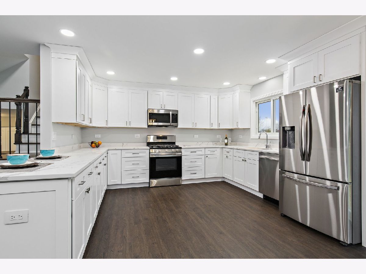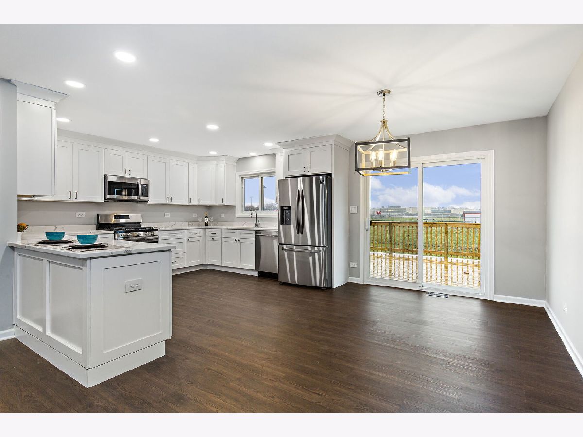 Like a brand new home! Professionally rehabbed in 2020. Beautifully remodeled open floor plan w/ many upgrades. This tri-level is located on a beautiful tree lined street backing up to open land & a playground. All new plumbing, electrical, A/C, windows, doors, & siding. New flooring throughout w/ luxury vinyl planks, some hardwood, & new carpeting in the bedrooms. Foyer w/ beautiful front door featuring side lights. Bright living room featuring a huge bay window seat. Gorgeous kitchen w/ white shaker cabinets, quartz counter-tops, SS appliances, upgraded sink, & breakfast bar. Dining room leads out to a brand new deck. All the bathrooms have been remodeled w/ beautiful finishes. Upstairs bathroom w/ double bowl sinks. All bedrooms upstairs w/ ceilings fans. Large family room w/ sliders out to the new patio. Brand new Laundry room, 4th bedroom, & half bath were all added to the floor plan. 2 car garage w/ new doors & opener. Furnace is three years old. Roof is two years old. Fenced in yard. Front porch. Professionally landscaped. Enjoy all the amenities Palatine has to offer. Walk to the schools. Get ready to be Wowed! You are going to fall in love with this home!
