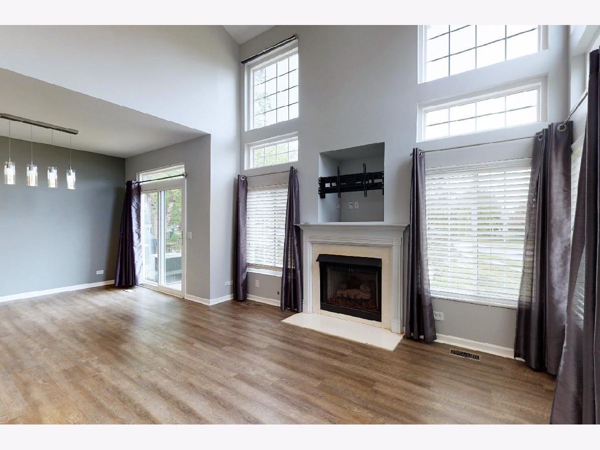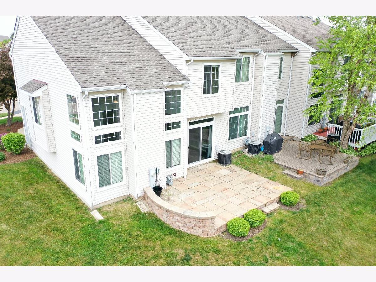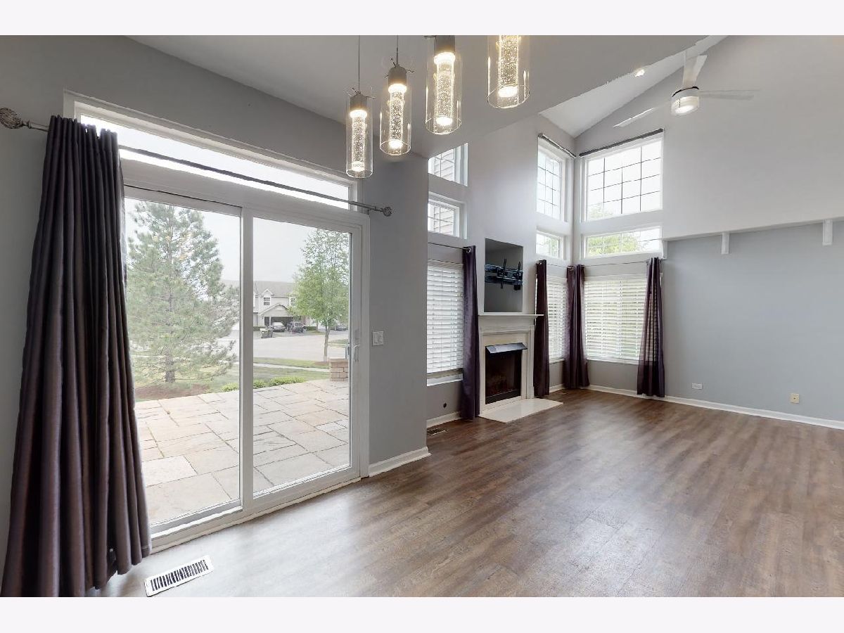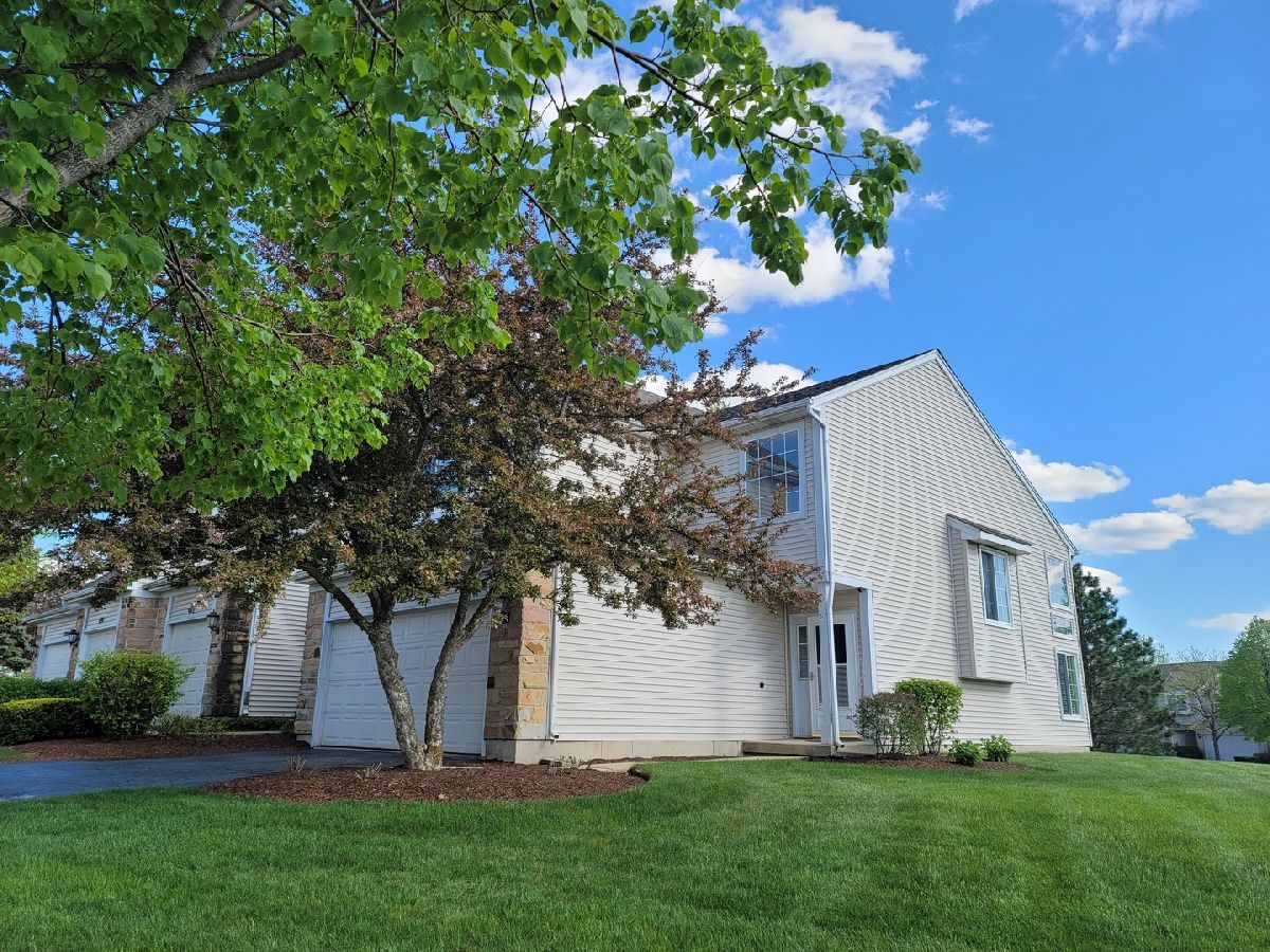 Light and bright end unit with 2 car attached garage! Get the space you need in this two story townhome with two large bedrooms. The master bedroom features two walk in closets, cathedral ceilings, and a large shared master bathroom! Dramatic vaulted living room with lots of windows, with mount for your TV included over the gas log fireplace as the focal point of the room. Decorated in today's grays and whites with many upgrades including vinyl plank flooring on the first floor, light fixtures have been upgraded, ceiling fans, smart thermostat, humidifier, and more! White kitchen cabinets with a center island, breakfast bar, stainless steel appliances and there is a dining room too. Laundry/mud room right off the garage. Culligan water softener & reverse osmosis too! There is a wonderful, large patio for a townhome as well. Great location close to shopping and more! You can move right in! A quick closing is also possible here.