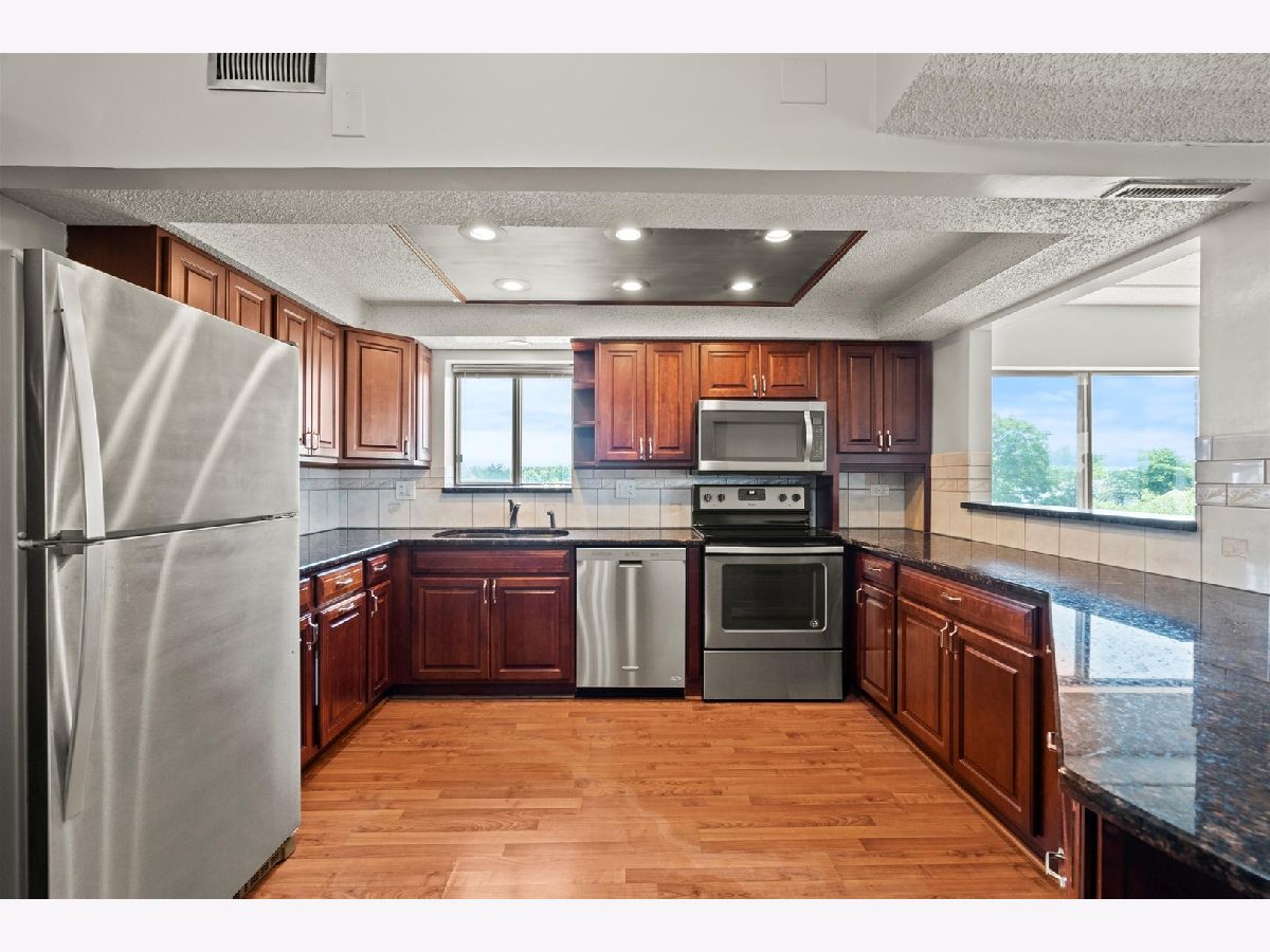 Don't miss this exceptional opportunity to own a 2-bedroom, 2-bathroom top-floor end unit in the highly desirable HeatherRidge Community. This well-maintained condo features a spacious and functional floorplan, including a fully equipped kitchen with generous cabinetry and countertop space, an elevated formal dining area, and a sun-filled family room that welcomes abundant natural light. Step outside to enjoy the expansive private balcony, complete with a retractable awning, perfect for relaxing. Both bedrooms are well-sized with sufficient closet/storage space, and the unit offers two full bathrooms for added convenience; one bathroom features a soaker tub. The in-unit washer and dryer combo adds everyday ease, and major mechanicals are in solid working order, providing peace of mind for the new homeowner. Additional highlights include a designated underground garage parking space, a private storage closet, and 24-hour security. Residents of HeatherRidge enjoy access to a full suite of amenities including golf, tennis and pickleball courts, swimming pools, clubhouse facilities, picnic areas, serene walking trails, and more. Conveniently located near shopping, dining, forest preserves, Six Flags Great America, and major expressways, this home offers a wonderful balance of comfort and accessibility. A great opportunity to own a beautiful condo in a well-established subdivision - schedule your showing today!