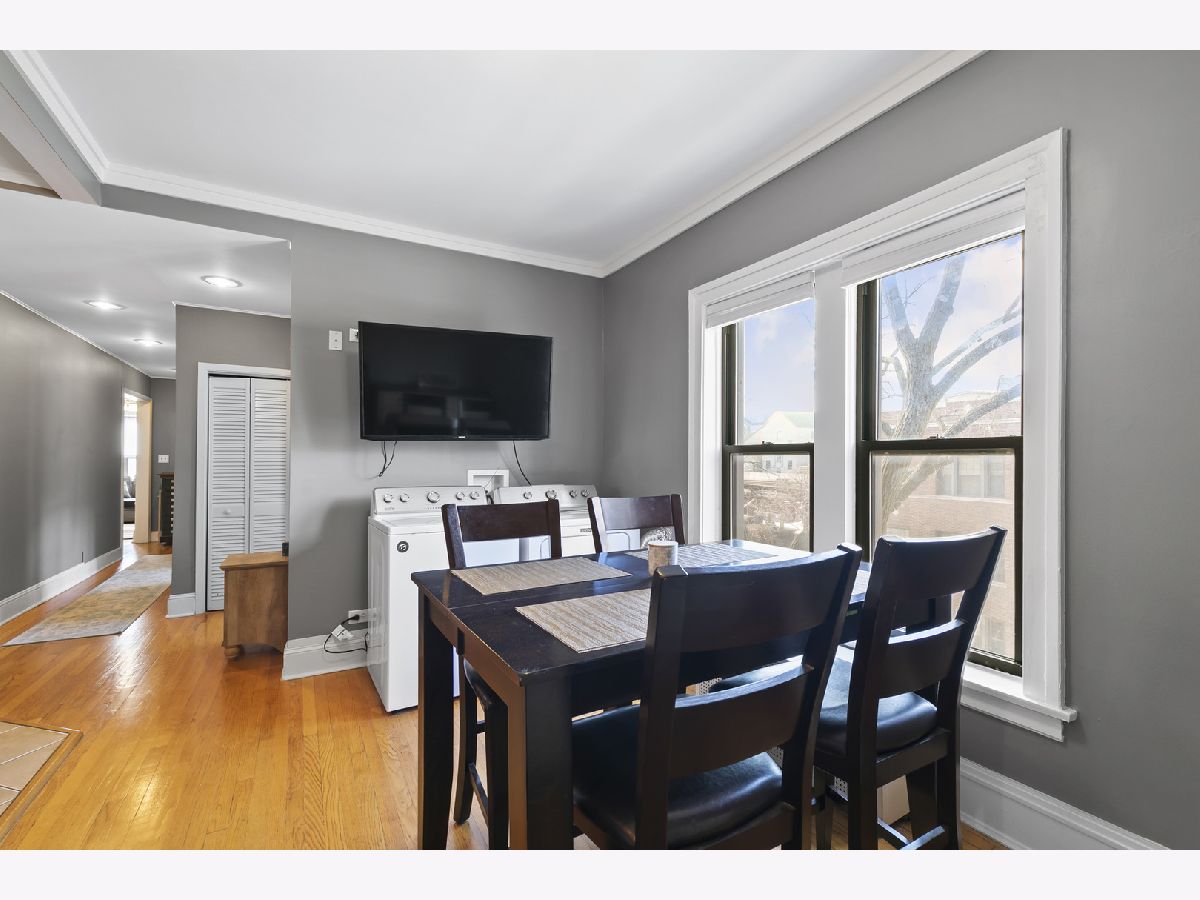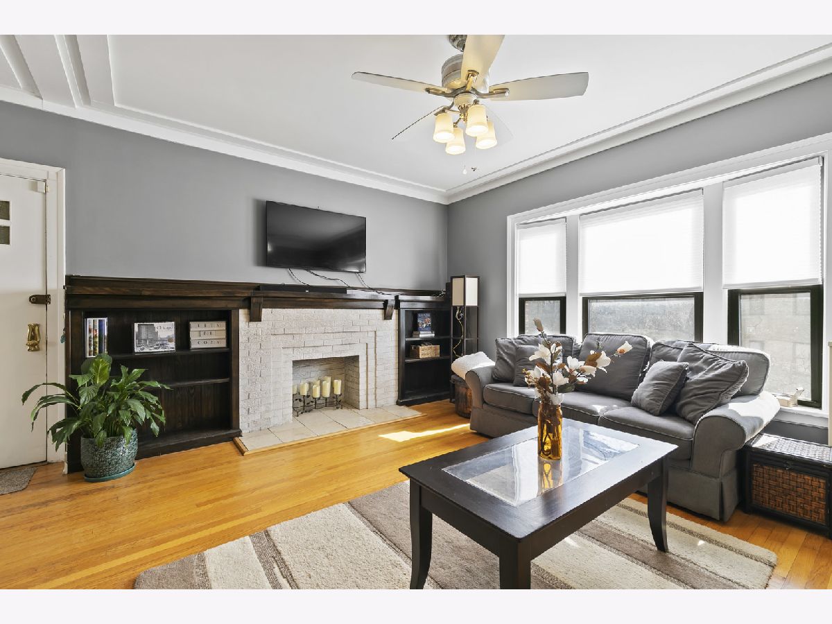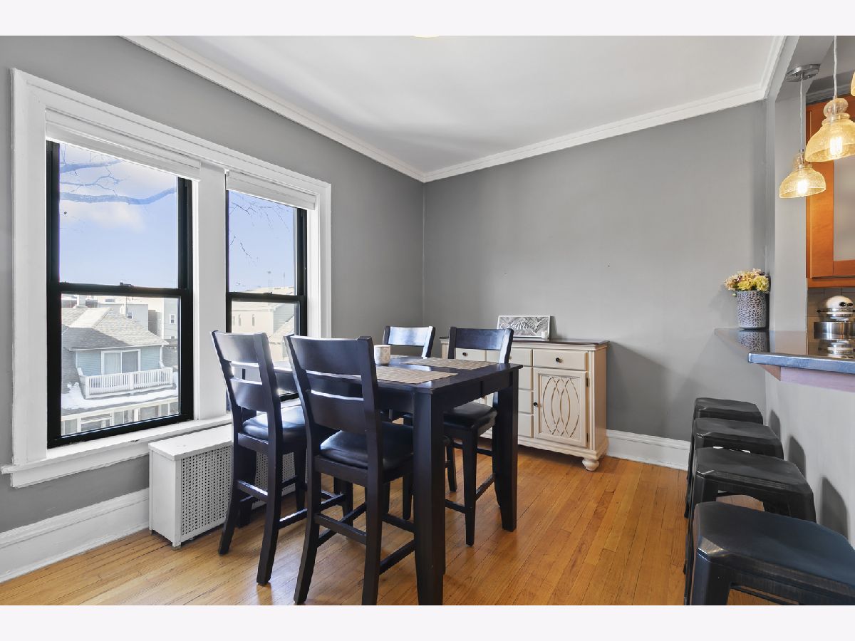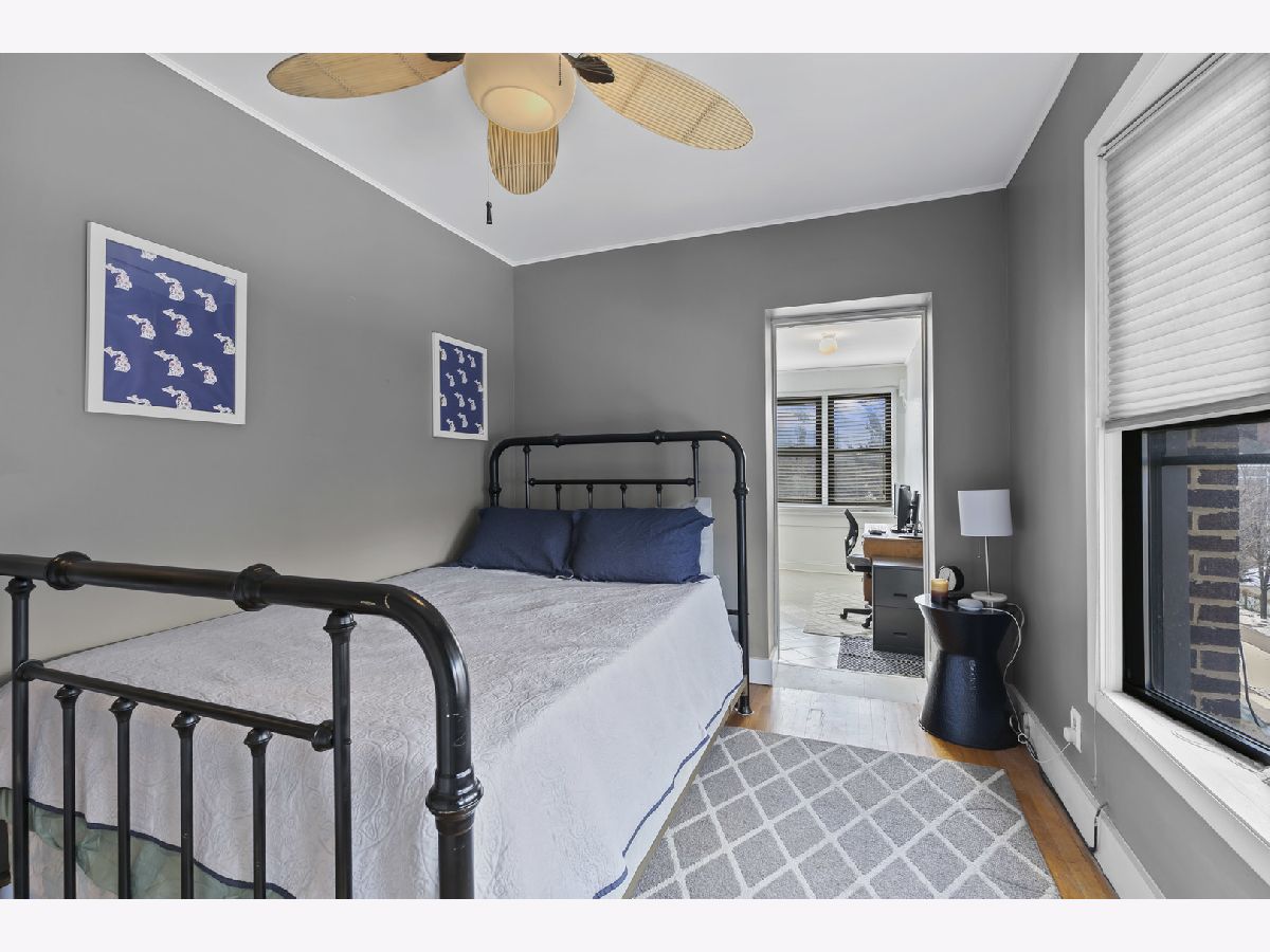 Welcome home to this wonderfully updated 2 Bedroom + Den, 1 bath, top floor unit right in the heart of Wrigleyville - Lakeview. Owners have taken meticulous care of this unit and also added in unit laundry. This top floor corner unit has southern and western exposures and lots of windows for great natural light. Hardwood floors throughout the unit. Generous primary bedroom with adjacent den with bookshelves. Perfect for work from home! Oversized front living space with faux fireplace and built-in bookshelves and southern exposure. The large kitchen has tons of cabinets, stainless steel appliances, granite counters with subway tile backsplash and is open to the full dining area. The private deck space is right next to the kitchen - Fantastic layout for entertaining! Super A+ location, short distance to Wrigely Field and Cubs, and all the dining and nightlife that Wrigelyville has to offer. A block and a half away from the Addison Red Line stop as well. Truly a fantastic unit in a great location - Schedule your showing today!