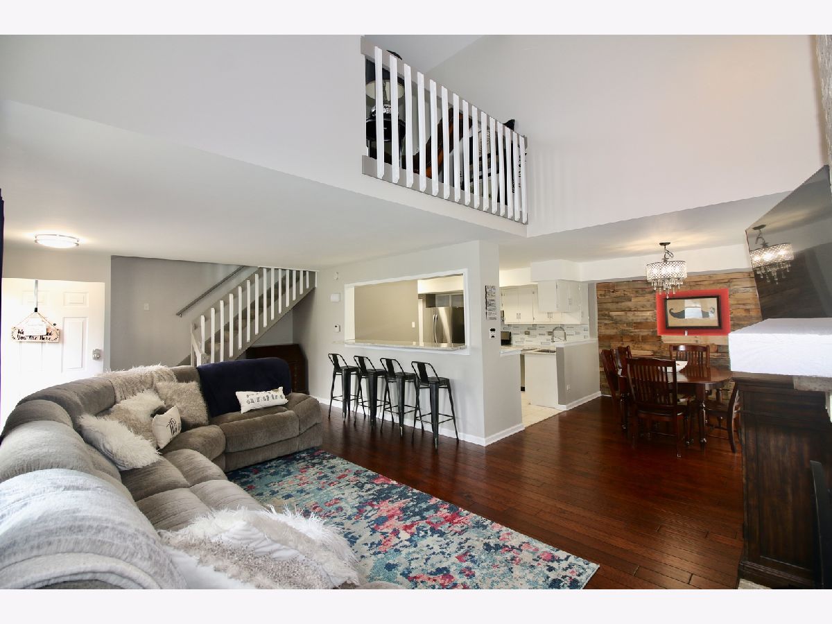 Gorgeous remodeled 2 bedroom, 2.5 bathroom, and 2 car garage condo in a prime Orland Park location and in an private quiet cul-de-sac. Enter into this stunning living room with dramatic two story brick fireplace and open concept first floor with kitchen and dining room. Rich hardwood engineered flooring and crisp white trim give the living room and dining room a warm updated ambiance. The Dining Room has a wall focal point with reclaimed warm wood panels, classy glass chandelier to dress it up, and secluded peaceful concrete patio. Enjoy the newly updated industrial styled kitchen with Granite bar countertop with room for several bar stools. The kitchen also includes white cabinets, SS commercial countertop table, pantry closet, and all SS appliances and faucet. New 2020 remodeled elegant half bath on first floor also. The newer carpeted second level consists of two bedrooms, loft space, and laundry room. Be astonished by the absolutely massive master bedroom with cathedral ceiling with remote controlled ceiling fan and sleek builtin cabinetry along the front wall. Also includes big walk-in closet and fresh white private master bathroom. The second bedroom is a comfy and peaceful warm space with bright sunny window. The spacious loft area is perfect for an office, workout space, or even extra bedroom area with view down to the first level. The second stylish full bath has the popular gray walls and perfectly neutral throughout. And the convenient 2nd floor laundry room is a huge bonus. And to top it off, this condo comes with a very large 2 car attached garage with entrance directly into the kitchen. Large attic for additional storage or space. This will sell quick so come see it for yourself soon before it is SOLD.