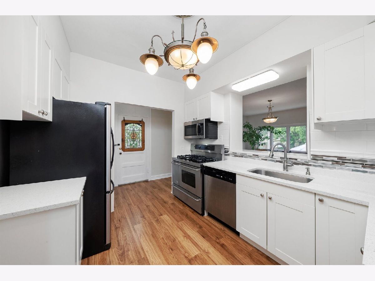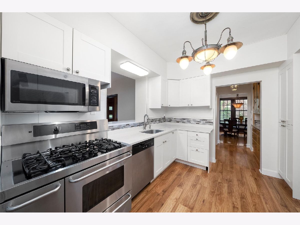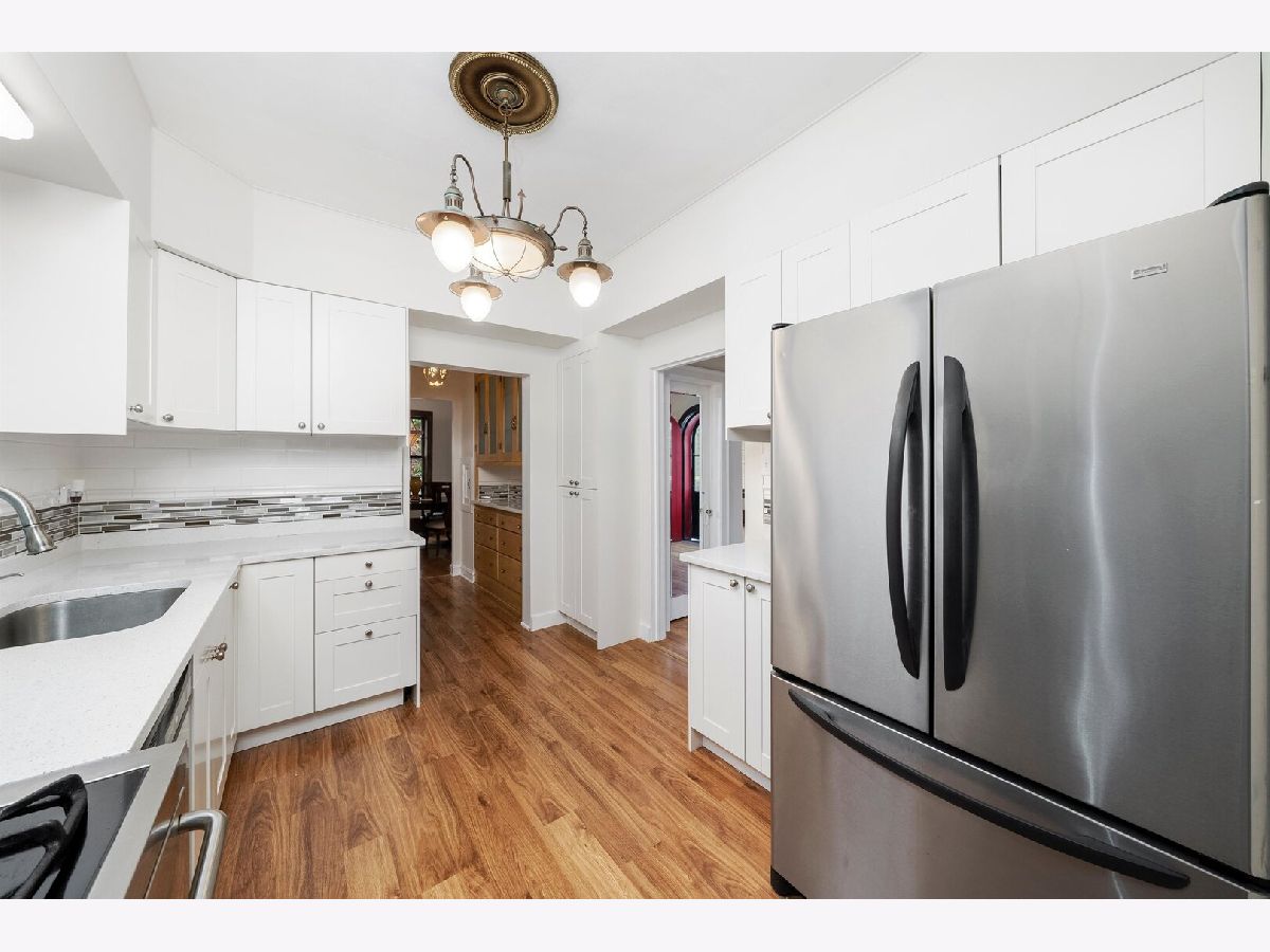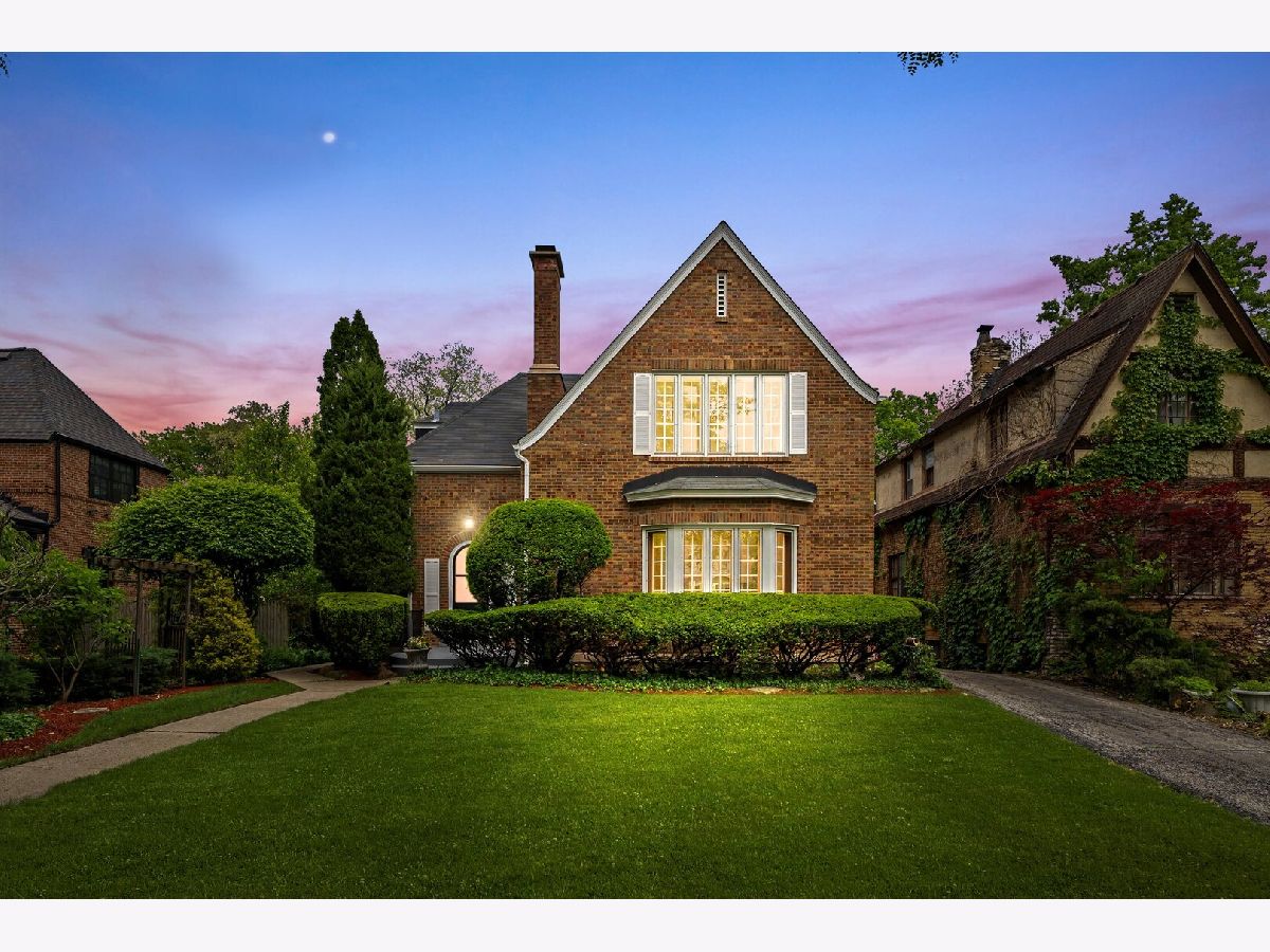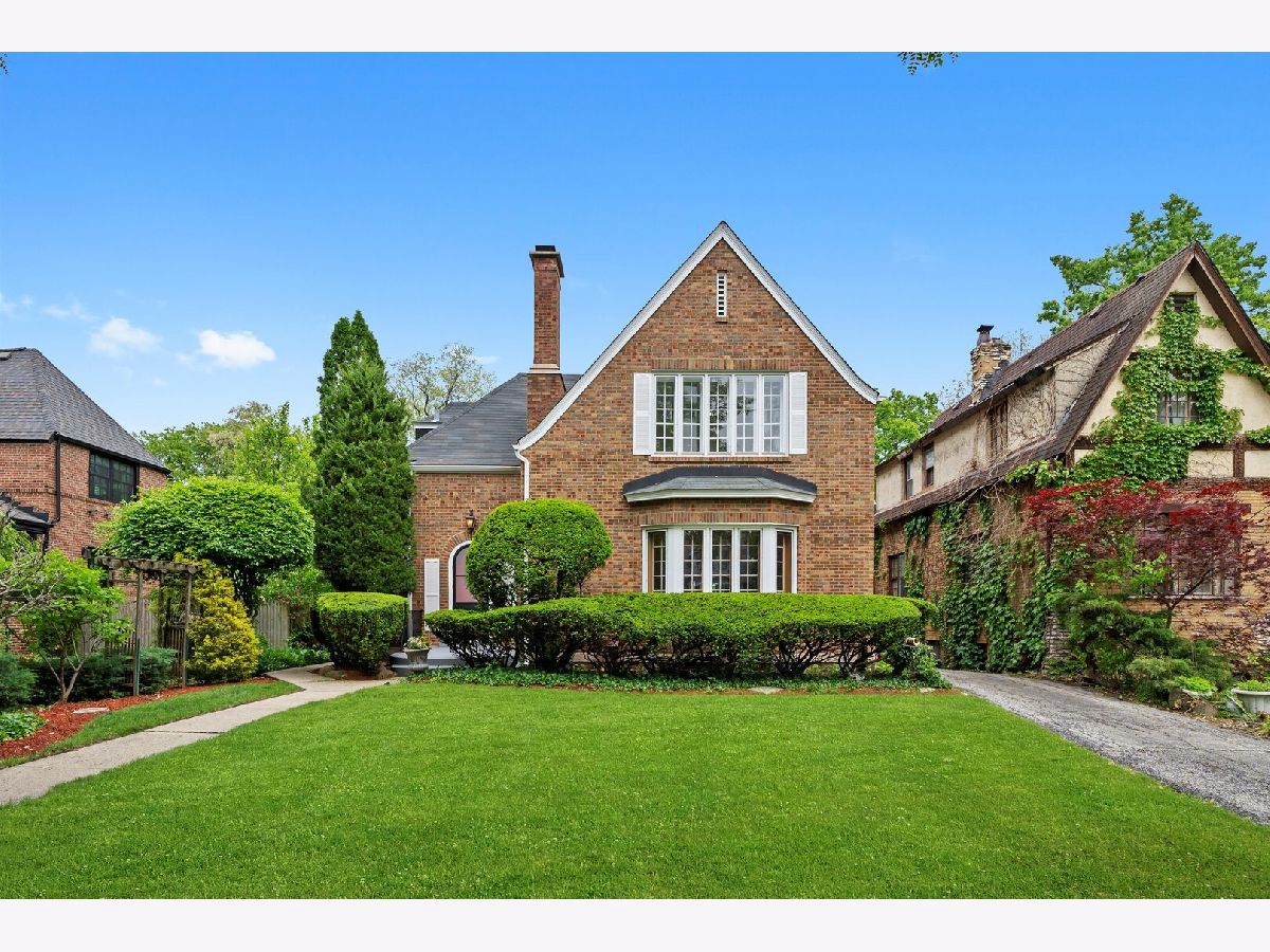 Nestled in the heart of North Beverly, this beautifully updated English Tudor offers timeless charm and modern conveniences. Constructed from all brick, this home features five spacious bedrooms, three and a half bathrooms, and a detached two-car garage with a long driveway, all set on an oversized 55 x 179 lot. Recently updated, the property is perfect for those seeking a blend of historic character and contemporary upgrades in a neighborhood rich with history and a small-town suburban feel. The interior welcomes you with warm hardwood floors on the main level, complemented by stained glass windows and a marble gas fireplace that anchors the living room. Adjacent to the living area, the family room is accented with rich wood paneling, while the bright and airy breakfast room provides views of the landscaped patio and garden, making it ideal for hosting guests. The kitchen, fully renovated in 2024, boasts white shaker cabinets, quartz countertops, stainless steel appliances, and luxury vinyl flooring that extends into the family room. All five bedrooms are located on the second floor, where you'll also find two updated full bathrooms with resurfaced tubs and modern fixtures. The front three bedrooms feature hardwood floors beneath newly installed carpet, while the two rear bedrooms showcase luxury vinyl flooring. Recent updates throughout the home include a complete interior repaint (2024), tuckpointing (2023), and enhancements to the electrical panel, garage, and front exterior stairs. Outside, the home is framed by meticulous landscaping, an inviting patio, and a garden that creates a serene outdoor space for relaxation or entertaining. Located just steps from Christ The King School, the property also offers convenient access to shopping at Evergreen Plaza, dining at neighborhood favorites like Giordano's Pizza, and recreational amenities including the Beverly Arts Center, Beverly Hills Tennis Club, and forest preserves. Commuters will appreciate the proximity to the Beverly Hills Metra station and highways I-57 and I-94. This beautifully maintained home blends character, comfort, and convenience, making it an excellent choice for those looking to settle in the vibrant North Beverly community. Schedule a private showing today to experience all this home has to offer!