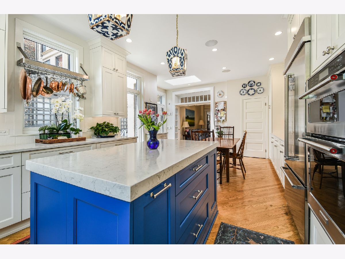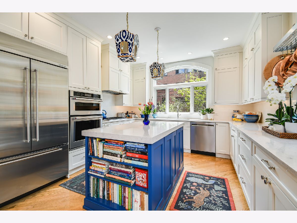 The historic Seminary Townhouse Association is a gem in the heart of Lincoln Park. This landmarked row-house community is comprised by homes facing Fullerton, Belden and Chalmers in the middle. The parklike setting offers a strong sense of community, with ice-skating in the winter and bicycle parades in the summer. This is the most updated home to come on the market in the complex in years. With 4,700 sqft of living space, this home offers an appealing blend of modern styling and classic architectural details. The main level includes a combination living/dining room, a family room with custom built-ins, and a large high-end white kitchen. Recently renovated, the kitchen has ample storage, top quality appliances, quartz countertops, and new windows. The kitchen door leads out to a new superior quality Azek deck with bike storage below. The fenced backyard with stone patio and raised garden is truly an oasis! A luxurious primary suite, the second floor includes a spacious bedroom, den, and a large bath with double vanity, tub, steam shower and sauna. On the third floor, there are three more bedrooms plus a newly renovated bath. The finished lower level includes a huge rec room with built-ins and loads of deep closets, a custom mudroom designed to accommodate all your sports gear, recessed and custom lighting, a large laundry room with a wall of storage, and a full bath. Other features include hardwood, new carpet, 3 gas log fireplaces, central a/c, on-demand hot water, skylights, updated lighting, built-in speakers, and two-car parking plus guest parking. Seminary Townhouse Association is conveniently located in the Oscar Meyer Elementary and Lincoln Park High School districts, near Oz Park, Lincoln Park, the Fullerton el station, DePaul University, and a fantastic array of neighborhood restaurants, boutiques, and amenities.