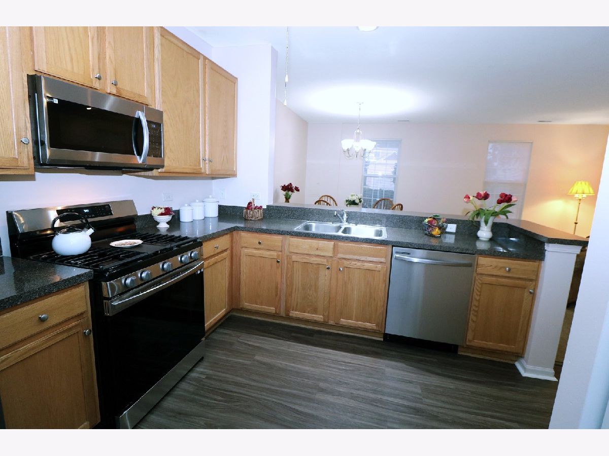 Beautiful move-in ready 2 Bedroom + extended oversized Loft, 2 1/2 bath townhome in Sweetwater! End unit lets in plenty of light! Open floorplan! Freshly painted and many new floors. Upgraded kitchen with 42'' hickory cabinets, a spacious pantry closet, new flooring, brand new Stainless Steel Appliances, breakfast bar open to dining room and living room with gas fireplace! Master suite has vaulted ceilings, his and hers walk-in closets, plus master bath. Laundry Room is conveniently located on the 2nd floor. Porch and patio overlooks open space, plus there is an attached 2 car garage. Within just a few minutes from the downtown Historical Woodstock Square and the Metra train station. Make this your own Home Sweet Home!