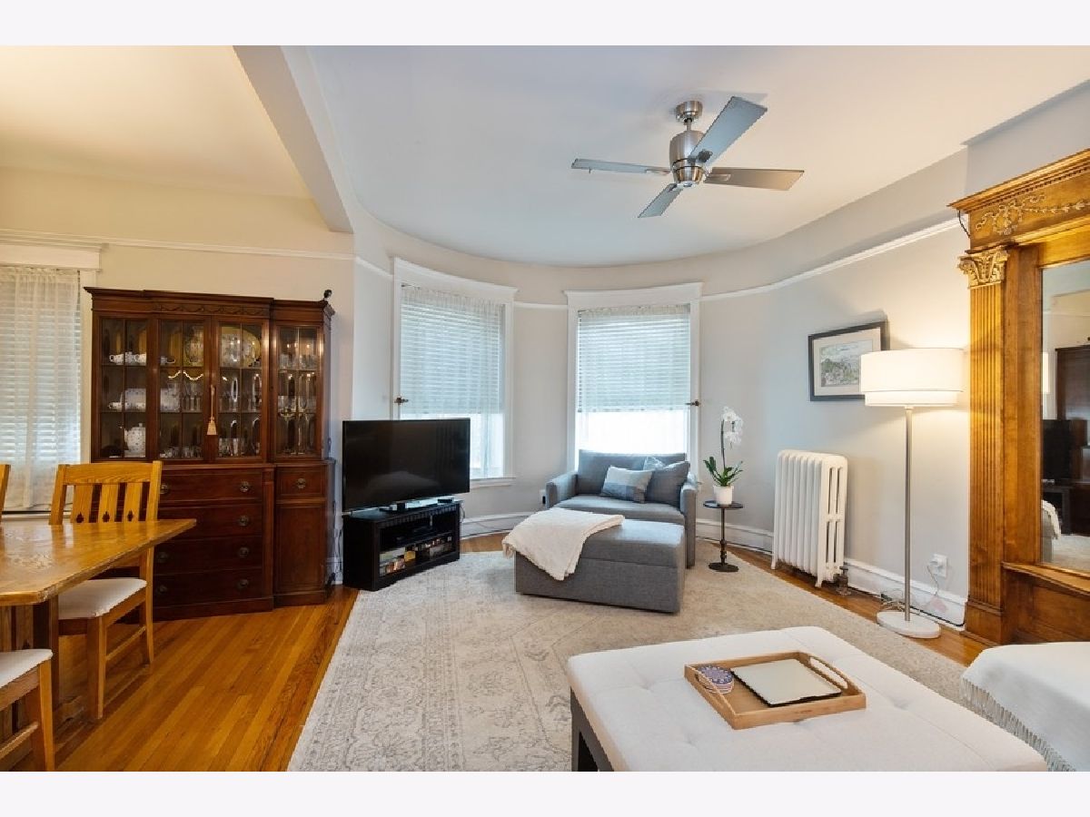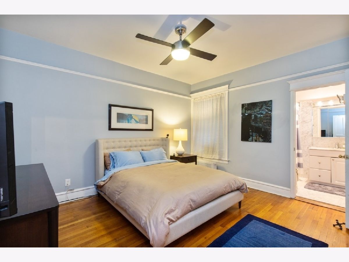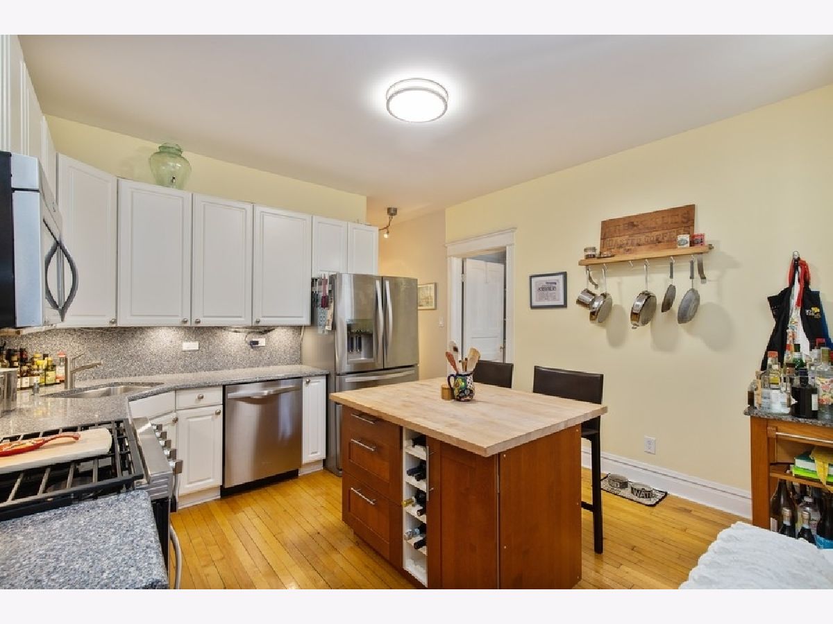 Vintage charm with renovated finishes, this 2 bed/ 1.5 baths condo features hardwood floors throughout, eat-in kitchen with white cabinets, gray and white counters, newer stainless steel appliances, in-unit washer/dryer, separate dining area, and deck off the kitchen. Fabulous location in Lakeview near Wrigley, the Lake, shopping and restaurants. Steps from the Sheridan/ Irving Red Line. Partly covered, transferable exterior parking space available across the street for $175/ month.