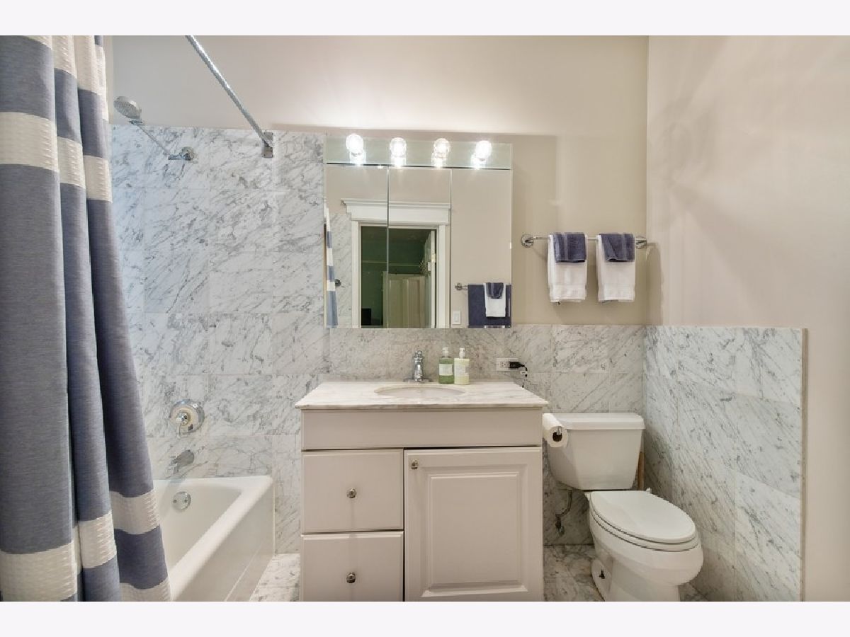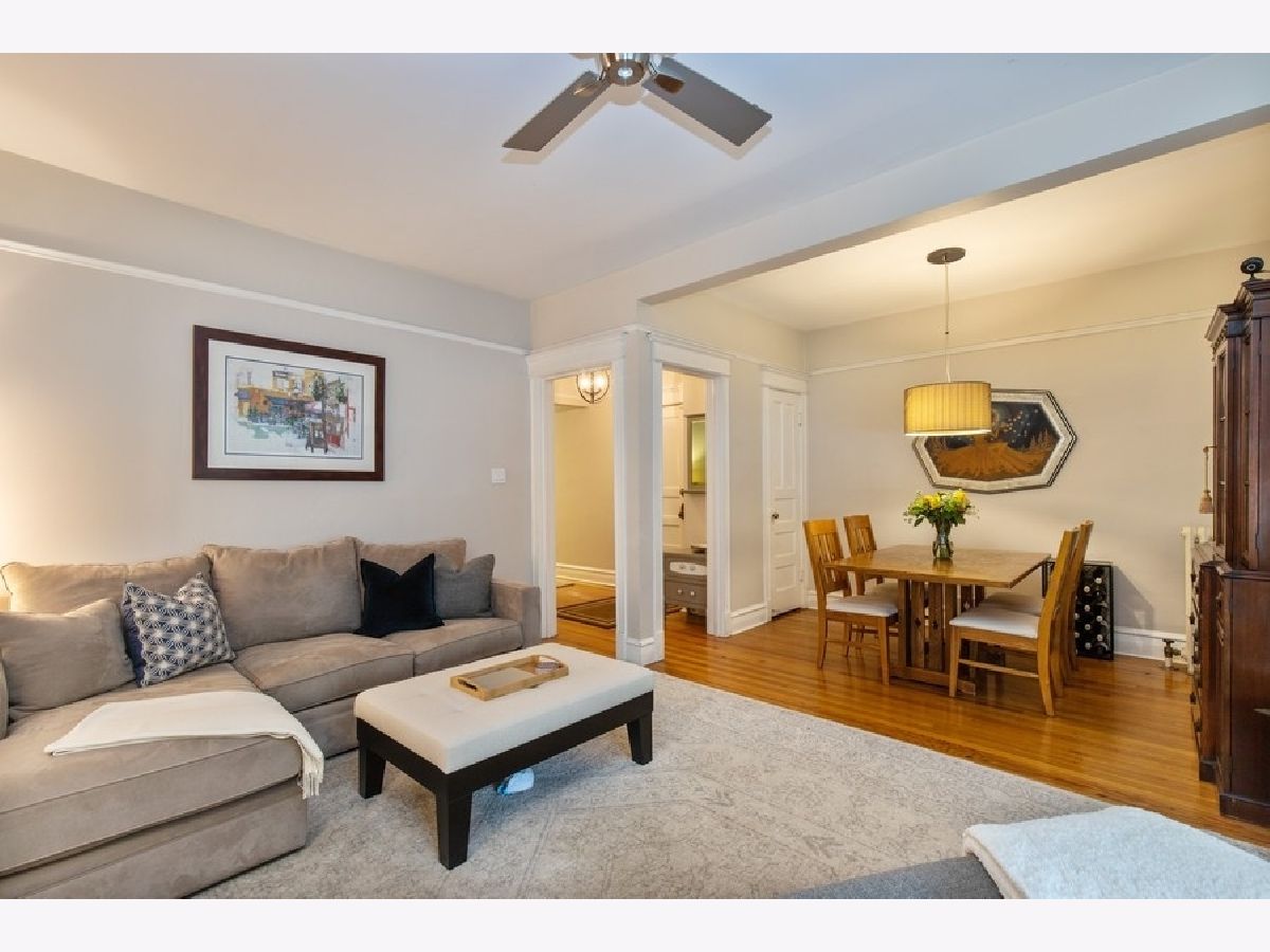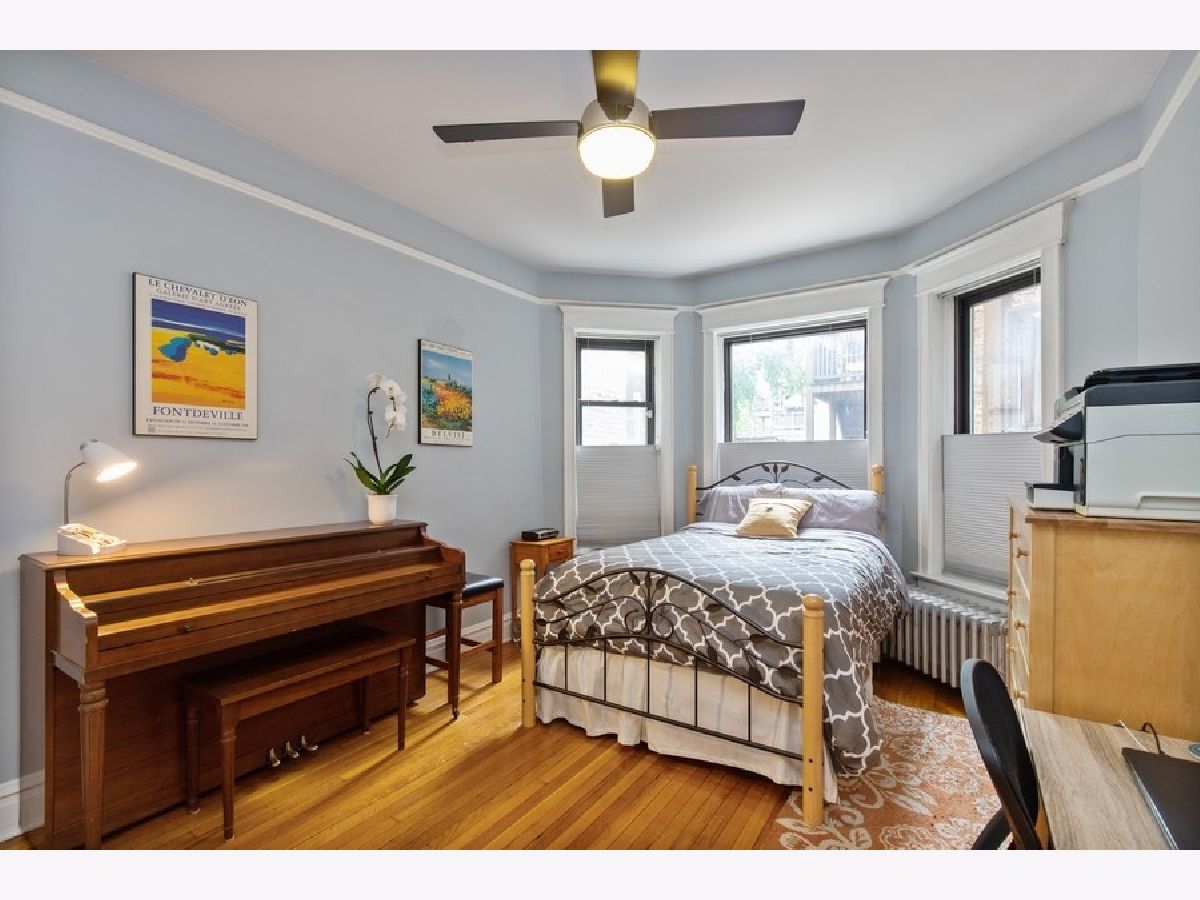 Vintage charm with renovated finishes, this 2 bed/ 1.5 baths condo features hardwood floors throughout, eat-in kitchen with white cabinets, gray and white counters, newer stainless steel appliances, in-unit washer/dryer, separate dining area, and deck off the kitchen. Fabulous location in Lakeview near Wrigley, the Lake, shopping and restaurants. Steps from the Sheridan/ Irving Red Line. Partly covered, transferable exterior parking space available across the street for $175/ month.