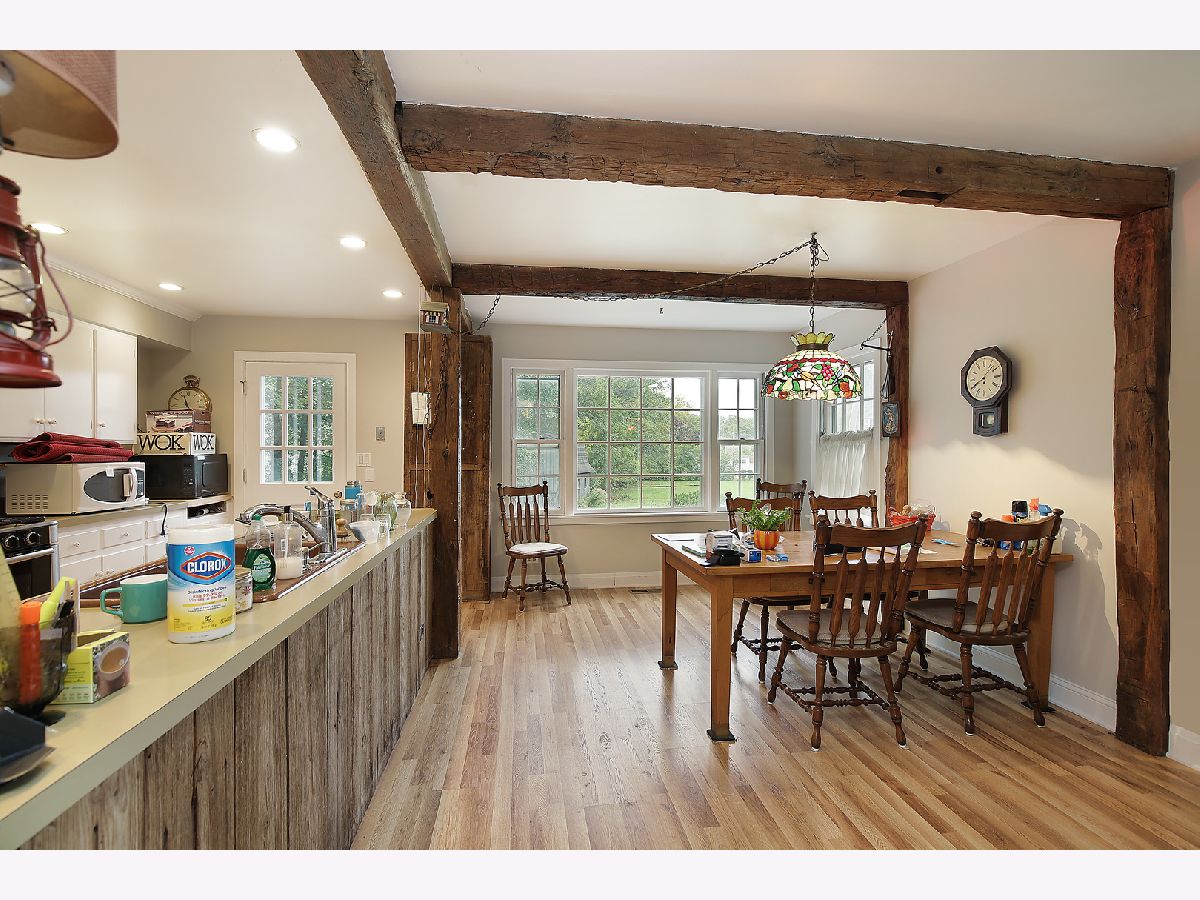 What an opportunity to live close to town and downtown Chicago expressways yet be nestled back on a spectacular 1.2 acre lot making it feel like you are way out in the country! This turn-of-the-century farmhouse exudes its original vintage charm including oversized windows and 10' ceilings yet has been modernized to include a country kitchen with roughhewn beams, an upstairs laundry and 3 bedrooms including a main floor with adjoining bath. Formally a horseradish farm with a 3+ car (tandem) garage and rich, fertile expansive grounds extending 435' all the way back to intimate Bittersweet Road, this home is truly situated on one of the most majestic lots available in the NorthShore surrounded by mature trees and foliage as well as large, stately homes. Step into the gracious living/family room with beautiful, ceiling-high windows overlooking the breathtaking grounds; relax around the intimate corner fireplace with granite surround flanked by custom built ins. Nearby is the formal dining room perfect for entertaining large parties with ease and there is a double-sided Butler's pantry complete with glass display cabinets, serving area and wet bar. The wonderfully expanded kitchen will undoubtedly be 'where the heart is' in this charming vintage home; authentic aged beams are throughout providing a warm, comforting country feel and there is a large picture window allowing seemingly unending views of the spectacular acerage. Gourmet cooks will relish the enormous center island which opens to a massive eating area/family room. There are three large bedrooms including a main floor bedroom with private bath which could be the primary, if desired. Two other big bedrooms are located on the 2nd level along with a full bath and dedicated laundry room. An enormous basement is ready to be finished for more fun and play or can be used as convenient storage/workrooms. Estate sold in "as-is" condition; more pictures will be available as home gets cleared out. Call agent for more details about this truly special expanded vintage home situated blocks to everything yet still retaining its delightful tranquil country feel!