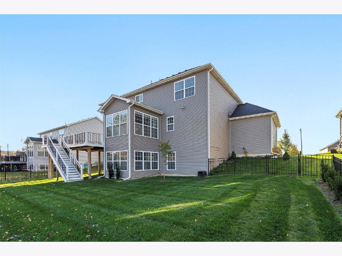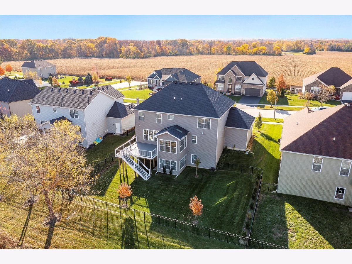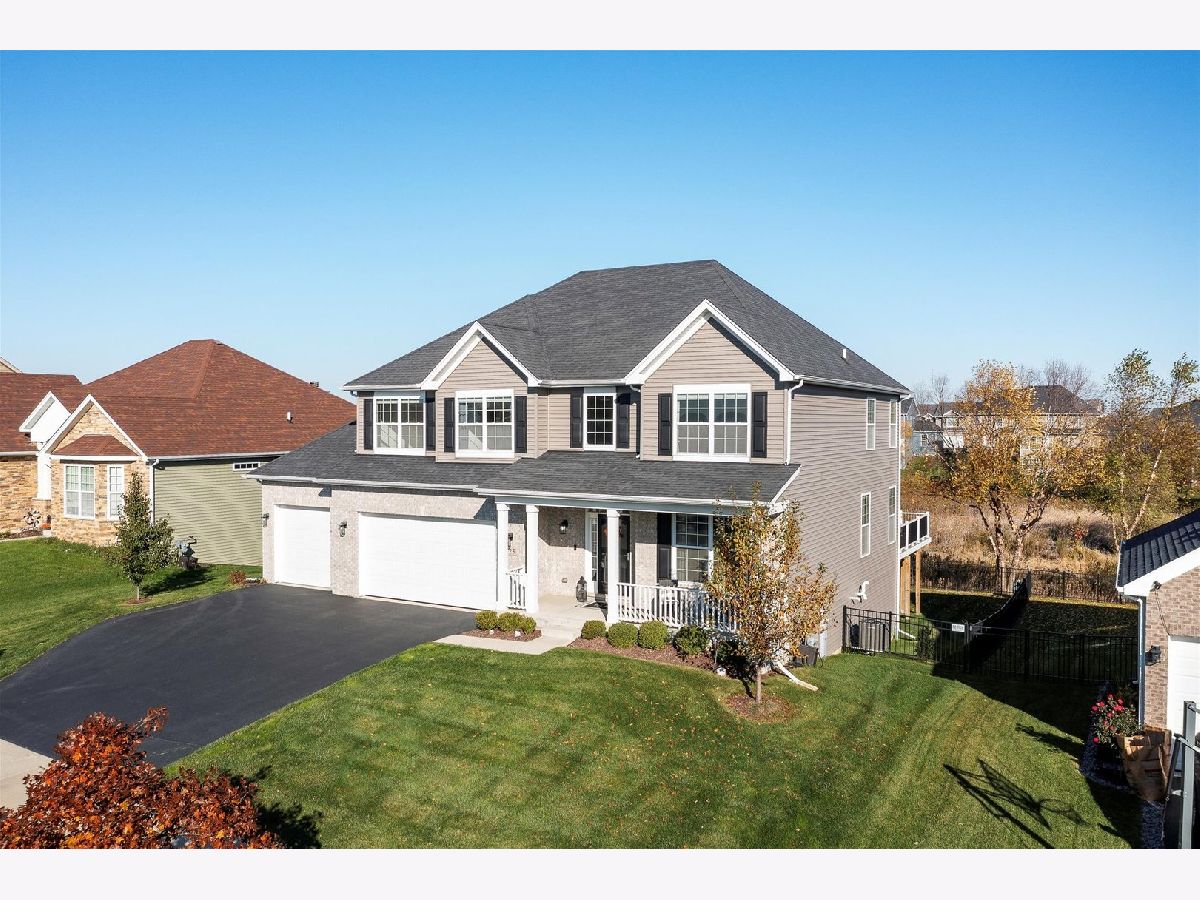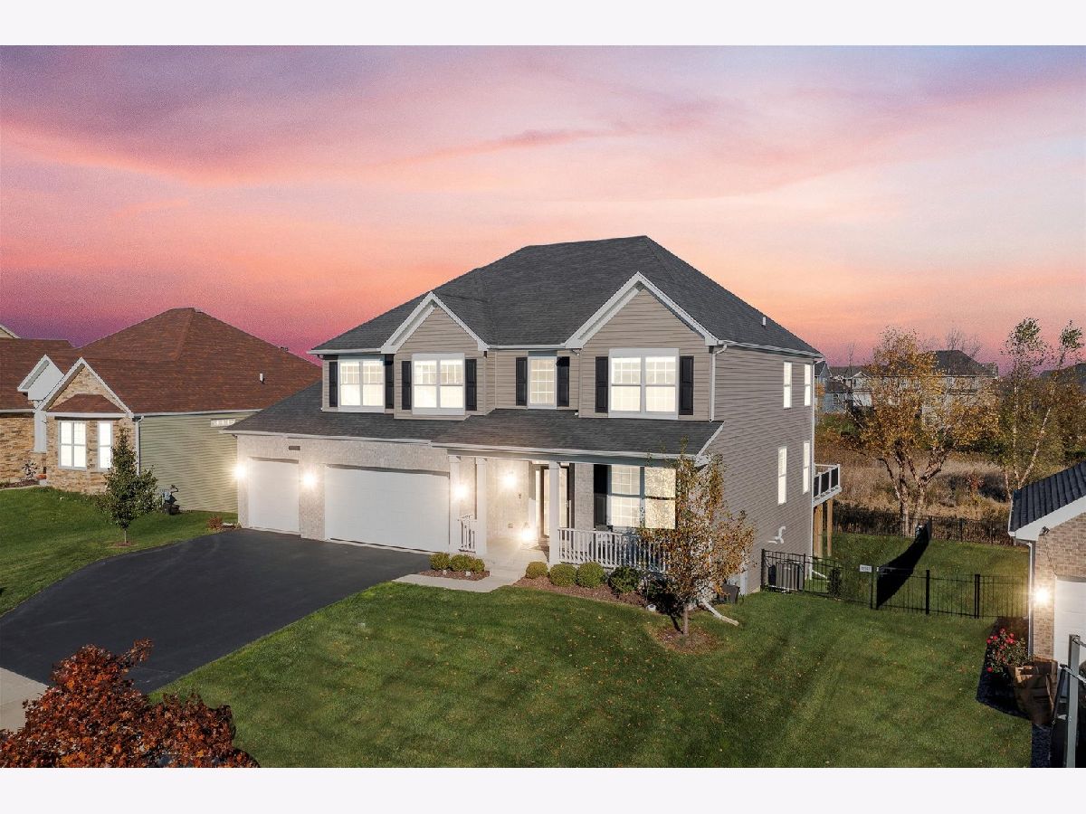 Wow!! Gorgeous 2-story home with lovely front porch and many features in sought after Blackberry Woods. Only SEVEN years old and so pristine! 4 bedrooms, 2 1/2 baths, 3-car garage. Dynamic OPEN FLOOR PLAN with 9' ceilings on 1st floor, hardwood floors, wrought iron spindles and fresh new neutral paint (Nov 2023) throughout. Formal dining room (can be used as a sitting area as it is filled w/ sunshine due to southern exposure). Gourmet kitchen boasts new "Farmhouse" light fixtures, staggered rich mocha cabinets, granite countertops with decorative tile backsplash, vented hood and SS appliances including wine fridge! Bright SUNROOM with skylights next to spacious family room. Extended mud room has huge walk-in pantry. Master suite features luxury bath with dual granite sinks, new light fixtures and mirrors and upgraded TILES shower with seating bench. Roomy LOFT -- ideal for office or playroom. Convenient 2nd FLOOR LAUNDRY with washer and dryer. FULL WALK-OUT, insulated basement with large windows rough-in for plumbing and new humidifier ready. Private wrought-iron fenced backyard has spectacular views of pond and prairie. NEW expansive COMPOSITE DECK with railing. NO SSA and LOW HOA! Just minutes from water park downtown Yorkville, Oswego and Montgomery, the Fox River, Bicentennial Riverfront Walk, Marge Klein Whitewater Course, restaurants, shopping, hospitals and more! Easy access to Rt 47 and I88.