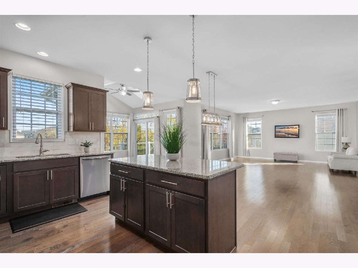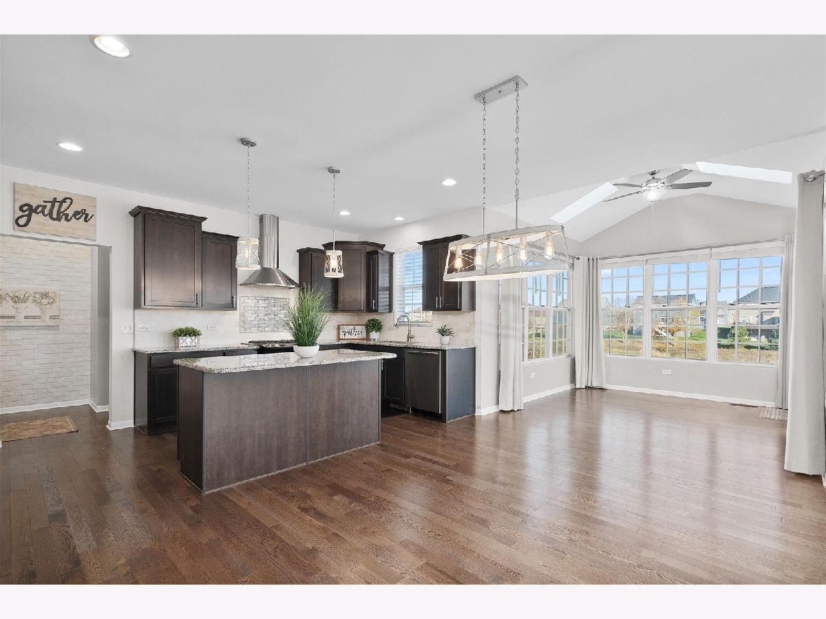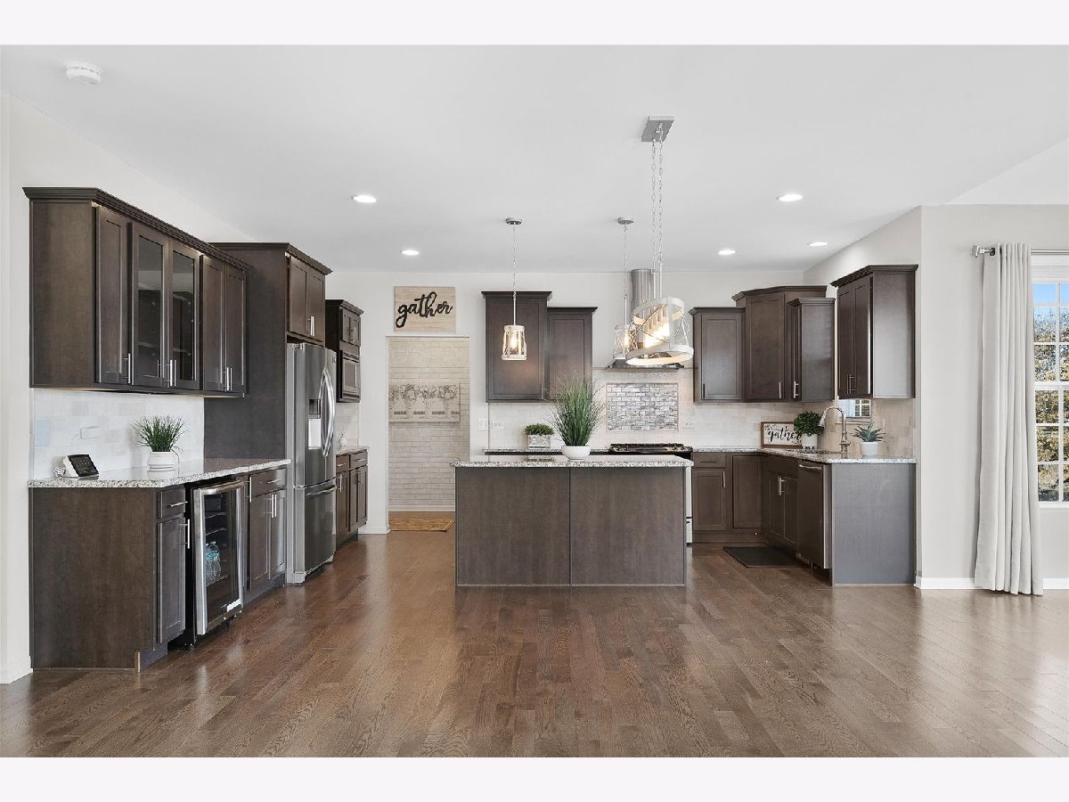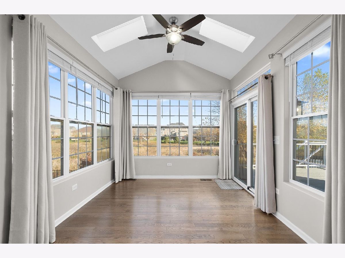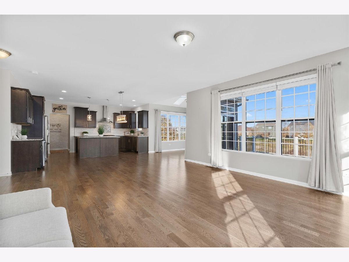 Wow!! Gorgeous 2-story home with lovely front porch and many features in sought after Blackberry Woods. Only SEVEN years old and so pristine! 4 bedrooms, 2 1/2 baths, 3-car garage. Dynamic OPEN FLOOR PLAN with 9' ceilings on 1st floor, hardwood floors, wrought iron spindles and fresh new neutral paint (Nov 2023) throughout. Formal dining room (can be used as a sitting area as it is filled w/ sunshine due to southern exposure). Gourmet kitchen boasts new "Farmhouse" light fixtures, staggered rich mocha cabinets, granite countertops with decorative tile backsplash, vented hood and SS appliances including wine fridge! Bright SUNROOM with skylights next to spacious family room. Extended mud room has huge walk-in pantry. Master suite features luxury bath with dual granite sinks, new light fixtures and mirrors and upgraded TILES shower with seating bench. Roomy LOFT -- ideal for office or playroom. Convenient 2nd FLOOR LAUNDRY with washer and dryer. FULL WALK-OUT, insulated basement with large windows rough-in for plumbing and new humidifier ready. Private wrought-iron fenced backyard has spectacular views of pond and prairie. NEW expansive COMPOSITE DECK with railing. NO SSA and LOW HOA! Just minutes from water park downtown Yorkville, Oswego and Montgomery, the Fox River, Bicentennial Riverfront Walk, Marge Klein Whitewater Course, restaurants, shopping, hospitals and more! Easy access to Rt 47 and I88.