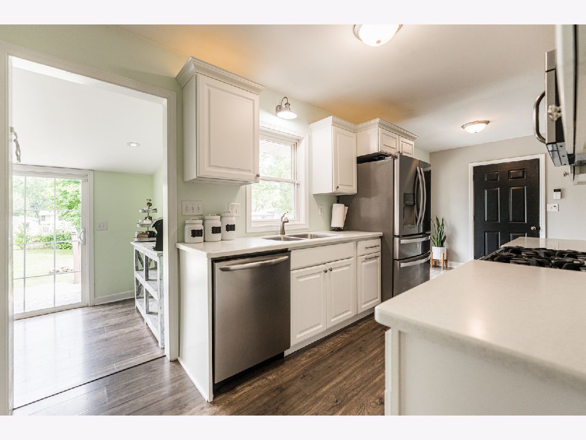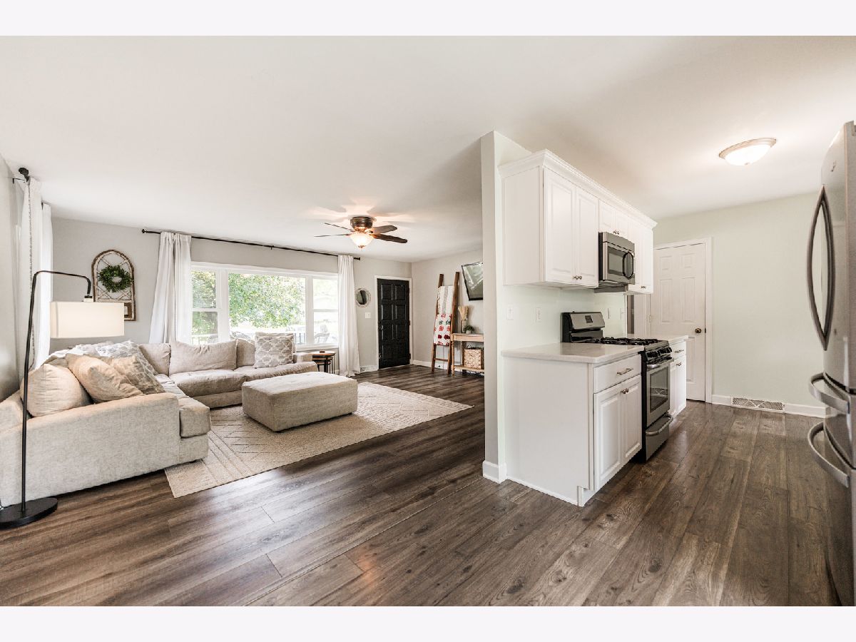 Drive up to this ABSOLUTELY LOVELY RENOVATED ranch home and experience what the expression "You had me at Hello!" really means! You'll be delighted with the 19x8' composite front deck that welcomes and beckons all to sit awhile and enjoy the quaint established neighborhood with mature trees. Impressive, spacious living room with bright picture window, white trim, and LVP flooring flows into a beautifully updated kitchen and dining area featuring crisp white cabinetry, quartz countertops, stainless steel appliances, pantry closet, table space and a "must have" window above the sink. Sip your morning coffee in the cheerful and cozy breakfast nook while overlooking the expansive back yard or step outside the slider door to a 2-tiered deck that's perfect for grilling, relaxing, and outdoor entertainment. Thoughtfully designed for convenience and functionality, there's a second slider door that enters the kitchen area too! Down the hallway are 3 comfortable bedrooms and a gorgeous full bath, complete with extended height vanity and walk-in shower with stylish white subway tile boasting a glass door and contrasting black fixtures/accents. The FINISHED BASEMENT is of the same craftsmanship and quality as the main floor and presents recessed lighting, plush carpet, a huge family room w/cabinet plumbed for a wet-bar, 4th bedroom w/window, full bath, office, and storage/laundry room which almost doubles your living space! You'll recognize & appreciate the OUTSTANDING RENOVATION that has taken place within the last 12 years, from the siding, windows, mechanicals, kitchen, flooring, fixtures, bathrooms, basement, finishes, lighting, you name it! Attached garage, extra parking, back yard is fenced by neighbors, super location, close to schools, walking/bike path, parks, I-88 access, shopping and golf! This is THE ONE!