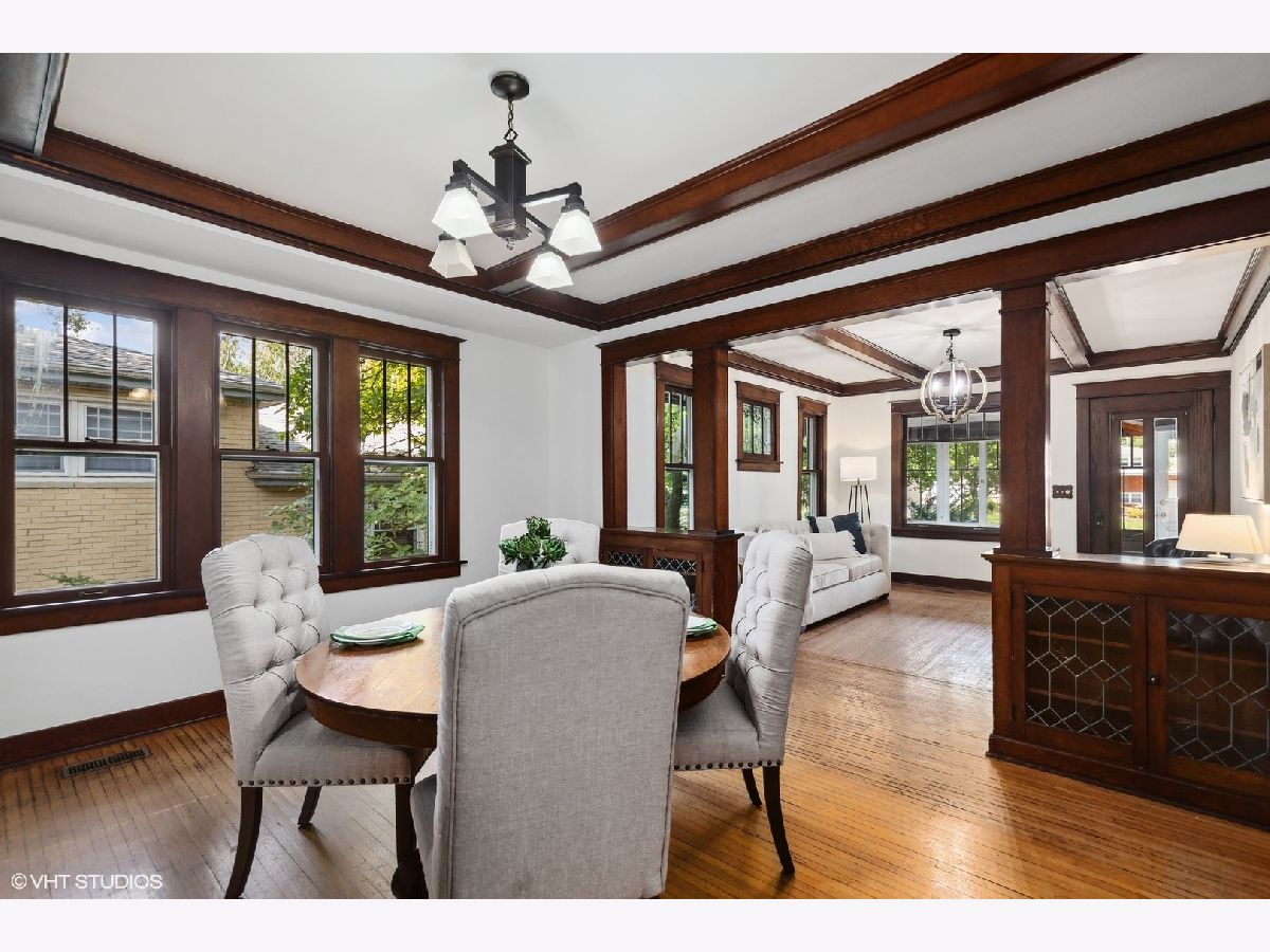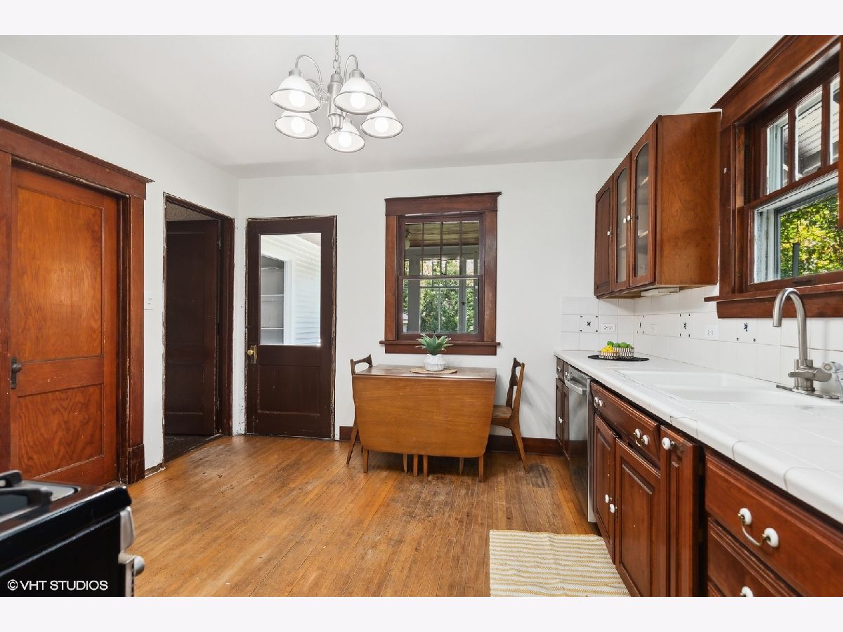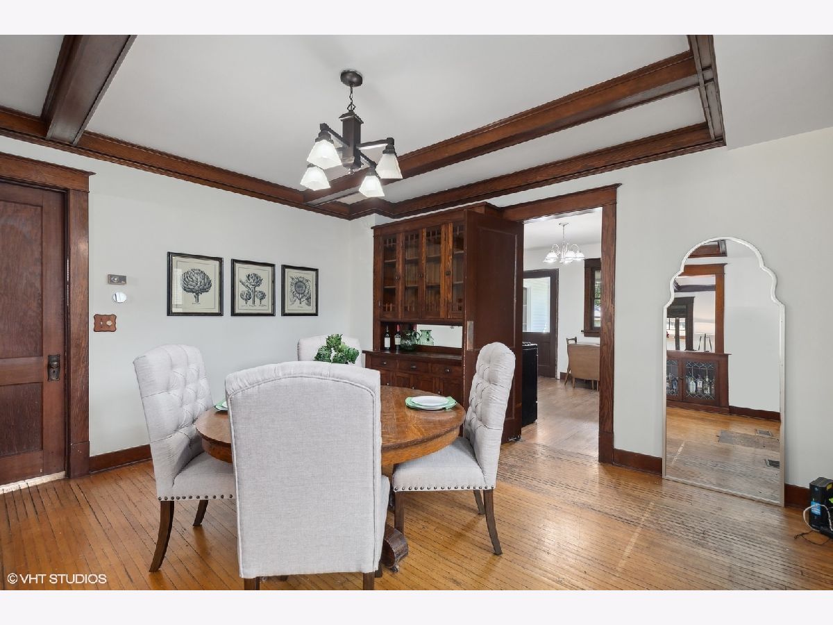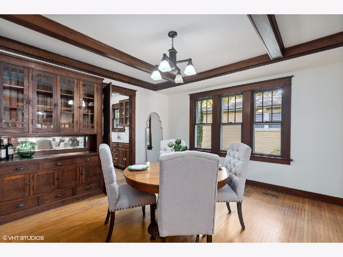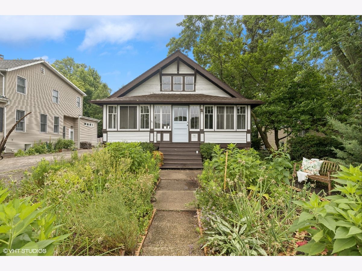 An Arlington Heights original modeled after a Sear's Arts and Crafts mail order kit for those interested in preserving history and enjoying living on the iconic Arlington Heights 4th of July parade route. Loads of original charm with built-in cabinets and dark wood wide ceiling trim built from dense grain wood sourced at Heller Lumber. Enter thru the spacious sleeping porch to the primary family room with tall windows, original leaded glass window and rich, wide wood trim. Continue to dining room with beautiful built-in china cabinet with drawers and leaded glass cabinets flanking the framed room divider. Extra large kitchen just waiting for your ideas! Can extend the kitchen to the back porch and pantry. Basement ceiling is full height, is partially finished and includes a 2nd full bath and laundry area. The 2nd level includes a cozy bedroom or office and a walk-in attic ready for a primary suite renovation with plumbing for an adjoining bath. Front and back yards have been intentionally stewarded using permaculture and sustainability practices for 20+ years and has mature cherry, ginkgo, pine, raspberries, blackberries, rhubarb, sunchoke, herbs and other perennial plants for food, medicinal and creative uses. A small pond has bloomed a new lotus flower just in time for you to see. The yard is certified Wildlife Habitat with the National Wildlife Federation. Excellent schools, community park districts, shopping, Al fresco dining in downtown Arlington Heights, walk to Metra and quick access to expressways. A short 20 minute drive to O'Hare Airport.