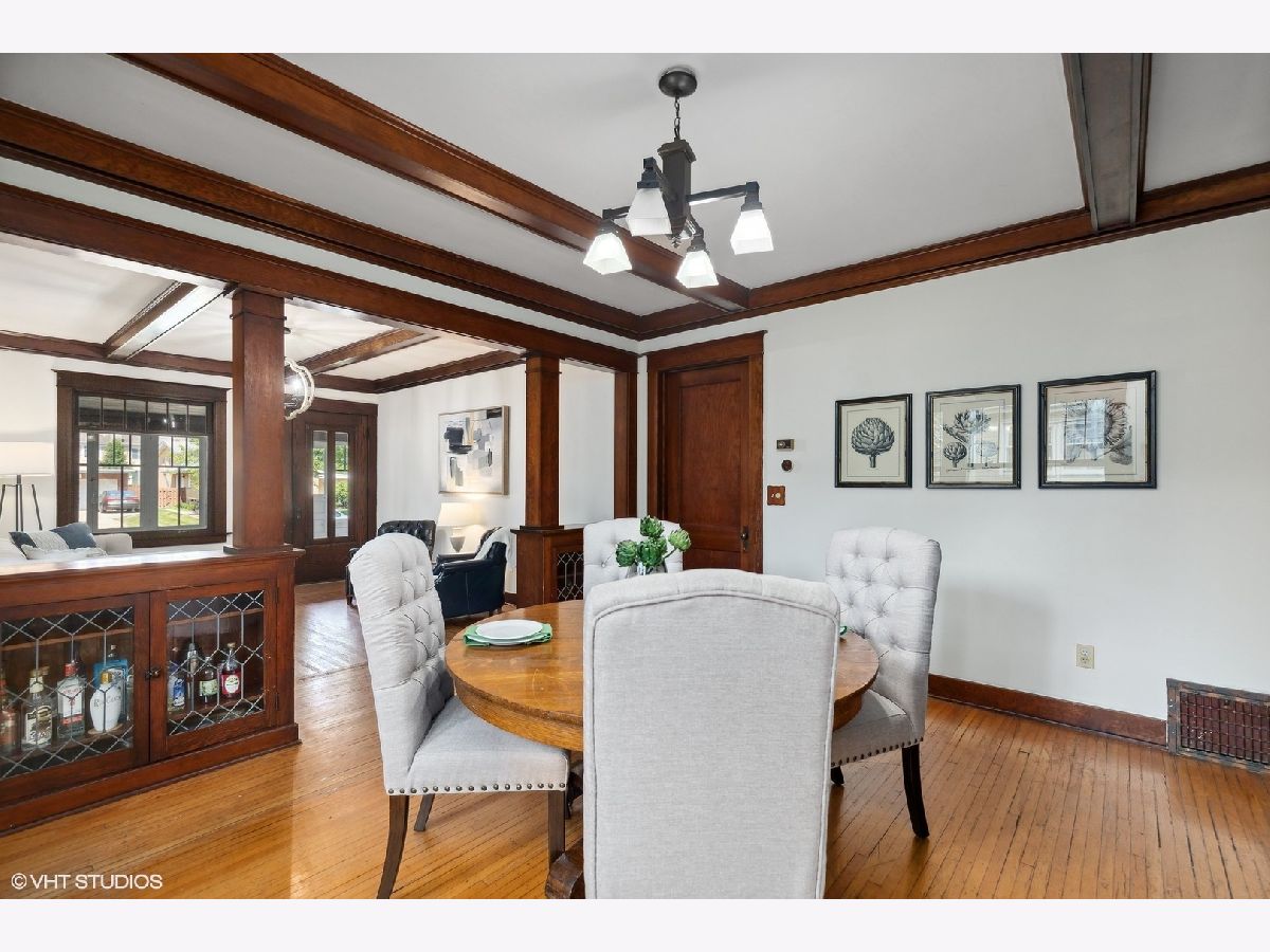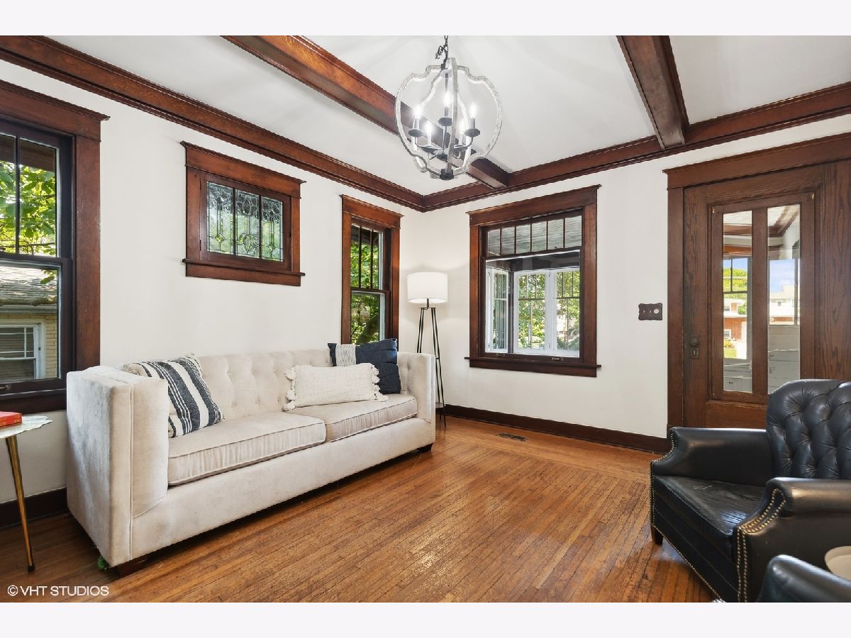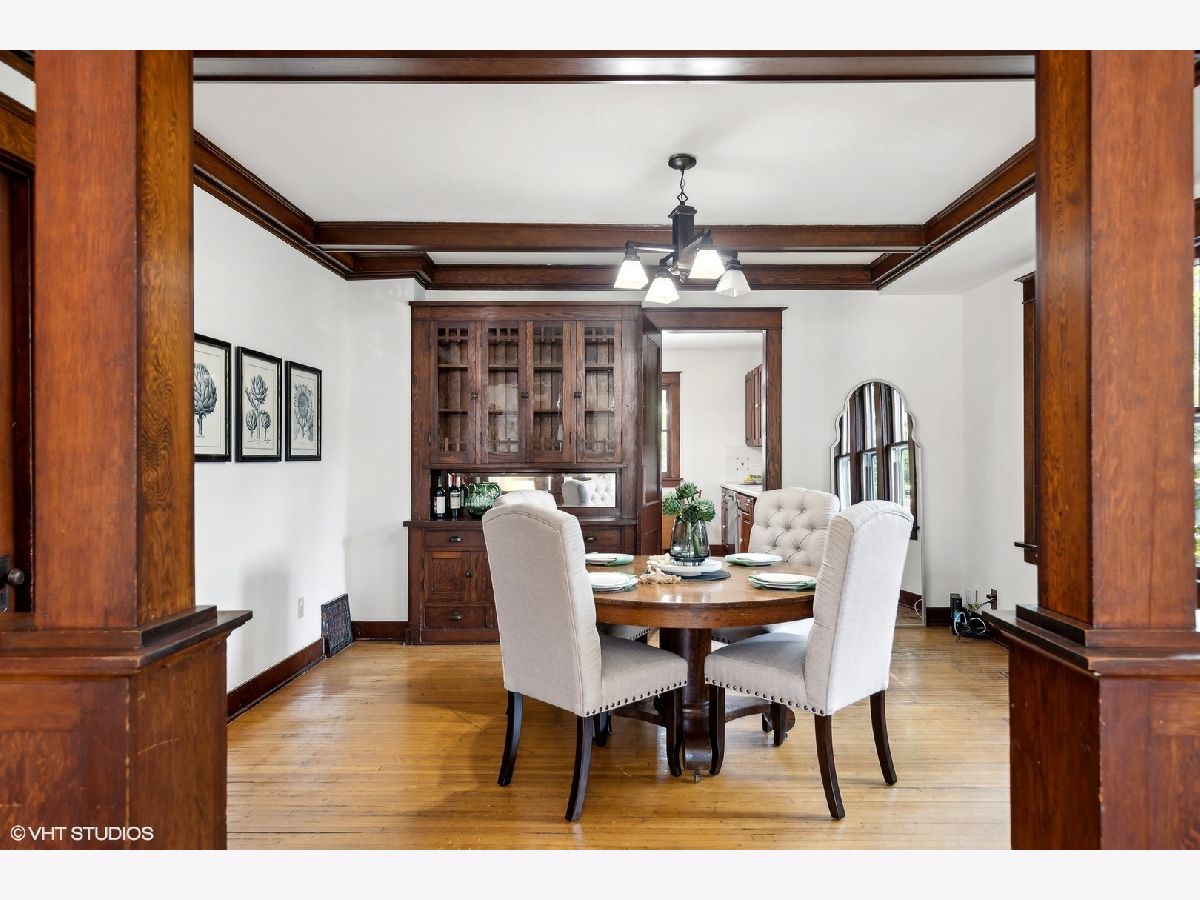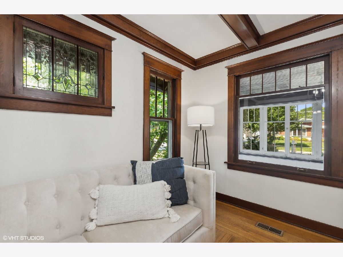 An Arlington Heights original modeled after a Sear's Arts and Crafts mail order kit for those interested in preserving history and enjoying living on the iconic Arlington Heights 4th of July parade route. Loads of original charm with built-in cabinets and dark wood wide ceiling trim built from dense grain wood sourced at Heller Lumber. Enter thru the spacious sleeping porch to the primary family room with tall windows, original leaded glass window and rich, wide wood trim. Continue to dining room with beautiful built-in china cabinet with drawers and leaded glass cabinets flanking the framed room divider. Extra large kitchen just waiting for your ideas! Can extend the kitchen to the back porch and pantry. Basement ceiling is full height, is partially finished and includes a 2nd full bath and laundry area. The 2nd level includes a cozy bedroom or office and a walk-in attic ready for a primary suite renovation with plumbing for an adjoining bath. Front and back yards have been intentionally stewarded using permaculture and sustainability practices for 20+ years and has mature cherry, ginkgo, pine, raspberries, blackberries, rhubarb, sunchoke, herbs and other perennial plants for food, medicinal and creative uses. A small pond has bloomed a new lotus flower just in time for you to see. The yard is certified Wildlife Habitat with the National Wildlife Federation. Excellent schools, community park districts, shopping, Al fresco dining in downtown Arlington Heights, walk to Metra and quick access to expressways. A short 20 minute drive to O'Hare Airport.