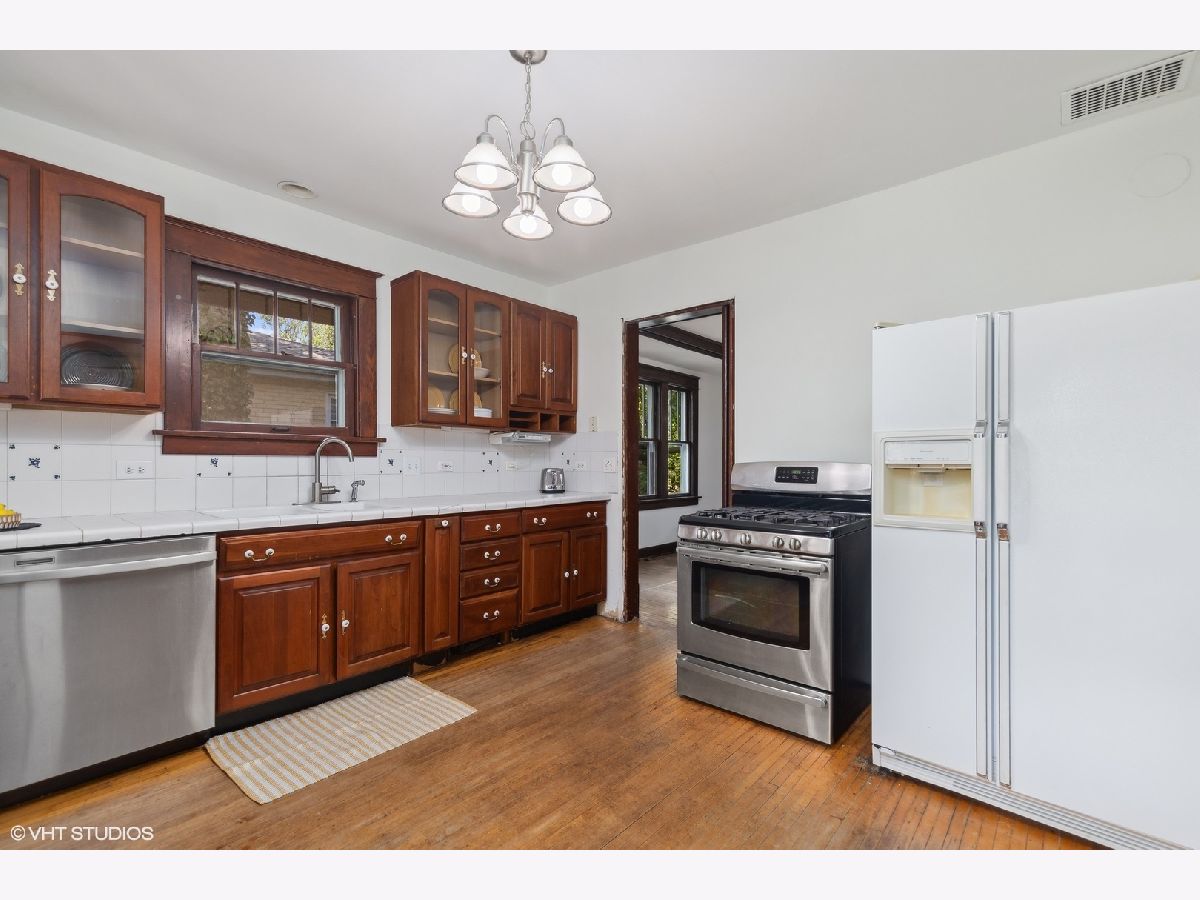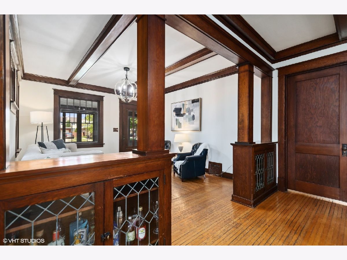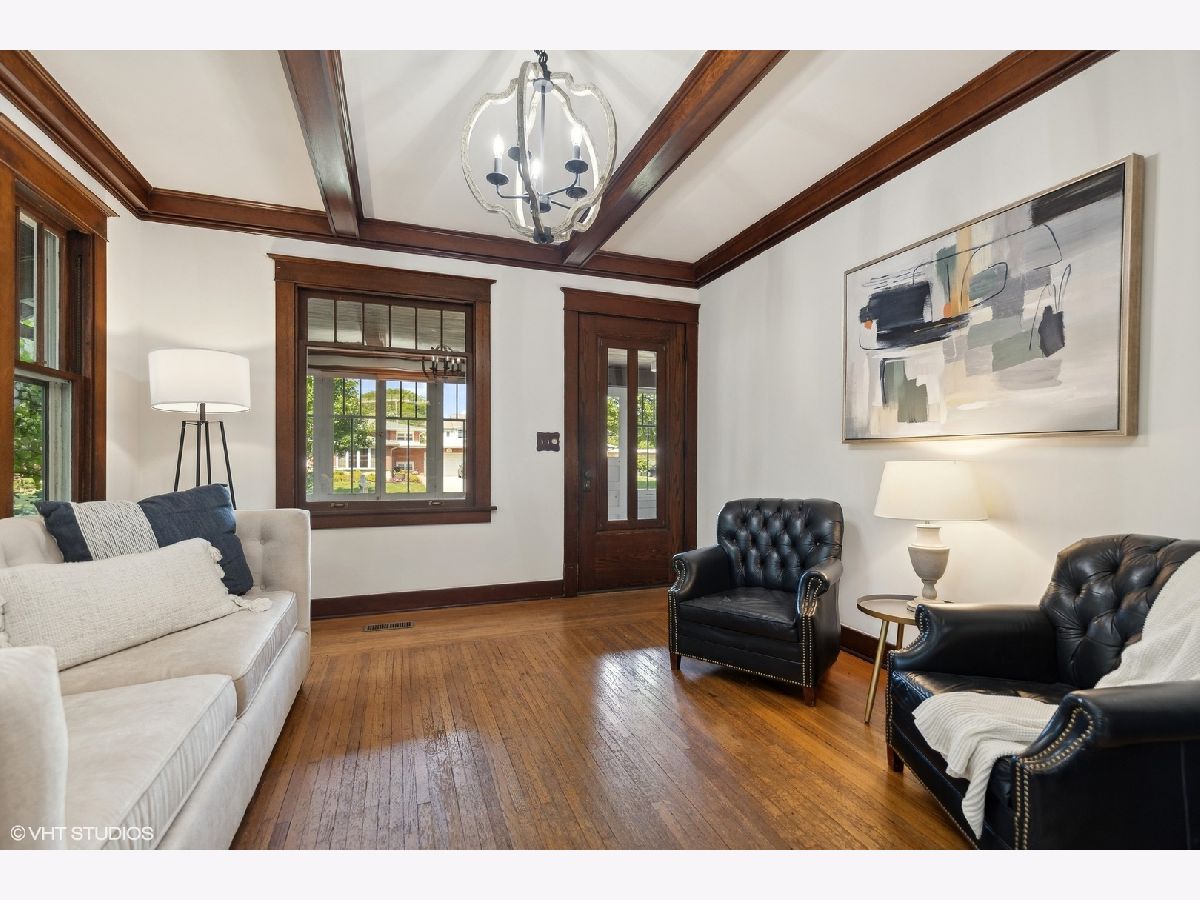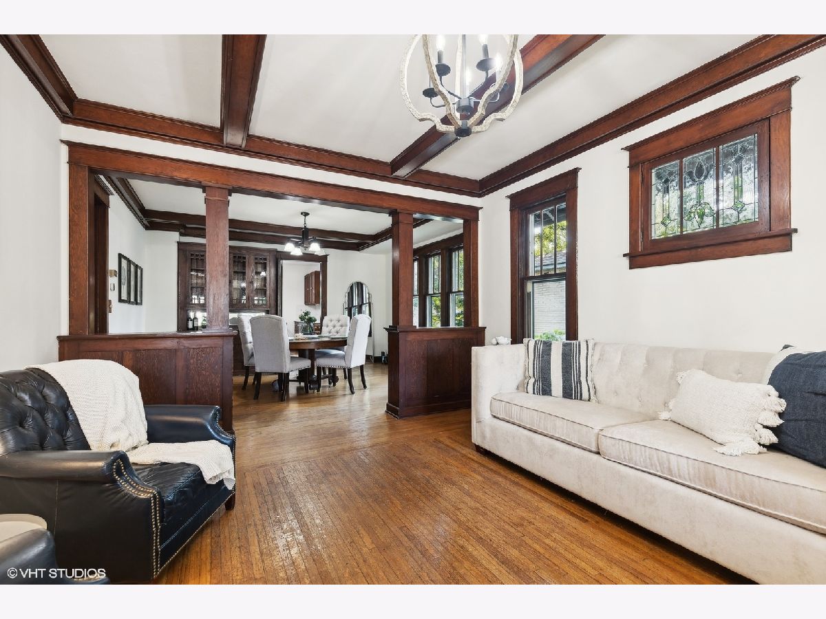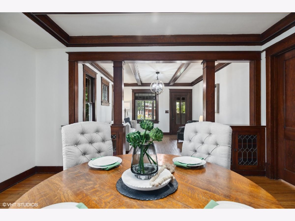 An Arlington Heights original modeled after a Sear's Arts and Crafts mail order kit for those interested in preserving history and enjoying living on the iconic Arlington Heights 4th of July parade route. Loads of original charm with built-in cabinets and dark wood wide ceiling trim built from dense grain wood sourced at Heller Lumber. Enter thru the spacious sleeping porch to the primary family room with tall windows, original leaded glass window and rich, wide wood trim. Continue to dining room with beautiful built-in china cabinet with drawers and leaded glass cabinets flanking the framed room divider. Extra large kitchen just waiting for your ideas! Can extend the kitchen to the back porch and pantry. Basement ceiling is full height, is partially finished and includes a 2nd full bath and laundry area. The 2nd level includes a cozy bedroom or office and a walk-in attic ready for a primary suite renovation with plumbing for an adjoining bath. Front and back yards have been intentionally stewarded using permaculture and sustainability practices for 20+ years and has mature cherry, ginkgo, pine, raspberries, blackberries, rhubarb, sunchoke, herbs and other perennial plants for food, medicinal and creative uses. A small pond has bloomed a new lotus flower just in time for you to see. The yard is certified Wildlife Habitat with the National Wildlife Federation. Excellent schools, community park districts, shopping, Al fresco dining in downtown Arlington Heights, walk to Metra and quick access to expressways. A short 20 minute drive to O'Hare Airport.