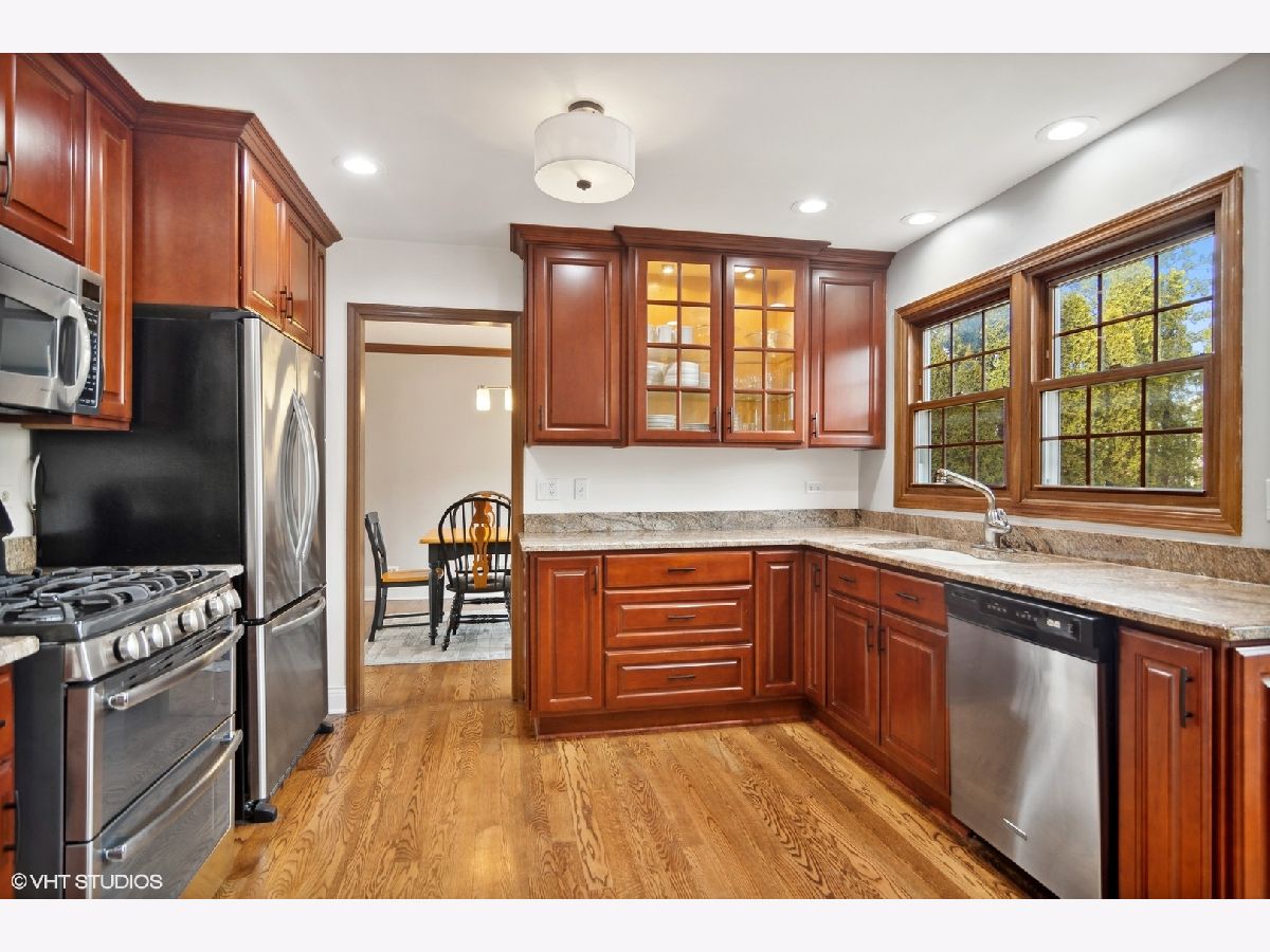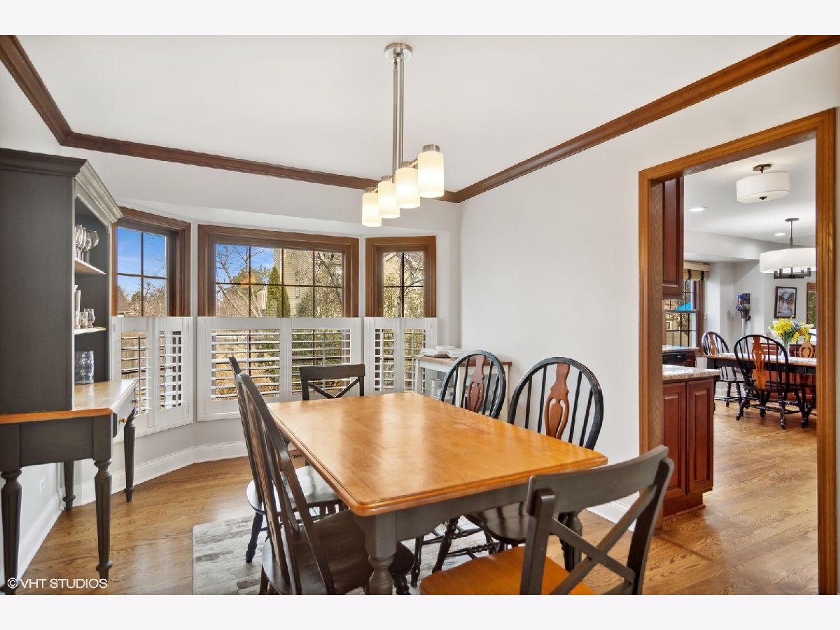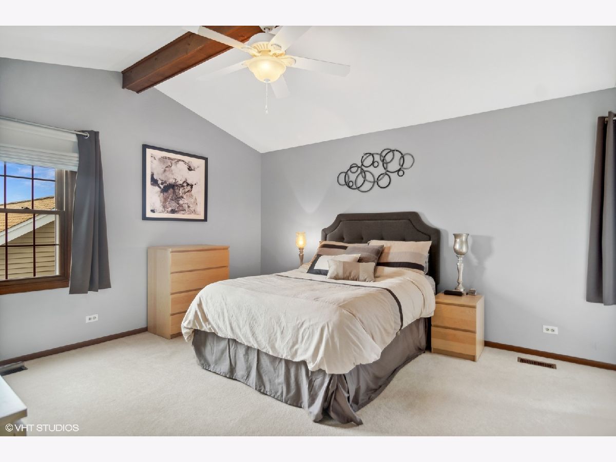 Located in a sidewalk community of Ridgefield, you will notice how beautiful this home is once you step inside. The living room has tons of windows, with plantation shutters, offering ample natural light. Opens to the dining room giving you plenty of space for a more formal setting. Step into this updated kitchen with cherry wood cabinets, granite counter tops, stainless steel appliances ('16) and the open concept living you are looking for. Kitchen provides plenty of room for the eat-in kitchen table as well. The spacious family room gives you a vaulted ceiling and custom built-ins flanking both sides of the brick fire place. Family room allows access to your fully fenced in yard ('21), large patio and mature landscaping making this perfect for entertaining. Main level has hardwood floors throughout, a half bath with heated floors and laundry. Enjoy your primary bedroom with a vaulted ceiling and gorgeous walk-in California organized closet, plus a private bath. Two additional bedrooms and full bath complete this 2nd level living. Don't forget the full finished basement giving you even more living space in this already nice sized home. Basement includes a full bath plus storage. Additional updates include: roof ('04), furnace ('12), A/C ('12). Close to parks, easy access to Palatine/Willow Rd and 294.