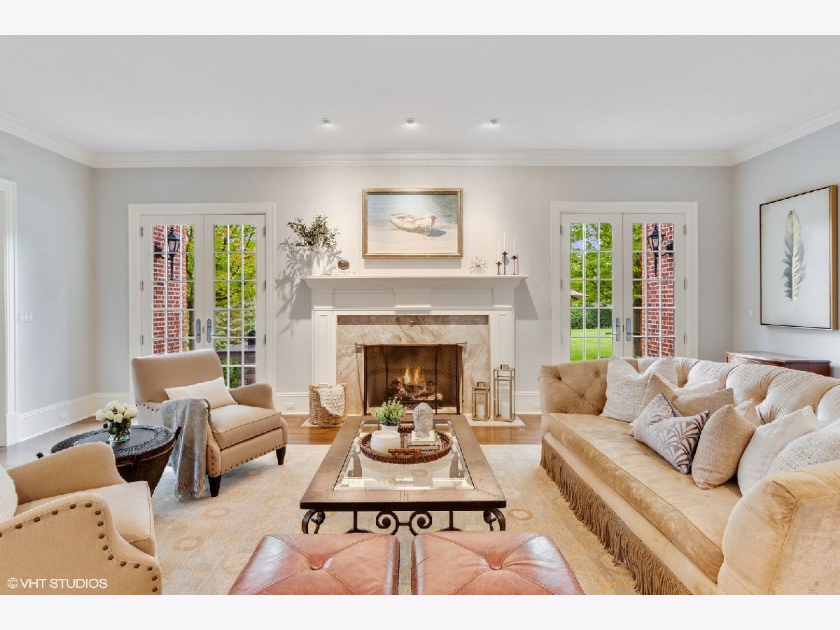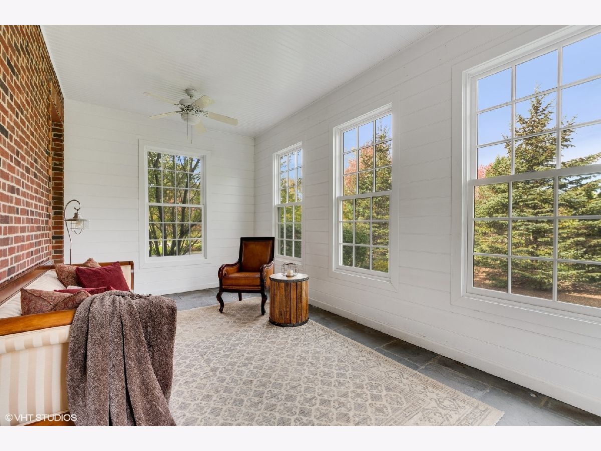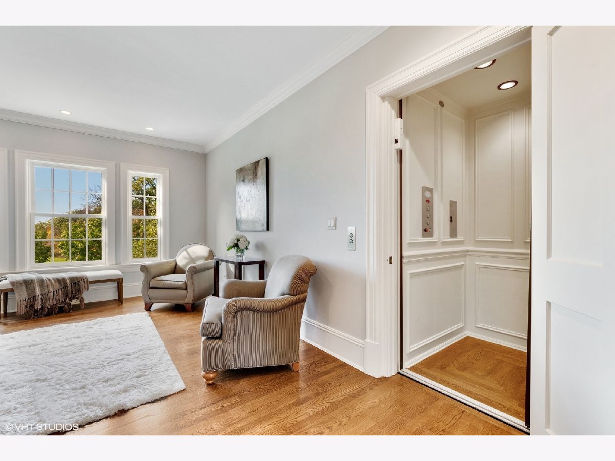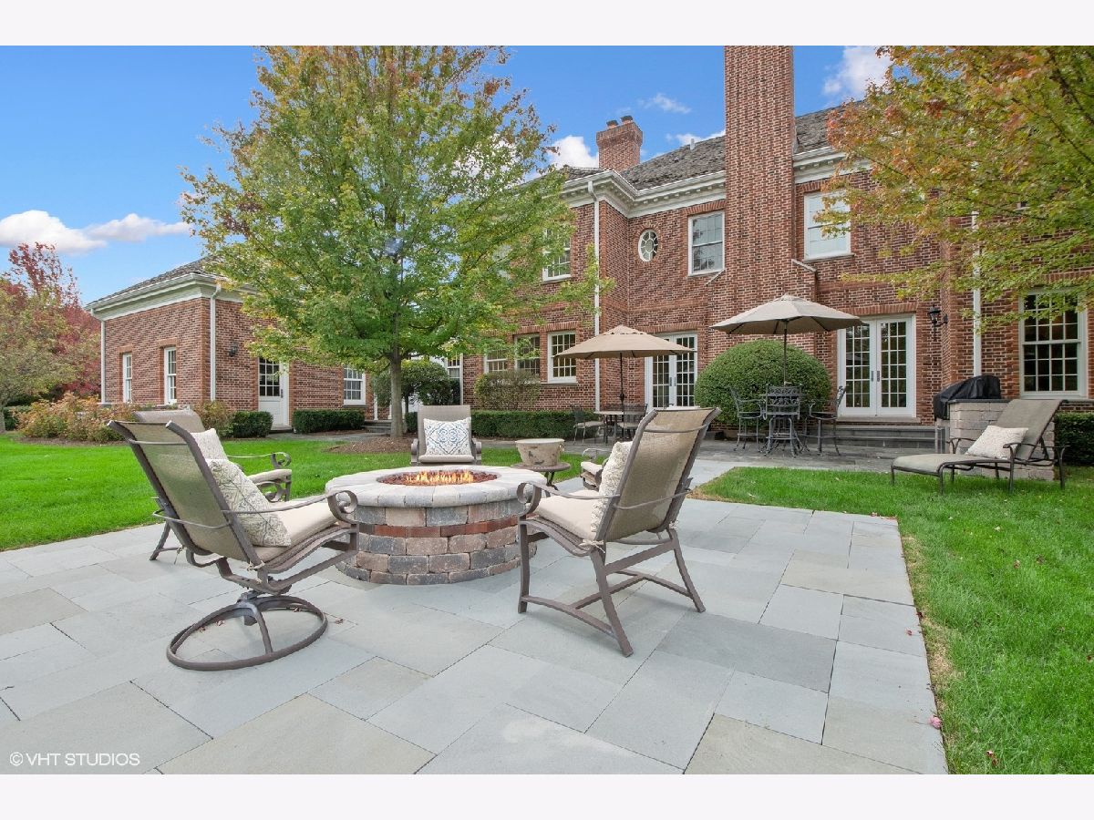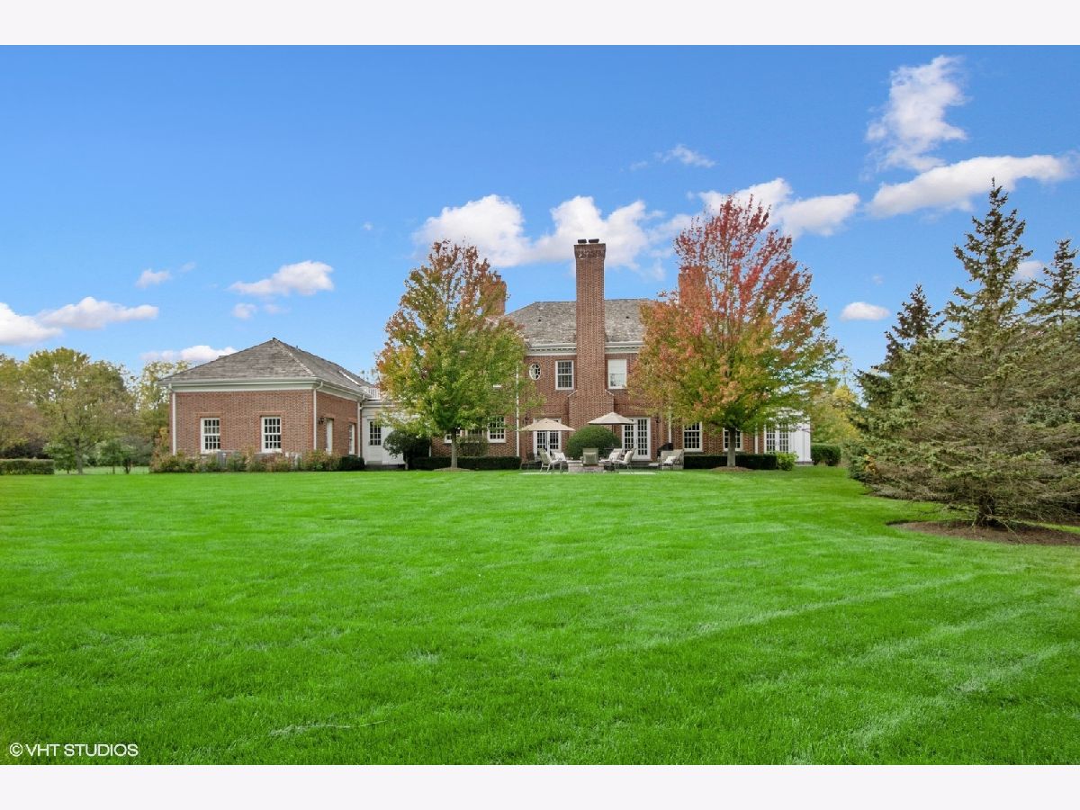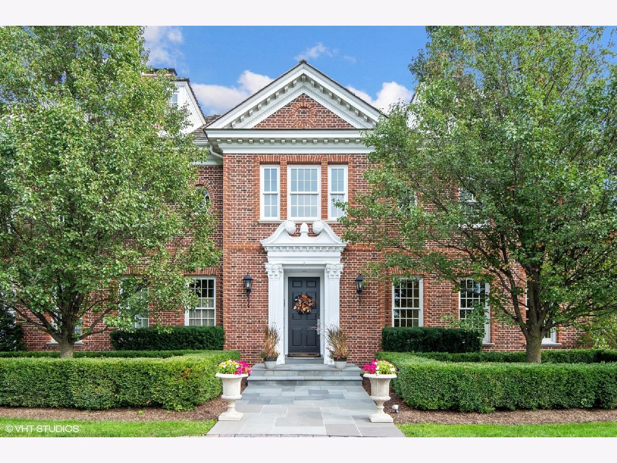 Designed by Melichar Architects and built in 2008, this spectacular brick Georgian home was awarded the 2012 Preservation Foundation award for new construction and boasts gorgeous southwest sunset views across the pristine Middlefork Oak savanna. Set on 1.48 acres with nearby access to Open Lands trails and Elawa Farm. Approximately 5,423 square feet above grade, plus an additional 3,347 square feet below grade. Enjoy a flexible floor plan with 5+1 ensuite bedrooms including a bonus room or optional 5th above-grade bedroom over the garage accessed by its own stairs. Highlights include 10-foot tall first floor ceilings, hardwood floors throughout most rooms, an elevator with access to all three levels, a wood-paneled office with gas fireplace, a large family room with gas fireplace adjacent to the eat-in kitchen with white cabinets, island with quartzite top, and high-end appliances. First and second-floor laundry rooms. The primary suite includes a sitting area, a custom walk-in closet, and access to a roof deck. The luxurious primary bath features marble flooring and shower surround, dual split vanities, large walk-in shower with multiple body sprays and rain shower, and a free-standing aquatic air massage tub. Complete basement with luxury finishes including 9 ft ceilings, custom moldings, natural stone fireplace, and 6-zone radiant heat. Multiple spaces for recreation rooms, game rooms, workout room, bedroom #6 with full bath, and tons of storage. Garaging for 3 cars is split as a 2-car garage and a separate 1-car garage. Both garages have radiant heat floors and have rooms underneath them at the basement level, also with radiant heat. Lovely NEW bluestone patio with built-in grill, and an expansive backyard.