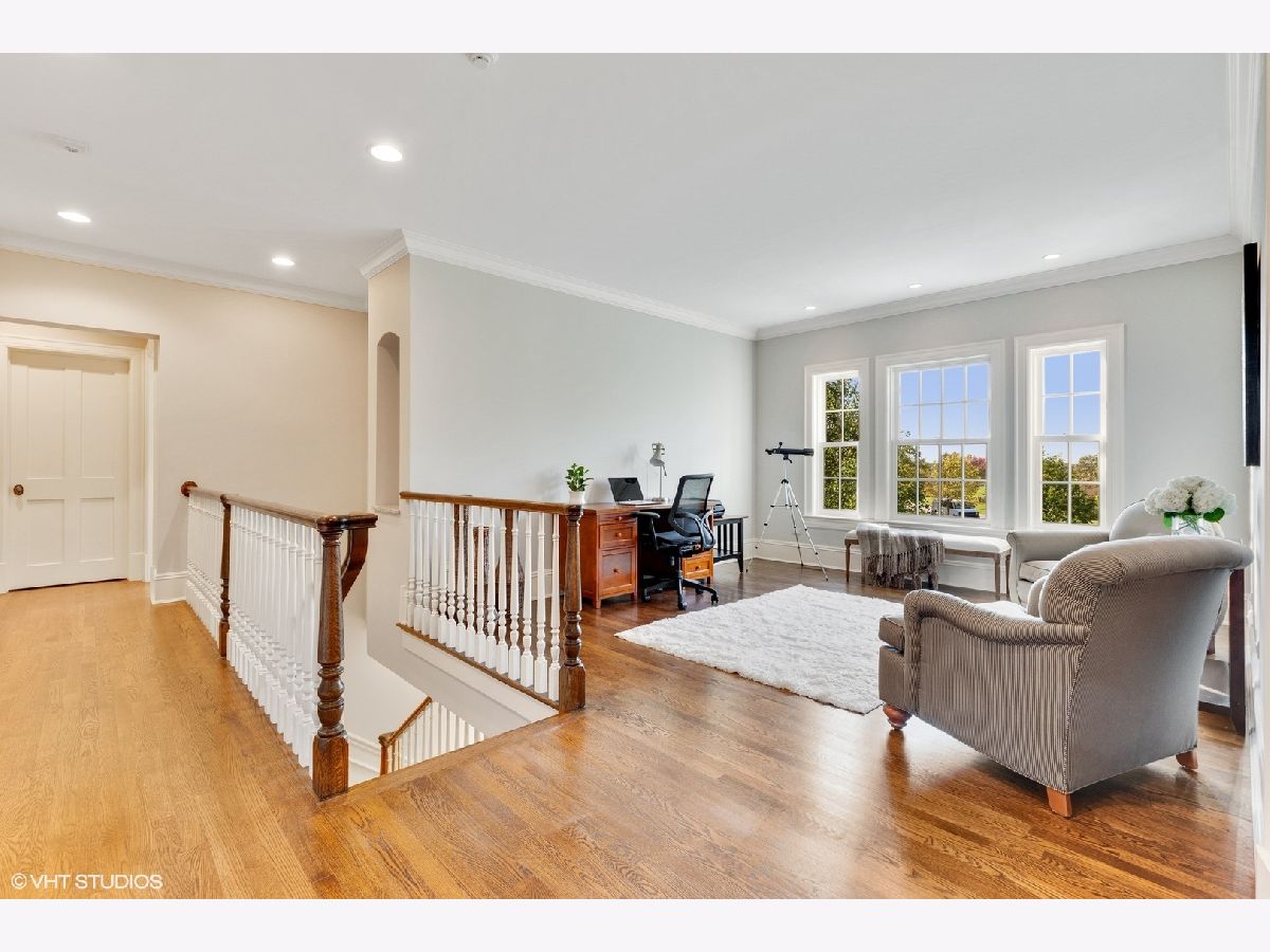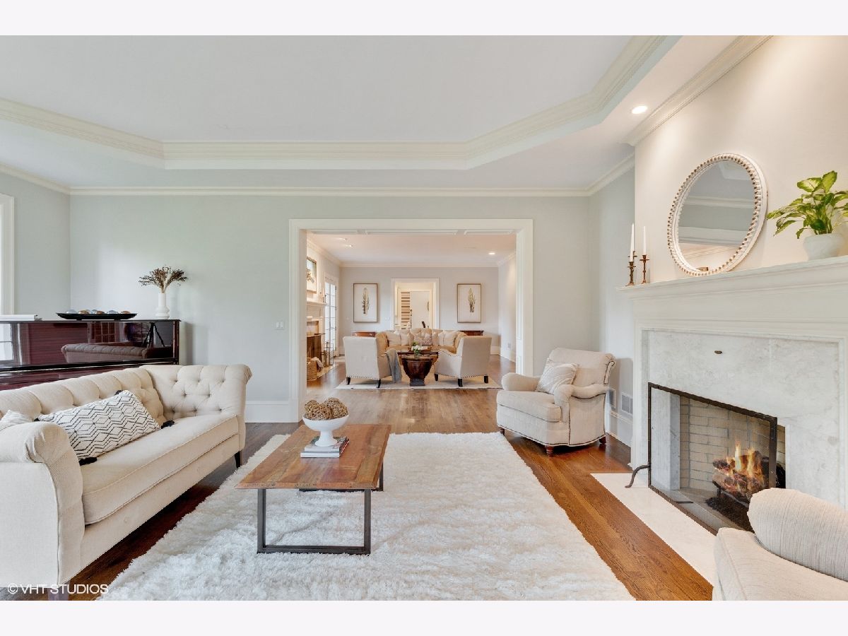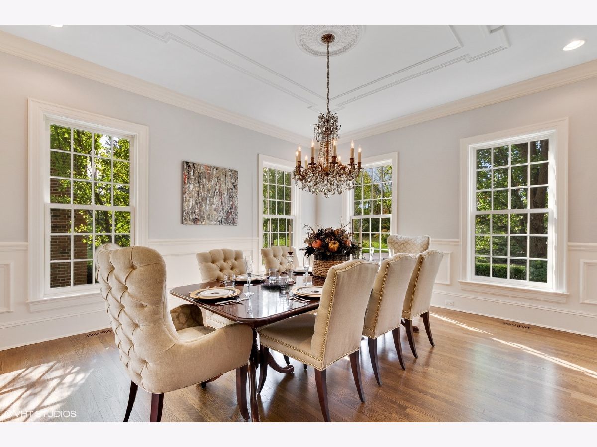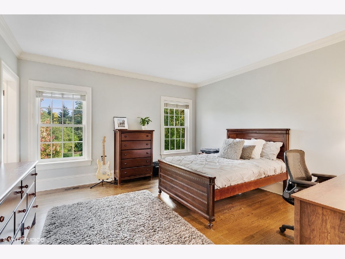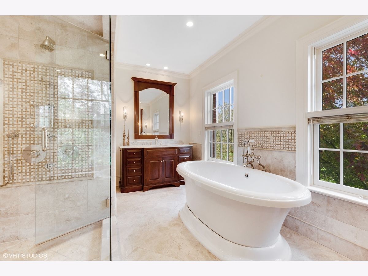 Designed by Melichar Architects and built in 2008, this spectacular brick Georgian home was awarded the 2012 Preservation Foundation award for new construction and boasts gorgeous southwest sunset views across the pristine Middlefork Oak savanna. Set on 1.48 acres with nearby access to Open Lands trails and Elawa Farm. Approximately 5,423 square feet above grade, plus an additional 3,347 square feet below grade. Enjoy a flexible floor plan with 5+1 ensuite bedrooms including a bonus room or optional 5th above-grade bedroom over the garage accessed by its own stairs. Highlights include 10-foot tall first floor ceilings, hardwood floors throughout most rooms, an elevator with access to all three levels, a wood-paneled office with gas fireplace, a large family room with gas fireplace adjacent to the eat-in kitchen with white cabinets, island with quartzite top, and high-end appliances. First and second-floor laundry rooms. The primary suite includes a sitting area, a custom walk-in closet, and access to a roof deck. The luxurious primary bath features marble flooring and shower surround, dual split vanities, large walk-in shower with multiple body sprays and rain shower, and a free-standing aquatic air massage tub. Complete basement with luxury finishes including 9 ft ceilings, custom moldings, natural stone fireplace, and 6-zone radiant heat. Multiple spaces for recreation rooms, game rooms, workout room, bedroom #6 with full bath, and tons of storage. Garaging for 3 cars is split as a 2-car garage and a separate 1-car garage. Both garages have radiant heat floors and have rooms underneath them at the basement level, also with radiant heat. Lovely NEW bluestone patio with built-in grill, and an expansive backyard.