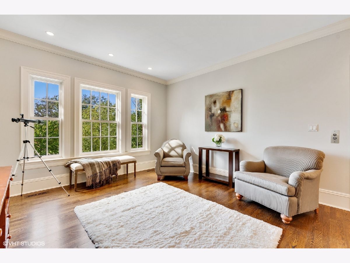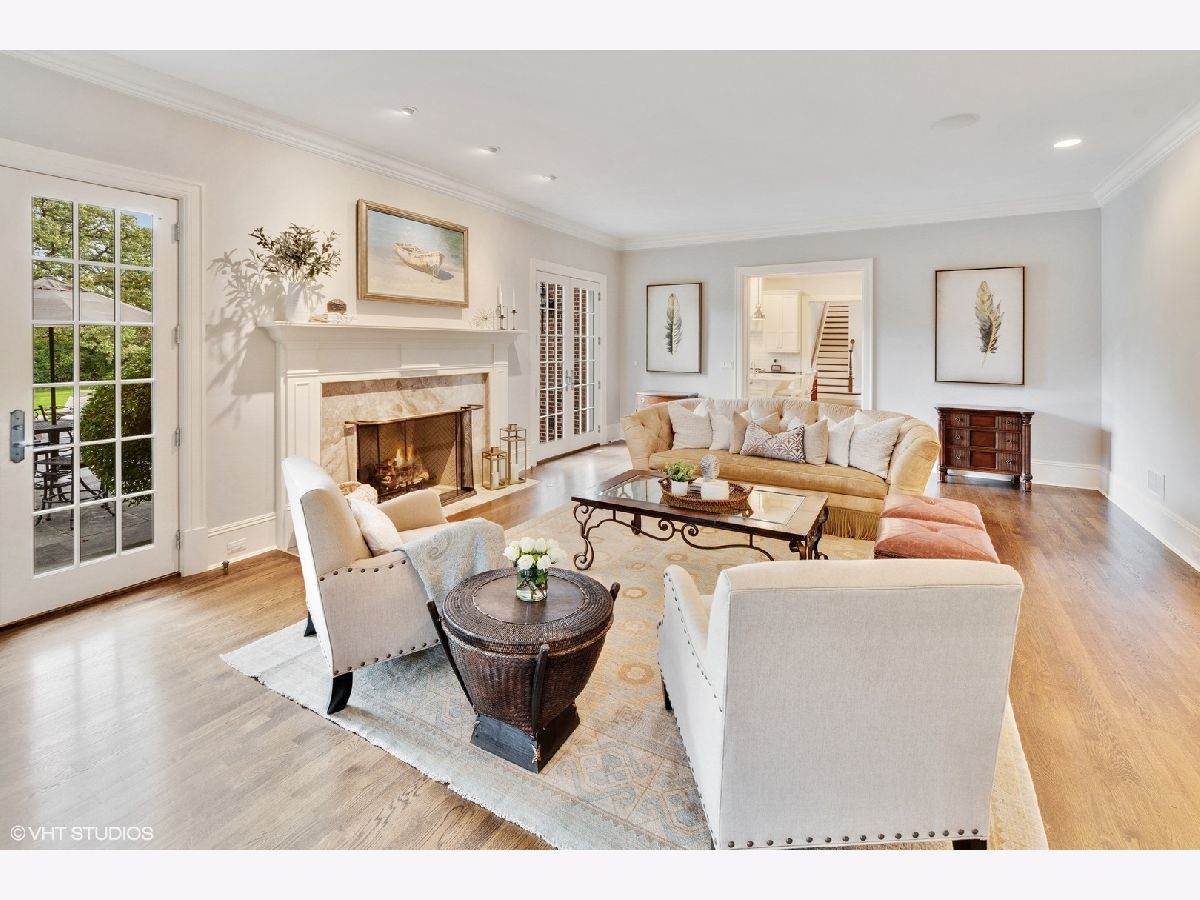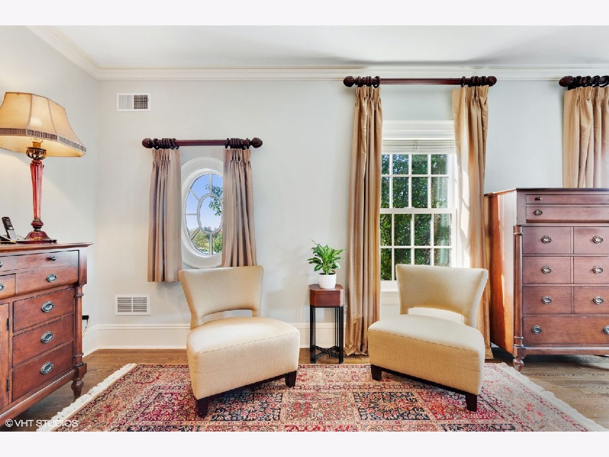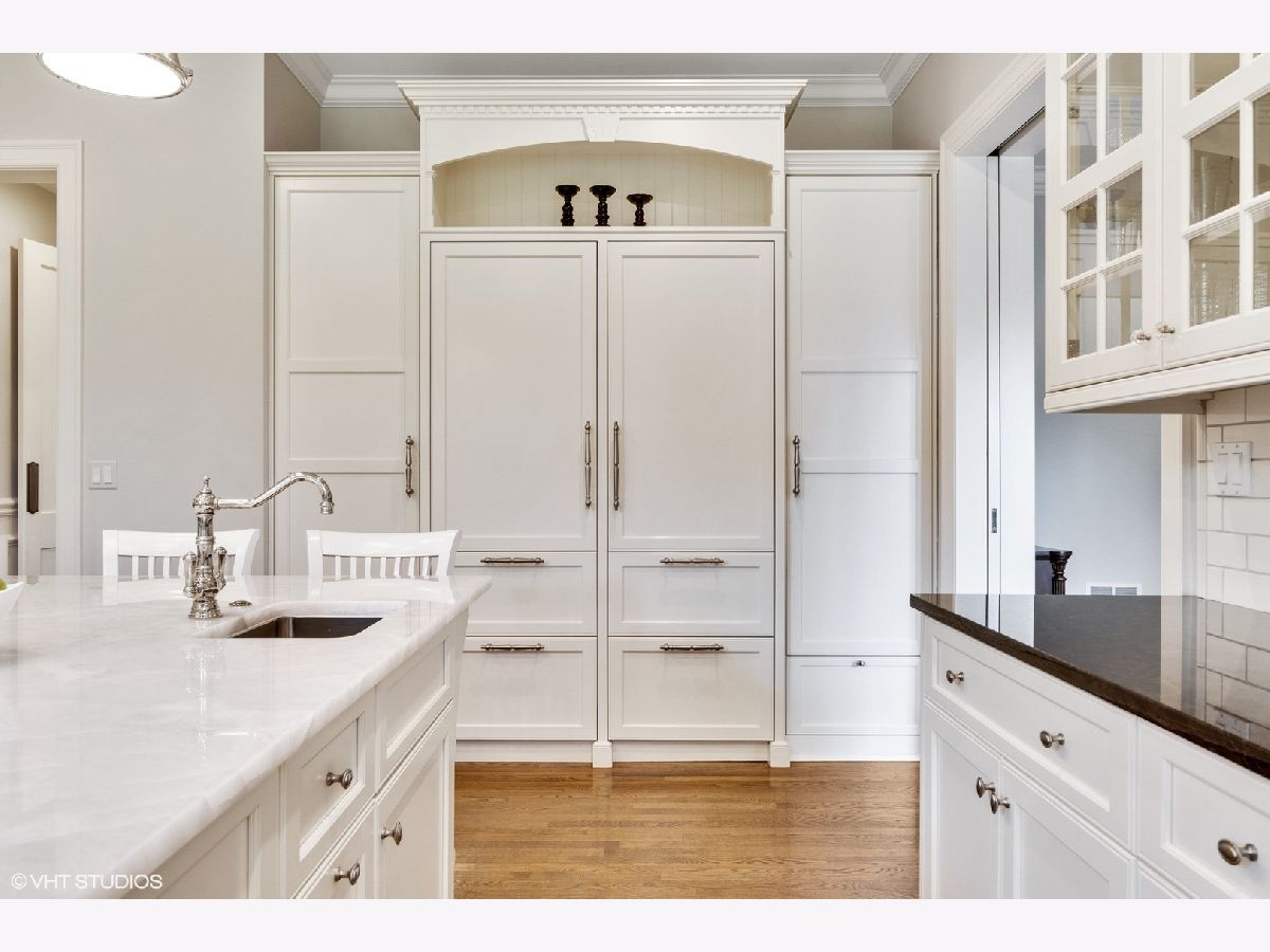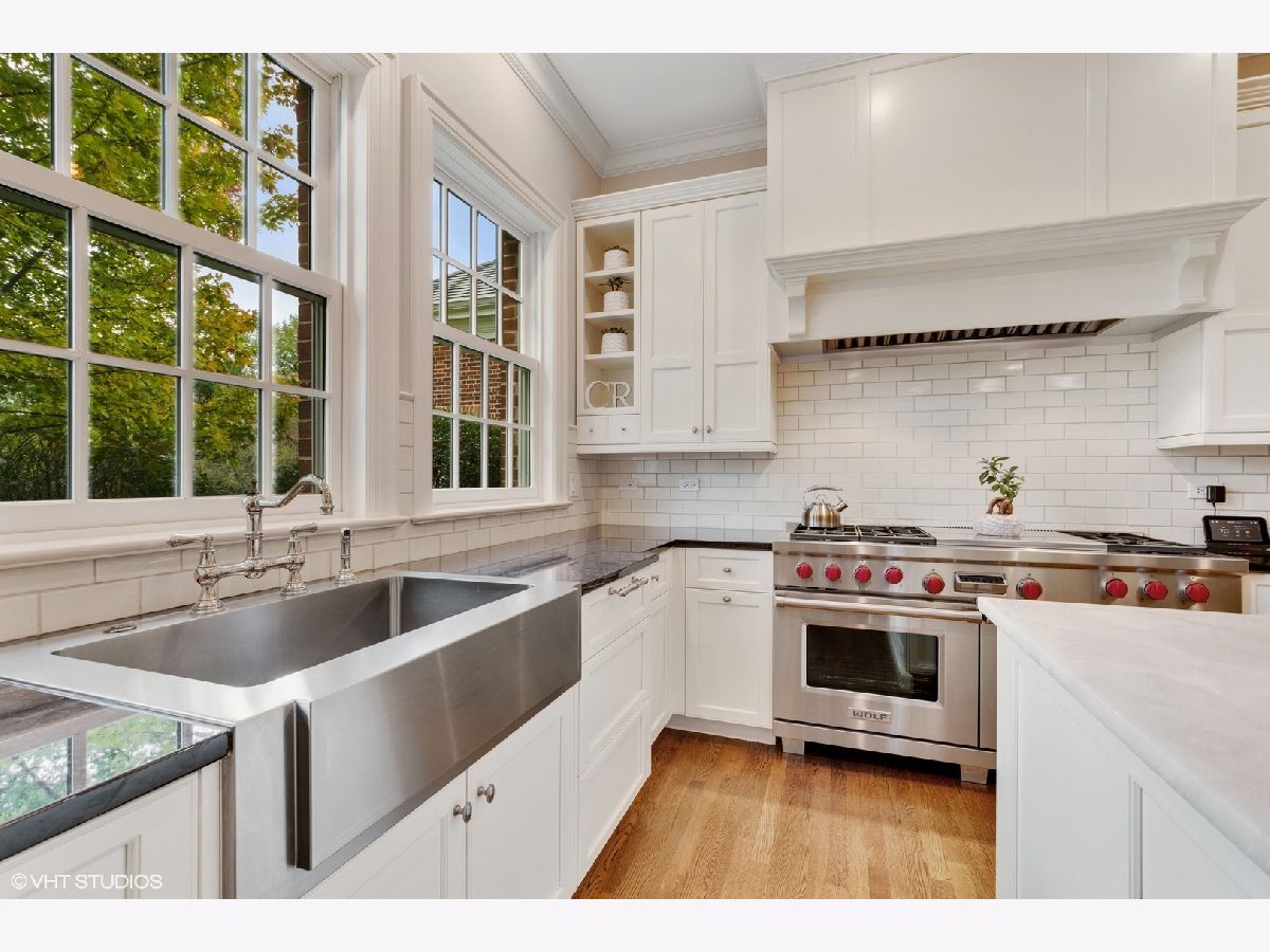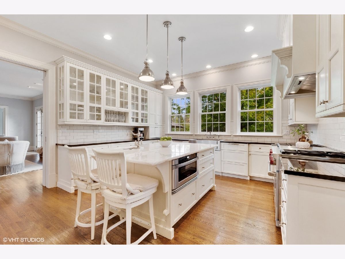 Designed by Melichar Architects and built in 2008, this spectacular brick Georgian home was awarded the 2012 Preservation Foundation award for new construction and boasts gorgeous southwest sunset views across the pristine Middlefork Oak savanna. Set on 1.48 acres with nearby access to Open Lands trails and Elawa Farm. Approximately 5,423 square feet above grade, plus an additional 3,347 square feet below grade. Enjoy a flexible floor plan with 5+1 ensuite bedrooms including a bonus room or optional 5th above-grade bedroom over the garage accessed by its own stairs. Highlights include 10-foot tall first floor ceilings, hardwood floors throughout most rooms, an elevator with access to all three levels, a wood-paneled office with gas fireplace, a large family room with gas fireplace adjacent to the eat-in kitchen with white cabinets, island with quartzite top, and high-end appliances. First and second-floor laundry rooms. The primary suite includes a sitting area, a custom walk-in closet, and access to a roof deck. The luxurious primary bath features marble flooring and shower surround, dual split vanities, large walk-in shower with multiple body sprays and rain shower, and a free-standing aquatic air massage tub. Complete basement with luxury finishes including 9 ft ceilings, custom moldings, natural stone fireplace, and 6-zone radiant heat. Multiple spaces for recreation rooms, game rooms, workout room, bedroom #6 with full bath, and tons of storage. Garaging for 3 cars is split as a 2-car garage and a separate 1-car garage. Both garages have radiant heat floors and have rooms underneath them at the basement level, also with radiant heat. Lovely NEW bluestone patio with built-in grill, and an expansive backyard.